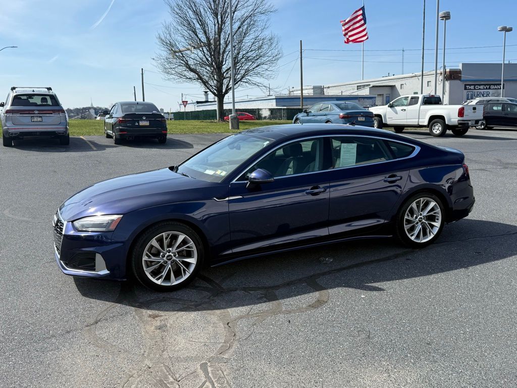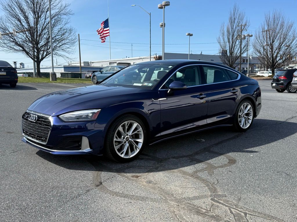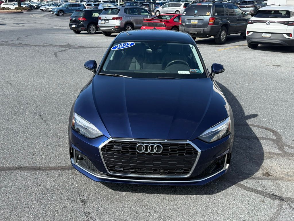 Elevate your driving experience with this stunning 2022 Audi A5 Sportback Premium quattro. Boasting a sleek and sophisticated design, this vehicle is the perfect blend of performance, technology, and luxury.- APPLE CARPLAY ANDROID AUTO!- HEATED SEATS!- KEYLESS ENTRY!- ONE OWNER WITH A CLEAN CARFAX REPORT!- PANORAMIC SUNROOF!- REAR VIEW CAMERA!- REMOTE START!Under the hood, you'll find a powerful 2.0L 4-Cylinder TFSI engine mated to a 7-Speed Automatic S tronic transmission and quattro all-wheel-drive system. This combination delivers an impressive 26 city/34 highway MPG, ensuring both exhilarating performance and exceptional efficiency.The interior of the A5 Sportback is a true sanctuary, with premium leather seating, genuine wood accents, and a host of advanced features. Enjoy the convenience of keyless entry, remote start, and a panoramic sunroof, while staying connected with Apple CarPlay, Android Auto, and the Audi Sound System.The A5 Sportback's sleek and dynamic exterior, combined with its impressive performance and cutting-edge technology, make it a true standout in its class.Experience the exceptional craftsmanship and refined driving dynamics of the 2022 Audi A5 Sportback Premium quattro. This one-owner vehicle with a clean CARFAX report is a must-see, so schedule a test drive today and discover the difference Audi quality can make.Shop with confidence at Sutliff Volkswagenproudly serving the Harrisburg area since 1931. As one of Pennsylvania's largest Volkswagen dealers, we offer a wide selection of high-quality pre-owned vehicles.Serving Harrisburg, Mechanicsburg, Carlisle, Camp Hill, York, Hershey, Lebanon, and Lancaster.Visit www.sutliffvolkswagen.com or call 1-800-210-8889 today.Please verify all vehicle information with the dealership, as third-party data may contain errors. Sutliff Volkswagen is not responsible for inaccuracies.