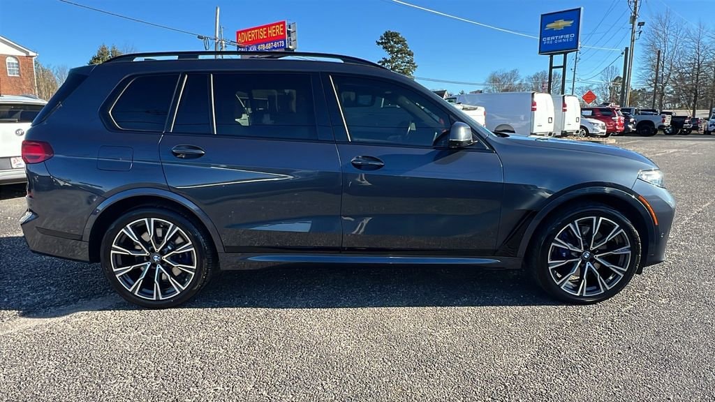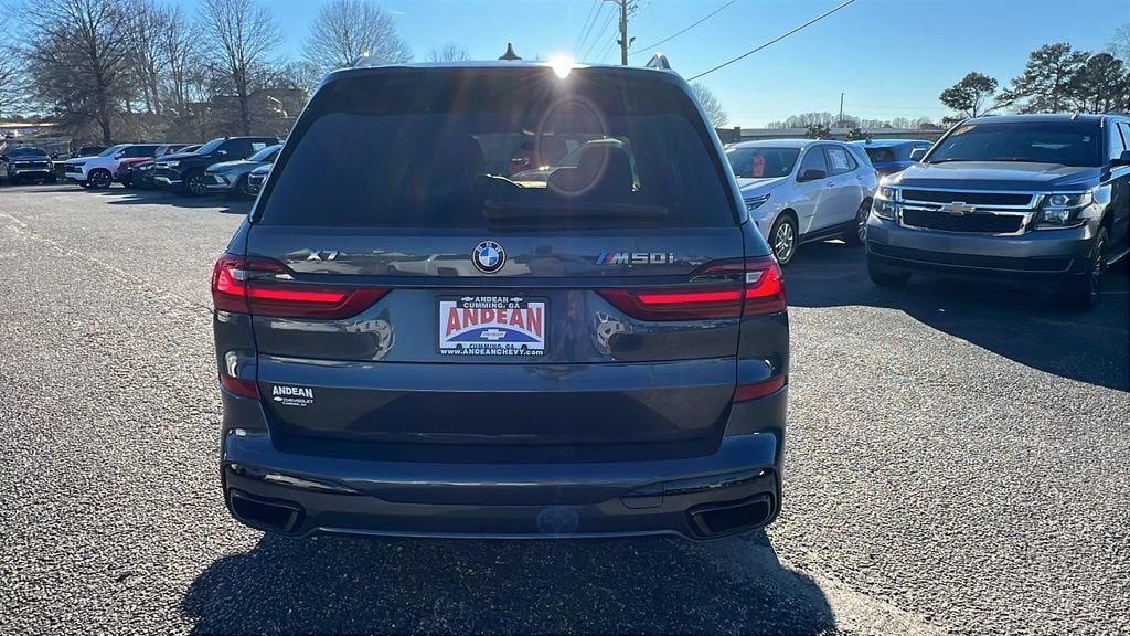 CARFAX One-Owner. Clean CARFAX. Tech meets style in our 2022 BMW X7 M50i! Includes Active Driving Assistant Pro, Apple CarPlay Android Auto Compatibility, Apple CarPlay Compatibility, Auto High-beam Headlights, Auto-dimming Rear-View mirror, BMW Assist eCall, BMW TeleServices, Connected Package Pro, ConnectedDrive Services, Delay-off headlights, Driver vanity mirror, Driving Assistance Professional Package, Executive Package, Extended Shadowline Trim, Extended Traffic Jam Assistant, Front Massaging Seats, Front Ventilated Seats, Garage door transmitter, Genuine wood console insert, Genuine wood dashboard insert, Genuine wood door panel insert, Glass Controls, Heated Cooled Cup Holders, Heated door mirrors, Luxury Seating Package, Navigation System, Panoramic Sky Lounge LED Roof, Power door mirrors, Radio data system, SiriusXM w/360L, Wireless Charging. Just serviced and inspected! Come see why Andean Chevrolet has been servicing the Cumming, Dawson, Roswell, Alpharetta, Roswell, Buford and Atlanta area for over 70 years!