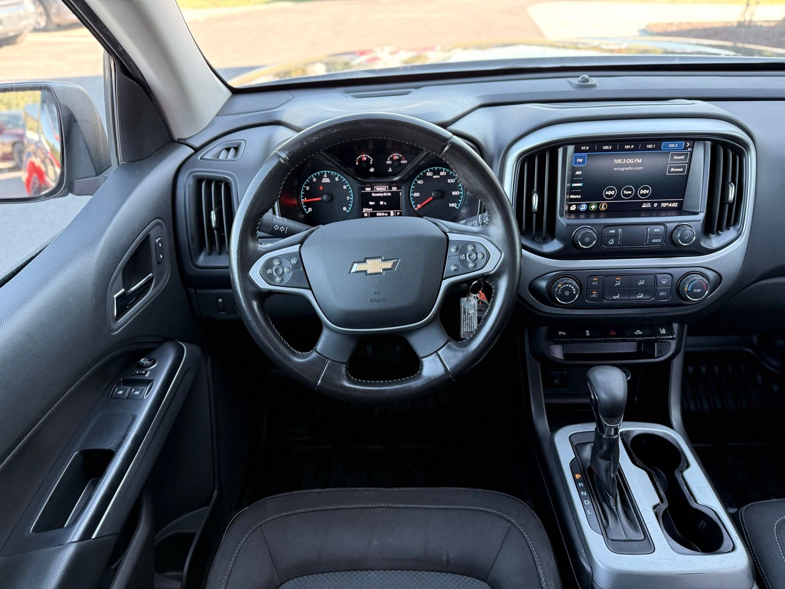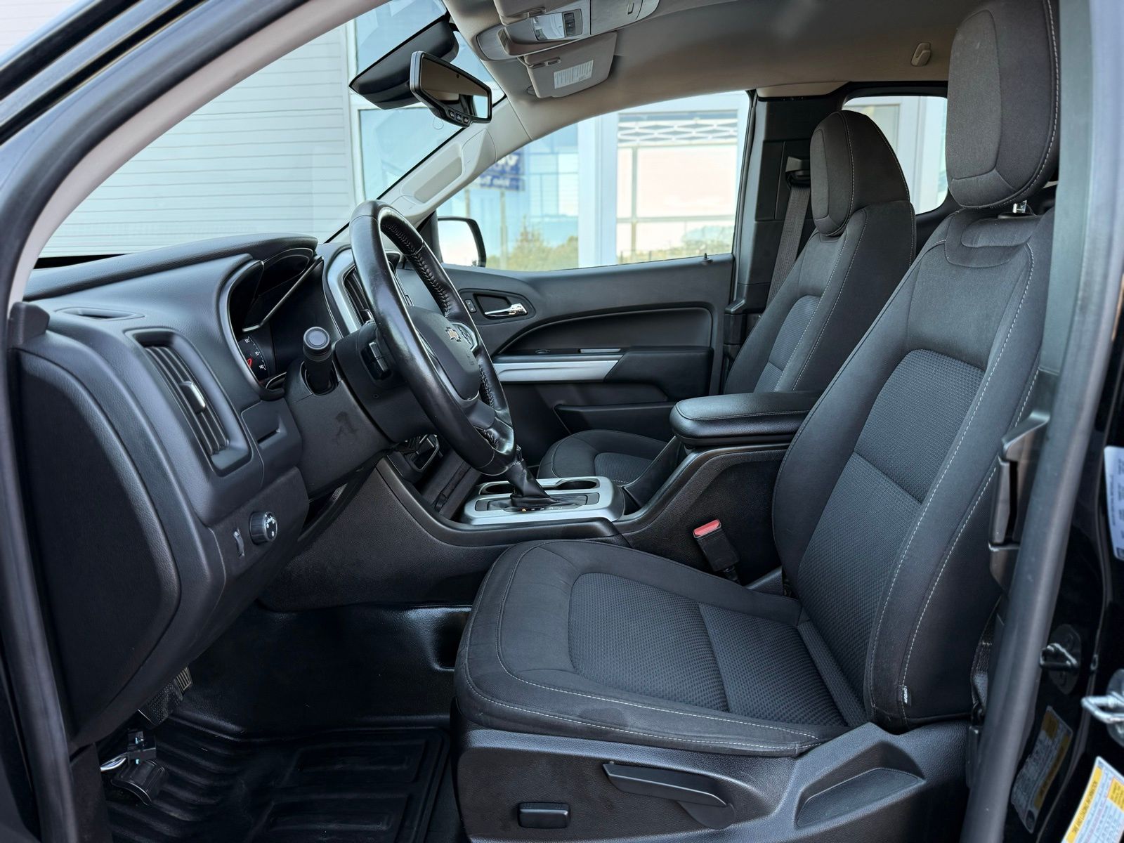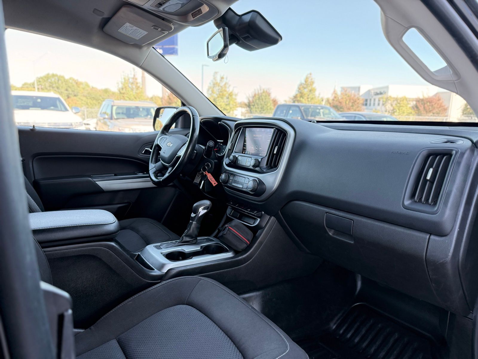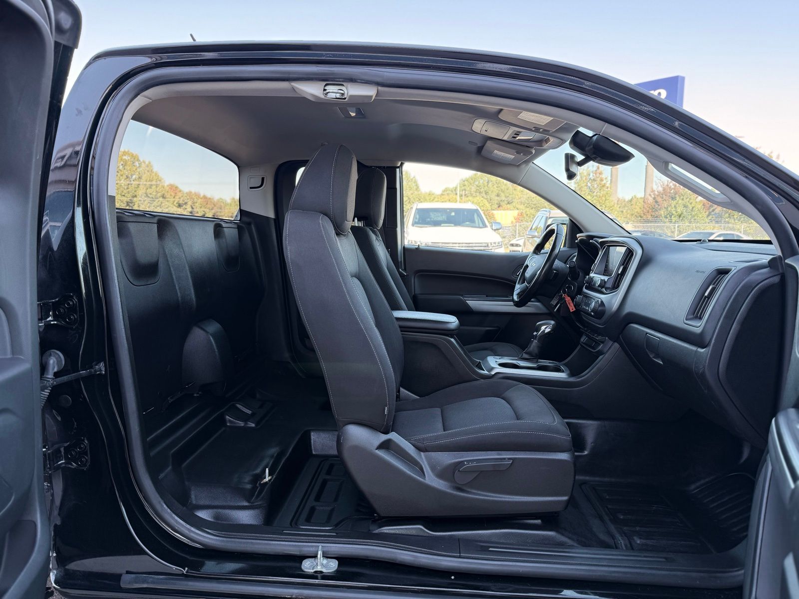 Black 2022 Chevrolet Colorado LT RWD 6-Speed Automatic 2.5L I4 DI DOHC VVT Preferred Equipment Group 2LT (Enhanced Driver Instrument Information Display and Rear Vision Camera), Safety Package (Forward Collision Alert, Lane Departure Warning System, and Ultrasonic Rear Park Assist), 4-Wheel Disc Brakes, 4.10 Rear Axle Ratio, 6 Speakers, 6-Speaker Audio System Feature, ABS brakes, Air Conditioning, Alloy wheels, AM/FM radio: SiriusXM, Apple CarPlay/Android Auto, Auto-dimming Rear-View mirror, Bumpers: body-color, Cloth Seat Trim, Compass, Delay-off headlights, Driver 6-Way Power Seat Adjuster, Driver door bin, Driver vanity mirror, Dual front impact airbags, Dual front side impact airbags, Electronic Stability Control, Exterior Parking Camera Rear, Front anti-roll bar, Front Bucket Seats, Front Center Armrest, Front reading lights, Front wheel independent suspension, Fully automatic headlights, Illuminated entry, Low tire pressure warning, Not Equipped w/Rear Park Assist, Occupant sensing airbag, Outside temperature display, Overhead airbag, Overhead console, Panic alarm, Passenger door bin, Passenger vanity mirror, Power door mirrors, Power driver seat, Power steering, Power windows, Premium audio system: Chevrolet Infotainment 3, Radio data system, Radio: Chevrolet Infotainment 3 System, Rear step bumper, Remote keyless entry, Security system, SiriusXM Radio, Speed control, Speed-sensing steering, Split folding rear seat, Steering wheel mounted audio controls, Tachometer, Telescoping steering wheel, Tilt steering wheel, Traction control, Trip computer, Variably intermittent wipers, and Wheels: 17' x 8' Blade Silver Metallic Cast Alloy.