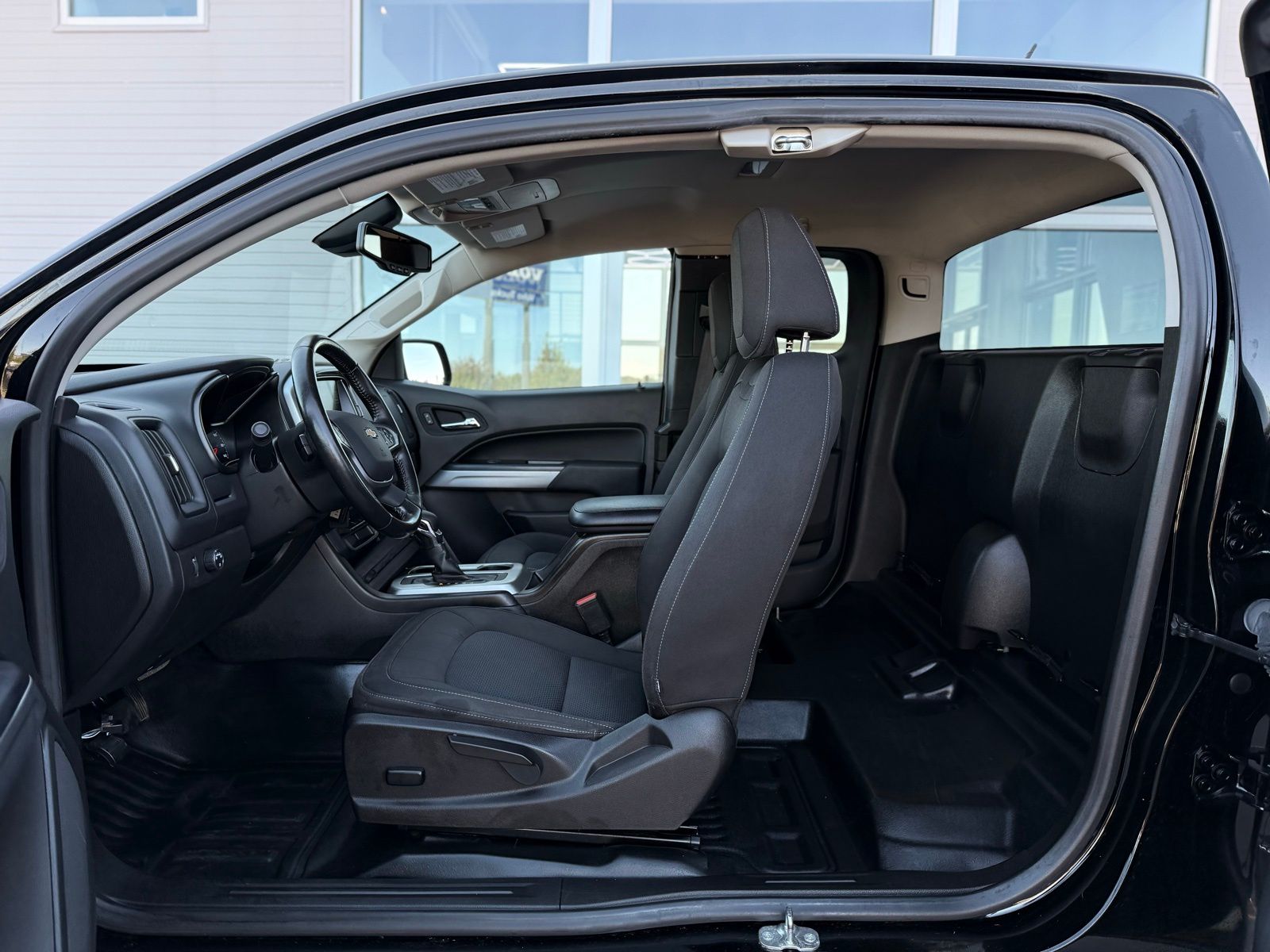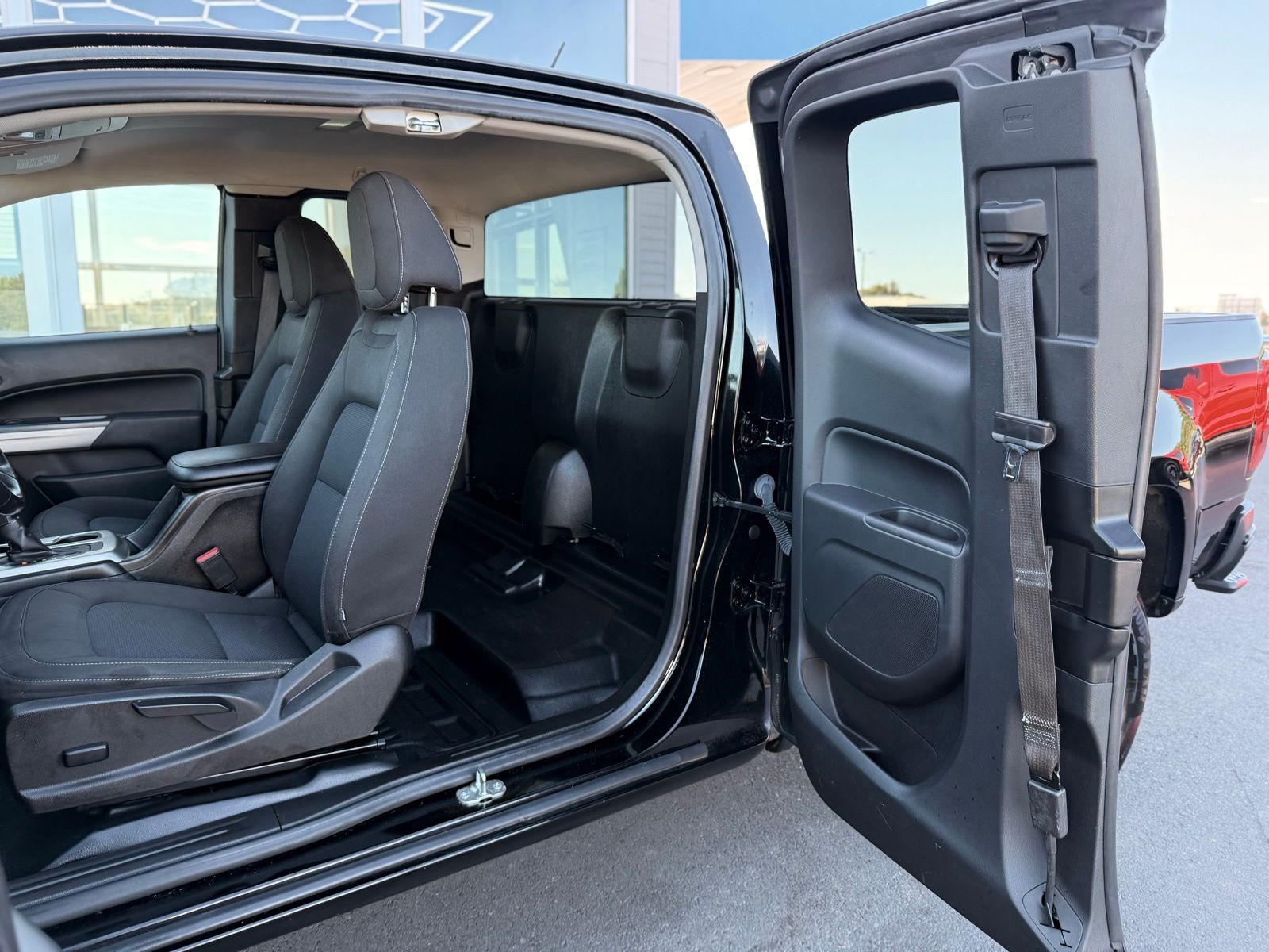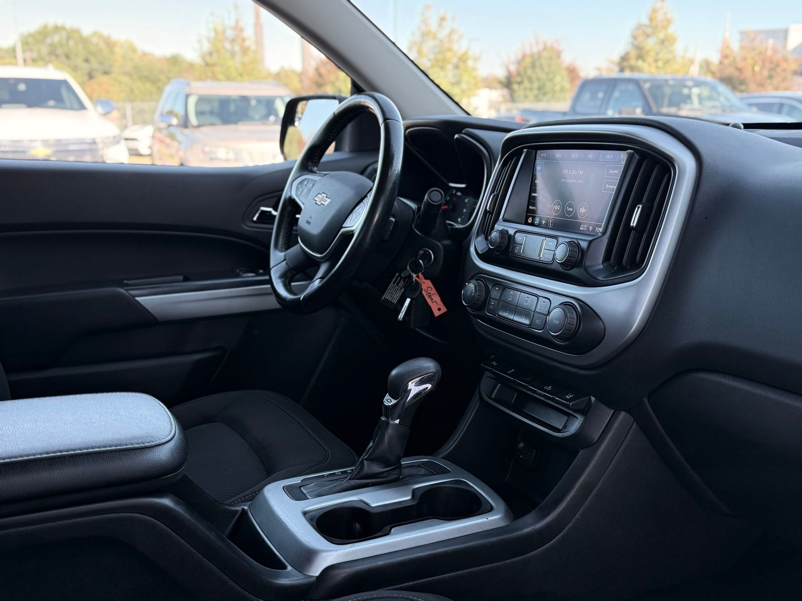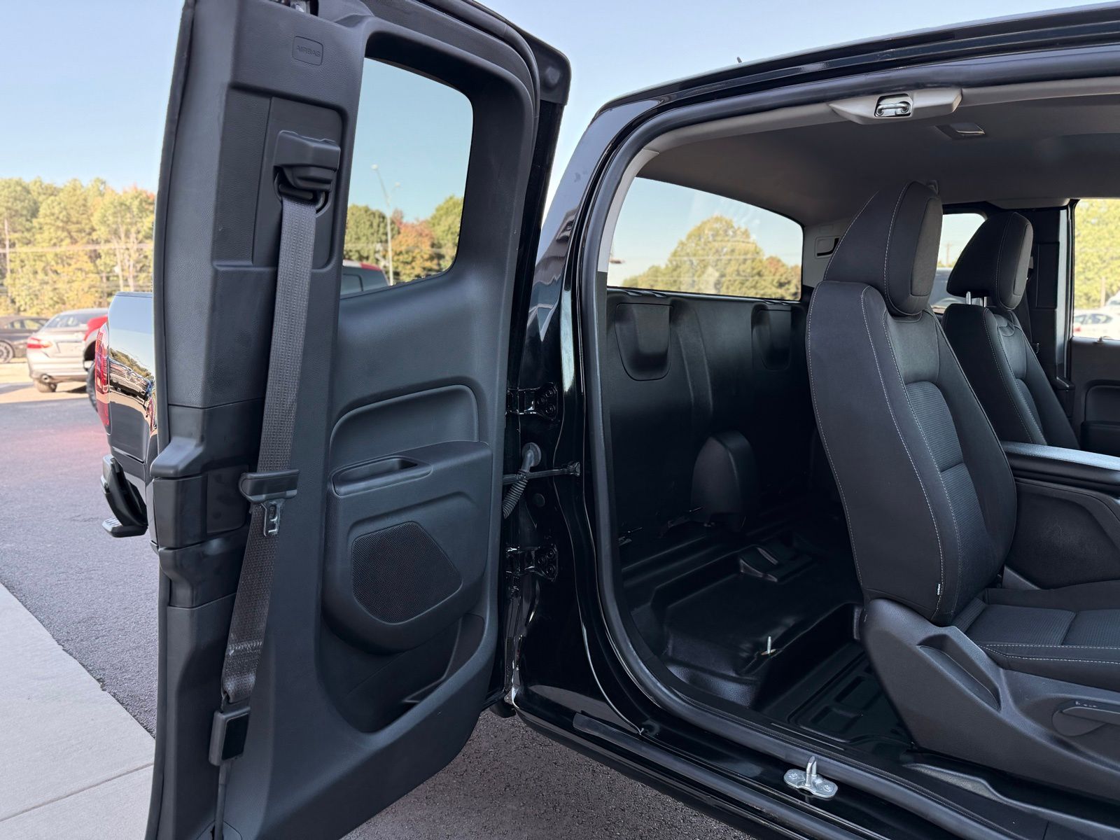 Black 2022 Chevrolet Colorado LT RWD 6-Speed Automatic 2.5L I4 DI DOHC VVT Preferred Equipment Group 2LT (Enhanced Driver Instrument Information Display and Rear Vision Camera), Safety Package (Forward Collision Alert, Lane Departure Warning System, and Ultrasonic Rear Park Assist), 4-Wheel Disc Brakes, 4.10 Rear Axle Ratio, 6 Speakers, 6-Speaker Audio System Feature, ABS brakes, Air Conditioning, Alloy wheels, AM/FM radio: SiriusXM, Apple CarPlay/Android Auto, Auto-dimming Rear-View mirror, Bumpers: body-color, Cloth Seat Trim, Compass, Delay-off headlights, Driver 6-Way Power Seat Adjuster, Driver door bin, Driver vanity mirror, Dual front impact airbags, Dual front side impact airbags, Electronic Stability Control, Exterior Parking Camera Rear, Front anti-roll bar, Front Bucket Seats, Front Center Armrest, Front reading lights, Front wheel independent suspension, Fully automatic headlights, Illuminated entry, Low tire pressure warning, Not Equipped w/Rear Park Assist, Occupant sensing airbag, Outside temperature display, Overhead airbag, Overhead console, Panic alarm, Passenger door bin, Passenger vanity mirror, Power door mirrors, Power driver seat, Power steering, Power windows, Premium audio system: Chevrolet Infotainment 3, Radio data system, Radio: Chevrolet Infotainment 3 System, Rear step bumper, Remote keyless entry, Security system, SiriusXM Radio, Speed control, Speed-sensing steering, Split folding rear seat, Steering wheel mounted audio controls, Tachometer, Telescoping steering wheel, Tilt steering wheel, Traction control, Trip computer, Variably intermittent wipers, and Wheels: 17' x 8' Blade Silver Metallic Cast Alloy.