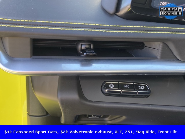 *NOT FOR MD RESIDENTS*.Car has Fabspeed Sport Cats ($4,000+) and Fabspeed Valvetronic exhaust ($5,000+).2022 Chevrolet Corvette Stingray 3LT Yellow Metallic, Z51, Mag Ride, Front Lift and more!Clean CARFAX. CARFAX One-Owner.The Used Vehicle Sale Price is plus sales tax, tag fees and a $800 processing charge. All prices, specifications, and availability are subject to change without notice. Pictures may be for illustrative purposes only; offers not valid on prior sales. Please contact Criswell Chevrolet in Gaithersburg, MD for details and the most current information.
