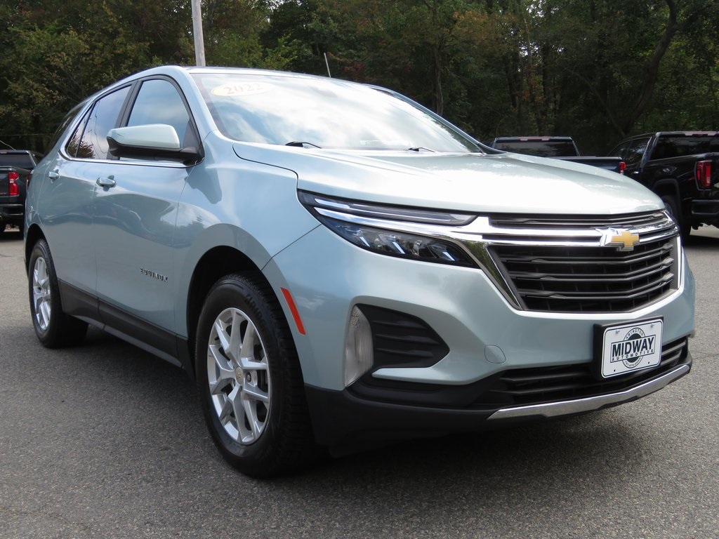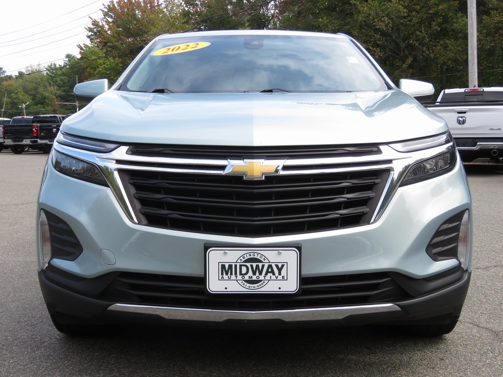 ACCIDENT FREE HISTORY REPORT, 1 OWNER CLEAN CARFAX, EXTENDED WARRANTY AVAILABLE, FINANCING AVAILABLE, 17 Aluminum Wheels, 2 Rear USB Charging-Only Ports, 2 USB Ports & Auxiliary Input Jack, 2-Way Power Driver Lumbar Control Seat Adjuster, 3.87 Final Drive Axle Ratio, 4-Wheel Disc Brakes, 6 Speaker Audio System Feature, 6 Speakers, 8-Way Power Driver Seat Adjuster, ABS brakes, Air Conditioning, Alloy wheels, AM/FM radio: SiriusXM, Auto High-beam Headlights, Bluetooth For Phone, Brake assist, Bumpers: body-color, Compass, Delay-off headlights, Driver door bin, Driver vanity mirror, Dual front impact airbags, Dual front side impact airbags, Electronic Stability Control, Emergency communication system: OnStar and Chevrolet connected services capable, Four wheel independent suspension, Front anti-roll bar, Front Bucket Seats, Front Center Armrest, Front Passenger 4-Way Manual Seat Adjuster, Front reading lights, Fully automatic headlights, Heated door mirrors, Illuminated entry, Low tire pressure warning, Occupant sensing airbag, Outside temperature display, Overhead airbag, Overhead console, Panic alarm, Passenger door bin, Passenger vanity mirror, Power door mirrors, Power driver seat, Power steering, Power windows, Preferred Equipment Group 1LT, Premium audio system: Chevrolet Infotainment 3, Premium Cloth Seat Trim, Radio data system, Radio: Chevrolet Infotainment 3 System w/AM/FM, Rear anti-roll bar, Rear reading lights, Rear seat center armrest, Rear window defroster, Rear window wiper, Remote keyless entry, Security system, SiriusXM Radio, Speed control, Speed-sensing steering, Split folding rear seat, Spoiler, Steering wheel mounted audio controls, Tachometer, Telescoping steering wheel, Tilt steering wheel, Traction control, Trip computer, Variably intermittent wipers, Wireless Apple CarPlay/Wireless Android Auto.Clean CARFAX. CARFAX One-Owner. Priced below KBB Fair Purchase Price!.......SEVERAL FINANCE OPTIONS AVAILABLE....Call to schedule a test drive today!! YOU can buy a vehicle at MIDWAY AUTOMOTIVE in Abington, MA with CONFIDENCE and PEACE OF MIND. All vehicles include ONE key. *** Go to www.midwayautomotive.com for our full inventory with free CARFAX REPORT on every car we have in stock. ..OUR PRICES ARE COMPETITIVE and WE WOULD LOVE TO TAKE YOUR TRADE...***....(navigation data discs and cards may not be included) All vehicles are sold with one key. Prices do not include $585.00 documentation fee, taxes, or title/registry fees. THANK YOU!!!2022 Chevrolet Equinox LT