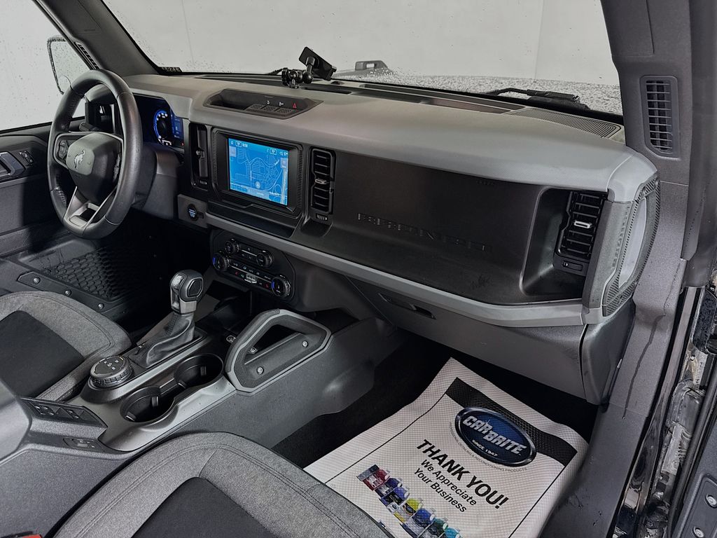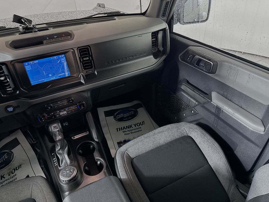 <b>Vehicle Details</b><br>2022 Ford Bronco Big Bend 4WD' 2.3L I4' 32'334 miles Louisville' KY This well-maintained 2022 Ford Bronco Big Bend blends rugged capability with modern comfort' making it an ideal choice for Kentucky roads and offroad adventures. Powered by a fuel-efficient 2.3L 4cylinder gasoline engine paired with dependable 4WD' this Ford Bronco delivers confident performance on wet highways' snow-covered routes and backcountry trails. With just 32'334 miles' the vehicle offers long-lasting reliability and great value. Interior and tech features focus on convenience and connectivity: Hands-Free Bluetooth and Apple CarPlay keep smartphones integrated for navigation and media' Remote Start ensures cabin comfort before every drive' and Heated Seats add warmth during chilly Louisville winters. Safety enhancements include CrossTraffic Alert to support safer lane changes and parking maneuvers. The Big Bend trim balances practical upgrades with durable materials and user-friendly controls' providing an accessible offroad experience without sacrificing daily drivability. Exterior styling includes the iconic Ford Bronco silhouette and functional elements geared toward outdoor lifestyles. Located in Louisville' KY' this Ford Bronco Big Bend is competitively priced and presented as the best price in the marketan excellent opportunity for buyers seeking a capable' feature-rich SUV at a great value. Schedule a test drive or contact us for more details and financing options.<br><br><b>Equipment</b><br>Our dealership has already run the CARFAX report and it is clean. A clean CARFAX is a great asset for resale value in the future. This vehicle's Cross-Traffic Alert: Safeguarding you from unexpected traffic when reversing. Protect the Ford Bronco from unwanted accidents with a cutting edge backup camera system. The Ford Bronco offers Android Auto for seamless smartphone integration. The vehicle offers Apple CarPlay for seamless connectivity. Heated seats for those cold winter days are included in this Ford Bronco. This vehicle offers Automatic Climate Control for personalized comfort. The rear parking assist technology on it will put you at ease when reversing. The system alerts you as you get closer to an obstruction. An off-road package is installed on the vehicle so you are ready for your four-wheeling best. The vehicle features a hands-free Bluetooth phone system. The installed navigation system will keep you on the right path.<br><br><b>Packages</b><br>Equipment Group 222A Mid Package: 17 Carbonized Gray-Painted Aluminum Wheel; Rear Parking Sensors; Power Outlet - Back Side of Center Floor Console; .2.3L ECOBOOST I-4 ENGINE; Front Row Heated Seats; Auto-Dimming Interior Rearview Mirror; Driver and Front Passenger Illuminated Sliding Visor Vanity Mirrors; 5. 920 lbs GVWR; AM/FM Stereo; Dual-Zone Electronic Automatic Temperature Control; Enhanced Voice Recognition; Connected Navigation; P255/75R17 A/T Tires; Ambient Footwell Lighting; Remote Start System; Cloth Bucket Seats; 2-Door Intelligent Access with Lock/unlock. Ford Co-Pilot360: Auto High-Beam Headlamps; Rear View Camera; Pre-Collision Assist with Automatic Emergency Braking; Blind Spot Information System (BLIS); Lane-Keeping System. LED Signature Lighting. Powder Coated Tube Step. Upgraded Carpet Floor Mats. **Equipment listed is based on original vehicle build and subject to change. Please confirm the accuracy of the included equipment by calling the dealer prior to purchase.**<br><br><b>Additional Information</b><br>Price includes $1'000 Trade-In Assistance Bonus Cash. Customer must trade in an operable vehicle of a model year within 10 years of the current date' with less than 150'000 miles' and with a clear title. Customer must appear in person at the dealership to qualify. Dealers and wholesalers do not qualify. Limited time offer' subject to change without notice. Price also includes $1'000 In-House Financing Bonus Cash. Must finance with approved Oxmoor Ford lender at standard rates. Cash/Outside Finance lenders DO NOT qualify. Available only to individual consumers that finance at least 51% of the vehicle. Customer must appear in person at the dealership to qualify. Limited time offer' subject to change without notice. See dealer for details.