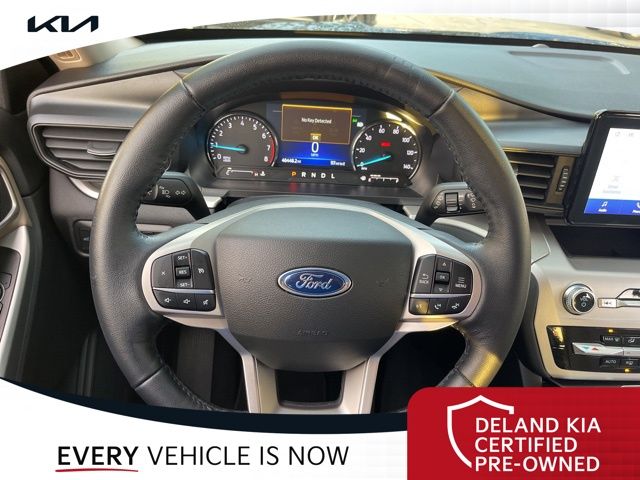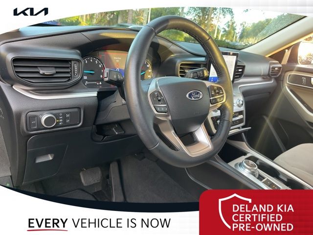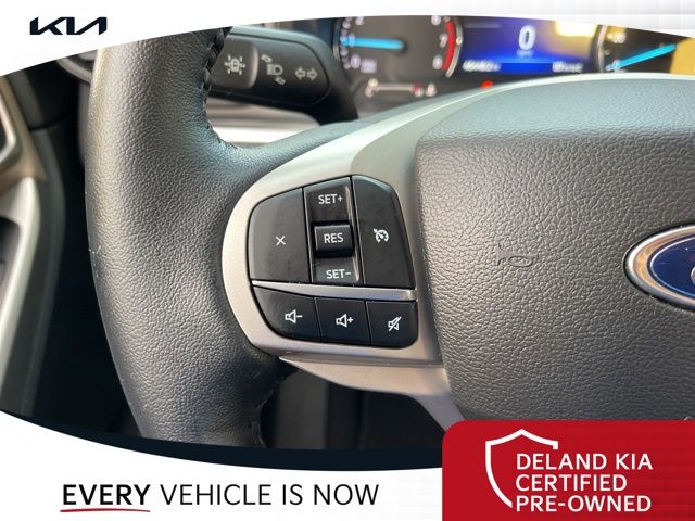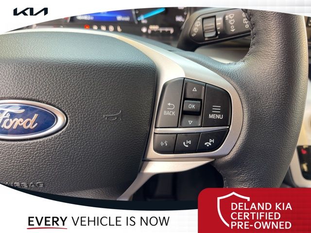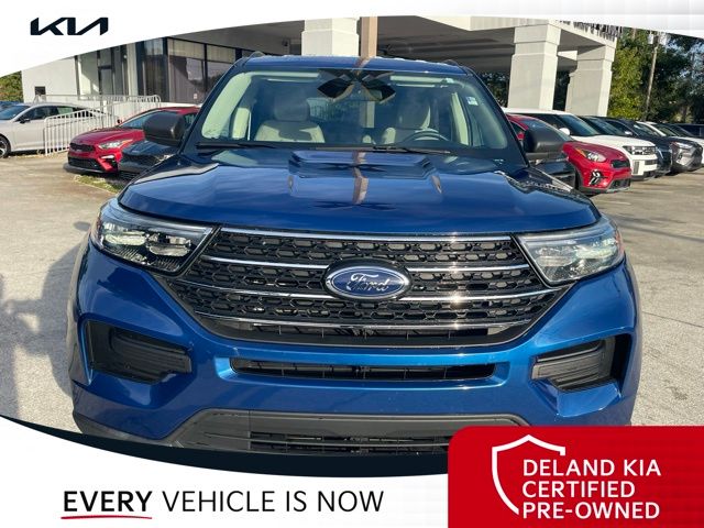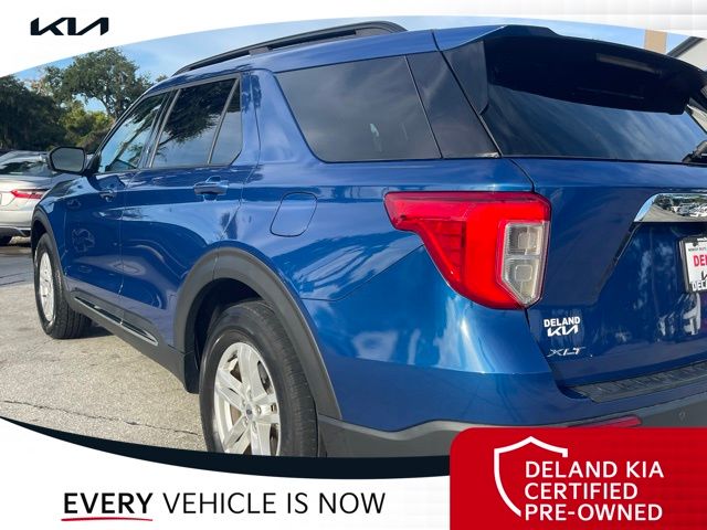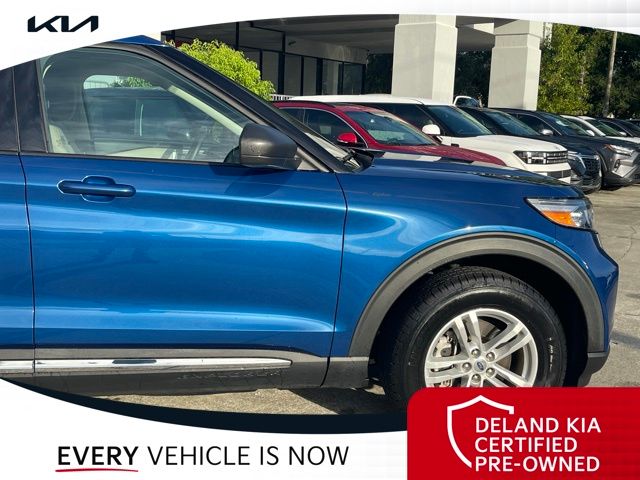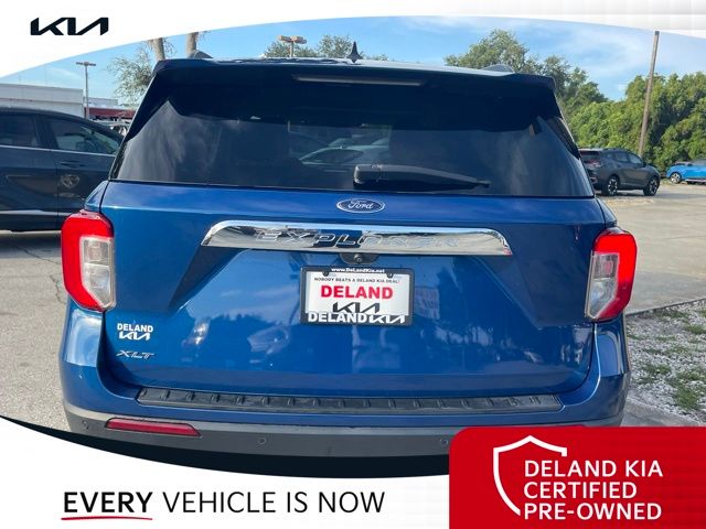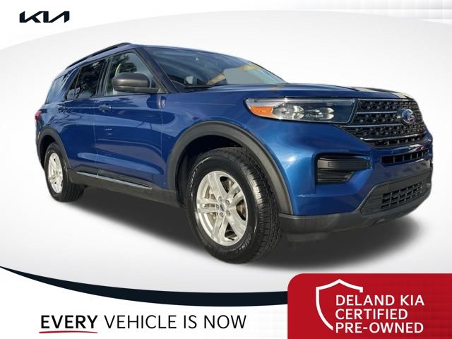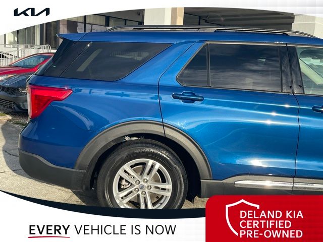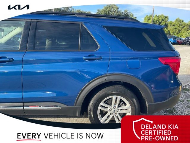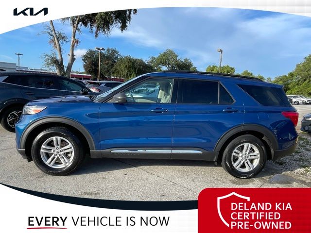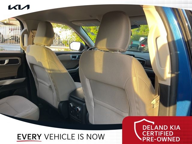 Recent Arrival! CARFAX One-Owner. Atlas Blue Metallic 2022 Ford Explorer XLT0 MONEY DOWN AVAILABLE***, LIFETIME OIL CHANGES, CARFAX ACCIDENT FREE, Florida Driven, AndroidTM Auto/Apple Carplay, Backup Camera, Keyless Access w/Push Button Start, 3rd row seat, Alloy wheels, Front dual zone A/C, Heated front seats, Power driver seat, Power Liftgate, Power passenger seat, Rear air conditioning.Sandstone Cloth interior.21/28 City/Highway MPGDeland Kia, We're Closer Than You Think!!!! Se habla Espanol!!Equipped with Equipment Group 200A, 3rd row seats: bench, Alloy wheels, Front dual zone A/C, Heated front seats, Power driver seat, Power Liftgate, Power passenger seat, Rear air conditioning, 1st Row Heated Seats, 3.58 Non-Limited-Slip Rear Axle Ratio, 4-Wheel Disc Brakes, 6 Speakers, ABS brakes, Air Conditioning, AM/FM radio: SiriusXM, AM/FM Stereo, Auto High-beam Headlights, Auto Start-Stop Removal, Automatic temperature control, Brake assist, Bumpers: body-color, Compass, Delay-off headlights, Driver door bin, Driver vanity mirror, Dual front impact airbags, Dual front side impact airbags, Electronic Stability Control, Emergency communication system: SYNC 3 911 Assist, Exterior Parking Camera Rear, FordPass Connect, Four wheel independent suspension, Front anti-roll bar, Front Bucket Seats, Front Center Armrest, Front reading lights, Fully automatic headlights, Heated door mirrors, Illuminated entry, Knee airbag, Leather steering wheel, Low tire pressure warning, Occupant sensing airbag, Outside temperature display, Overhead airbag, Overhead console, Panic alarm, Passenger door bin, Passenger vanity mirror, Power door mirrors, Power steering, Power windows, Rear anti-roll bar, Rear Auxiliary Controls Credit, Rear reading lights, Rear window defroster, Rear window wiper, Remote keyless entry, Roof rack: rails only, Security system, Speed control, Speed-sensing steering, Speed-Sensitive Wipers, Split folding rear seat, Spoiler, Steering wheel mounted audio controls, SYNC 3 Communications & Entertainment System, SYNC 3/Apple CarPlay/Android Auto, Tachometer, Telescoping steering wheel, Tilt steering wheel, Traction control, Trip computer, Unique Cloth Captain's Chairs, Variably intermittent wipers, and Wheels: 18 5-Spoke Silver-Painted Aluminum.
