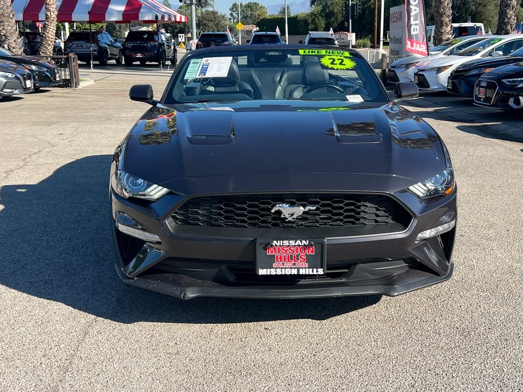 2022 Ford Mustang Gray Metallic EcoBoost Premium 2D Convertible 20/28 City/Highway MPG 10-Speed Automatic**Price does not include additional accessories**Certification Program Details: Each Nissan Certified Pre-Owned vehicle comes with the innovation and excitement you expect from Nissan. To that, we add a rigorous certification process and the peace of mind of a 7-year / 100,000 limited powertrain warranty* and roadside assistance so that you can explore with confidence.Nissan of Mission Hills is your premier New and Used automotive dealership. Come experience a fun and seamless automotive buying experience. We serve all drivers including, but not limited to Mission Hills, Van Nuys, North Hills, Porter Ranch, Granada Hills, Glendale, Los Angeles, Simi Valley, Chatsworth and the entire San Fernando Valley. We always strive to deliver a first-class car-shopping experience. We make that possible by providing a stunning collection of vehicles, hassle-free financing and high-quality service and repairs. That's how we're able to serve as the one-stop shop for buying, financing and servicing your cars!