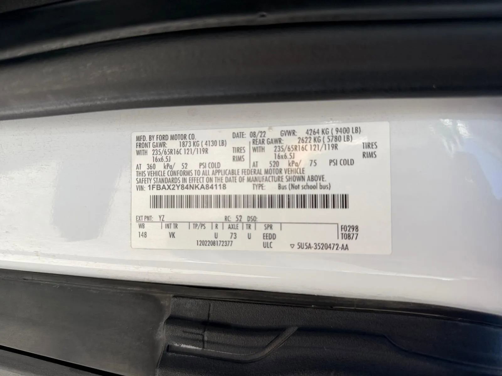 This 2022 Ford Transit Passenger Van is a versatile workhorse built for practicality and reliability. With a robust 3.5-liter V6 engine delivering 275 horsepower and 262 lb-ft of torque, it offers strong performance for a vehicle of its size. Its rear-wheel-drive layout ensures confident handling, while the spacious interior comfortably seats up to 12 passengers in Dark Palazzo Gray fabric. The exterior in Oxford White gives it a clean, professional look suited for commercial or family use. Despite its mileage of 138,451, this used Transit remains a dependable choice, equipped with modern features like a backup camera, Bluetooth connectivity, collision warning, and a WiFi hotspot to keep you connected and safe on the road. Designed for safety and convenience, this Transit includes a comprehensive suite of security features. Side curtain airbags protect all rows, including the fourth, enhancing passenger safety in case of side impacts. The vehicles ABS system, emergency braking preparation, and cornering brake control work together to provide confident stopping power. Auto-locking power door locks and an electronic parking brake with auto-off add to operational security, ensuring the vehicle remains secure when parked. These features make the Transit a reliable option for business deliveries, group travel, or family adventures, emphasizing safety without sacrificing practicality. 2022 Ford Transit Safety and Security Features This Transit is equipped with side curtain airbags for all rows, including the fourth, offering added protection for passengers. It features 4-wheel anti-lock braking system (ABS) to prevent wheel lockup during sudden stops, enhancing control and safety. Emergency braking preparation ensures the vehicle can respond swiftly in critical situations, while cornering brake control improves stability during turns. Power door locks automatically lock for security, and the electronic parking brake with auto-off simplifies parking and reduces driver fatigue, making it a secure choice for daily use. 2022 Ford Transit Entertainment and Technology Features The Transit offers advanced connectivity with FordPass Connect, allowing smart device app compatibility and the ability to start the engine remotely via smartphone. It boasts a total of eight speakers, delivering clear and immersive audio for all passengers. An auxiliary audio input through USB ensures easy connection to your favorite devices, making every ride more enjoyable. These features combine to provide a modern, connected driving experience, ideal for commercial work or family trips that demand entertainment and convenience.
