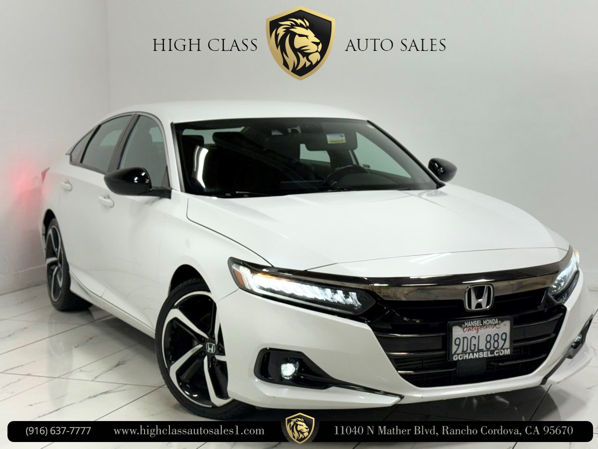 Sleek and sophisticated, our One Owner 2022 Honda Accord Sport Sedan sets a high bar for better driving in Platinum White Pearl! Powered by a TurboCharged 1.5 Liter 4 Cylinder generating 192hp for a paddle-shifted CVT for precise performance. You can also enjoy enhanced handling in this Front Wheel Drive sedan, and it sees nearly 35mpg on the highway with a crisp and commanding design. Our Accord's highly acclaimed exterior excites your senses with LED lighting, fog lamps, bold 19-inch alloy wheels, chrome exhaust finishers, and a gloss-black rear spoiler. Our Sport cabin can make you feel special with comfortable cloth seats, 12-way power for the driver, a leather-wrapped steering wheel, dual-zone automatic climate control, sport pedals, keyless access, and pushbutton ignition. High-tech Honda infotainment is at your service with an 8-inch touchscreen, Apple CarPlay, Android Auto, Bluetooth, and an eight-speaker sound system. There's clever interior storage, too! Honda helps keep you safely on the move with intelligent assistance from automatic braking, a multi-angle rearview camera, lane-keeping assistance, adaptive cruise control, ABS, airbags, and more. It's time to get more out of everyday driving in our Accord Sport! Save this Page and Call for Availability. We Know You Will Enjoy Your Test Drive Towards Ownership!