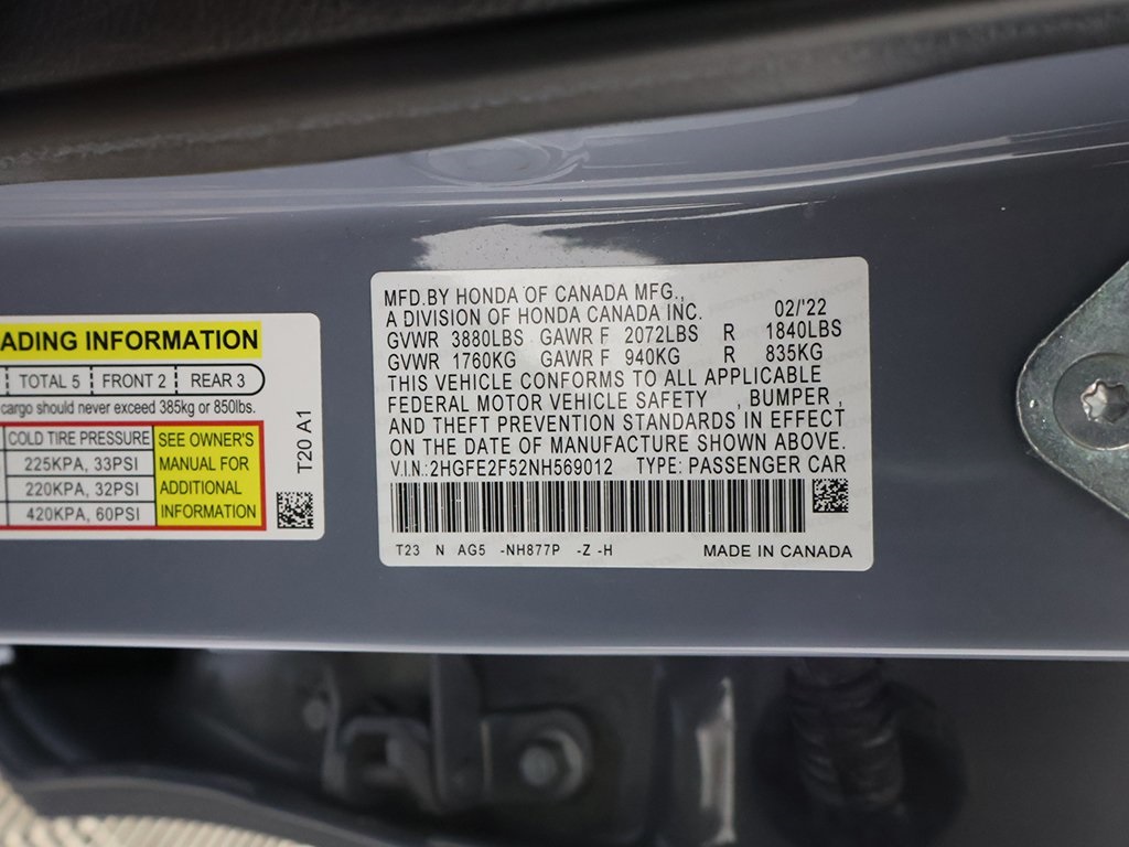 Priced below KBB Fair Purchase Price! Odometer is 30075 miles below market average!Sonic Gray Pearl 2022 Honda Civic Sport 4D Sedan CVT 2.0L I4 DOHC 16V i-VTEC FWDSTOP OVERPAYING!!! SAVE THOUSANDS ON BOTH - YOUR CAR PURCHASE AND A FINANCING TOGETHER!!! YOU CAN'T MISS THIS DEAL!!! JUST TAKE A LOOK!!! KBB prices reflects a value of the vehicle for the vehicle published by Kelly Blue Book within the last 60 days.Financing is available for all credit situations. The financing team at North Coast Auto Mall has decades of experience and wide-ranging lending relationships to get you financed on the vehicle of your dreams! Visit us online at www.AkronAutoMall.com Here, at North Coast Auto Mall, we are proud to offer low mile, late model inventory at incredible prices. All of our vehicles are inspected and reconditioned by ASE certified technicians. North Coast Auto Mall sets out to offer all clients great prices, flexible financing terms, high-quality vehicles, and a thoroughly transparent buying process. Please call us today to begin your purchase!Black w/Cloth Seat Trim, Adaptive Cruise Control: Adaptive Cruise Control (ACC) with Low-Speed Follow, Apple CarPlay/Android Auto, Auto High-beam Headlights, Automatic temperature control, Delay-off headlights, Exterior Parking Camera Rear, Forward collision: Collision Mitigation Braking System (CMBS) + FCW mitigation, Fully automatic headlights, Wheels: 18 Gloss Black Alloy, 4-Wheel Disc Brakes, 8 Speakers, ABS brakes, Air Conditioning, Alloy wheels, AM/FM radio, Brake assist, Bumpers: body-color, Cloth Seat Trim, Driver door bin, Driver vanity mirror, Dual front impact airbags, Dual front side impact airbags, Electronic Stability Control, Emergency communication system: HondaLink, Four wheel independent suspension, Front anti-roll bar, Front Bucket Seats, Front Center Armrest, Front reading lights, Illuminated entry, Knee airbag, Leather Shift Knob, Leather steering wheel, Low tire pressure warning, Occupant sensing airbag, Outside temperature display, Overhead airbag, Panic alarm, Passenger door bin, Passenger vanity mirror, Power door mirrors, Power steering, Power windows, Radio data system, Radio: 180-Watt AM/FM Audio System, Rear anti-roll bar, Rear side impact airbag, Rear window defroster, Remote keyless entry, Security system, Speed control, Speed-sensing steering, Steering wheel mounted audio controls, Tachometer, Telescoping steering wheel, Tilt steering wheel, Traction control, Trip computer, Keyless start, Lane departure warning, Lane keep assist, Black w/Cloth Seat Trim, Adaptive Cruise Control: Adaptive Cruise Control (ACC) with Low-Speed Follow, Apple CarPlay/Android Auto, Auto High-beam Headlights, Automatic temperature control, Delay-off headlights, Exterior Parking Camera Rear, Forward collision: Collision Mitigation Braking System (CMBS) + FCW mitigation, Fully automatic headlights, Wheels: 18 Gloss Black Alloy.