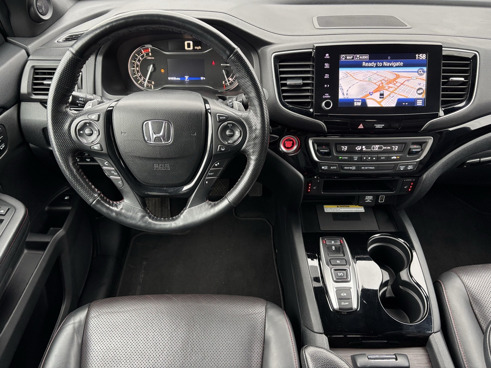 2022 Honda Ridgeline Black Edition Black w/Perforated Leather Seat Trim, 4-Wheel Disc Brakes, 4.33 Axle Ratio, 8 Speakers, ABS brakes, Air Conditioning, Alloy wheels, AM/FM radio: SiriusXM, Apple CarPlay/Android Auto, Auto High-beam Headlights, Auto-dimming Rear-View mirror, Automatic temperature control, Blind Spot Information (BSI) System warning, Bluetooth Hands-Free Link, Brake assist, Bumpers: body-color, Compass, Cruise Control, Delay-off headlights, Driver door bin, Driver vanity mirror, Driver's Seat Mounted Armrest, Dual front impact airbags, Dual front side impact airbags, Electronic Stability Control, Forward collision: Collision Mitigation Braking System (CMBS) + FCW mitigation, Four wheel independent suspension, Front anti-roll bar, Front Bucket Seats, Front dual zone A/C, Front fog lights, Front reading lights, Fully automatic headlights, Garage door transmitter: HomeLink, Heated and Cooled Seats, Heated door mirrors, Heated Front Bucket Seats, Heated steering wheel, Honda Satellite-Linked Navigation System, Illuminated entry, Low tire pressure warning, Memory seat, Navigation system: Honda Satellite-Linked Navigation System, Occupant sensing airbag, Outside temperature display, Overhead airbag, Overhead console, Panic alarm, Passenger door bin, Passenger seat mounted armrest, Passenger vanity mirror, Perforated Leather Seat Trim, Power door mirrors, Power driver seat, Power moonroof, Power passenger seat, Power steering, Power windows, Radio data system, Radio: 540-Watt Premium Audio System w/8 Speakers, Rear air conditioning, Rear anti-roll bar, Rear reading lights, Rear seat center armrest, Rear step bumper, Rear window defroster, Rearview Camera, Remote keyless entry, Security system, SiriusXM, Speed-sensing steering, Split folding rear seat, Steering wheel mounted audio controls, Tachometer, Telescoping steering wheel, Tilt steering wheel, Traction control, Trip computer, Turn signal indicator mirrors, Variably intermittent wipers, Wheels: 18 Exclusive Gloss Black Alloy, (Must finance with Ford Motor Credit to receive online pricing - see dealer for details.) Proudly, Black w/Perforated Leather Seat Trim. Sonic Gray Pearl 9-Speed Automatic Clean CARFAX. CARFAX One-Owner.