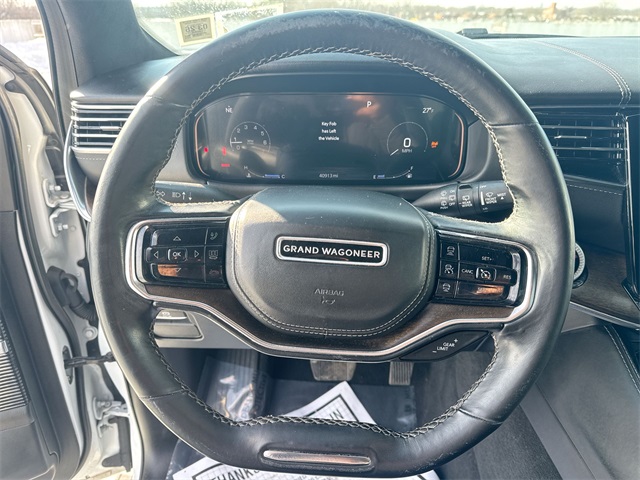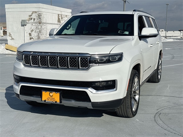 2022 Jeep Grand Wagoneer Series II Bright White Clearcoat 8-Speed Automatic CARFAX One-Owner. Grand Wagoneer Series II, 4D Sport Utility, 6.4L V8, 8-Speed Automatic, 4WD, Bright White Clearcoat, Black Leather, 19 Speakers, 3rd row seats: bench, Adjustable pedals, AM/FM radio: SiriusXM with 360L, Audio memory, Auto High-beam Headlights, Auto-dimming door mirrors, Auto-dimming Rear-View mirror, Auto-leveling suspension, Automatic Temperature Control, Body Color Roof, Brake assist, Bumpers: body-color, Four wheel independent suspension, Front dual zone A/C, Fully Automatic Headlights, Garage door transmitter, Genuine wood console insert, Genuine wood dashboard insert, Genuine wood door panel insert, Heads-Up Display, Heated door mirrors, Heated Front Seats, Heated Rear Seats, Heated Steering Wheel, Leather Trimmed Bucket Seats, Memory seat, Navigation System, Pedal memory, Power door mirrors, Power driver seat, Power Liftgate, Power moonroof, Quick Order Package 23S, Radio data system, Radio: Uconnect 5 Nav w/12.0 Display, Rain sensing wipers, Rear air conditioning, Rear dual zone A/C, Reclining 3rd row seat, Remote Keyless Entry, Speed control, Speed-sensing steering, Speed-Sensitive Wipers, Steering wheel memory, Steering wheel mounted audio controls, Turn signal indicator mirrors, Two Tone Paint Group, Ventilated front seats, Wheels: 22 x 9.0 Premium 1 Aluminum.To Protect Your Safety, Brooklyn CDJR is currently offering our Exclusive Home Services:Virtual Tour of Vehicle: We will use live interactive video chat to give you a virtual walk around of any vehicle we have in stock.Local Home Delivery: If you buy a vehicle, over the phone, email, text. We will deliver the vehicle to your home or a place of your choosing.Certified.If you need a new or Pre-Owned vehicle our Banks are here to get you on the road. 100,000 mile Certified Warranty is Available for this vehicle!
