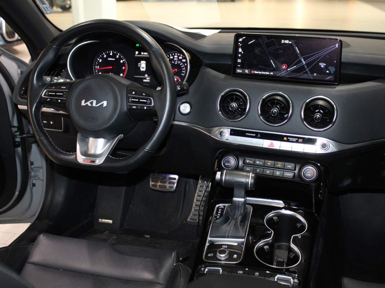 Audio:9 Speakers,AM/FM radio: SiriusXM,Radio: AM/FM/HD Audio System,Climate Control:Air Conditioning,Climate Control:Automatic temperature control,Climate Control:Front dual zone A/C,Climate Control:Rear air conditioning,Climate Control:Rear window defroster,Convenience:Power driver seat,Convenience:Power steering,Convenience:Power windows,Convenience:Remote keyless entry,Convenience:Smart Key w/ Push Button and Remote Start,Convenience:Steering wheel mounted audio controls,Cruise Control:Speed control,Driving Assist:Brake assist,Driving Assist:Electronic Stability Control,Handling:Four wheel independent suspension,Handling:Traction control,Headlights:Auto High-beam Headlights,Headlights:Delay-off headlights,Headlights:Fully automatic headlights,Misc. Exterior:Bumpers: body-color,Misc. Exterior:Heated door mirrors,Misc. Exterior:Power door mirrors,Misc. Exterior:Turn signal indicator mirrors,Misc. Interior:Apple CarPlay and Android Auto,Misc. Interior:Auto-dimming Rear-View mirror,Misc. Interior:Driver door bin,Misc. Interior:Driver vanity mirror,Misc. Interior:Front reading lights,Misc. Interior:Illuminated entry,Misc. Interior:Outside temperature display,Misc. Interior:Overhead console,Misc. Interior:Passenger vanity mirror,Misc. Interior:Rear seat center armrest,Misc. Interior:Sport steering wheel,Misc. Interior:Tachometer,Misc. Interior:Telescoping steering wheel,Misc. Interior:Tilt steering wheel,Misc. Interior:Trip computer,Navigation:Navigation System,Parking Assist:Exterior Parking Camera Rear,Safety:4-Wheel Disc Brakes,Safety:ABS brakes,Safety:Anti-whiplash front head restraints,Safety:Dual front impact airbags,Safety:Dual front side impact airbags,Emergency communication system: UVO eServices,Emergency communication system:Front anti-roll bar,Emergency communication system:Knee airbag,Emergency communication system:Low tire pressure warning,Emergency communication system:Occupant sensing airbag,Emergency communication system:Overhead airbag,Emergency communication system:Rear anti-roll bar,Seats:Front Bucket Seats,Seats:Front Center Armrest,Seats:Heated Front Bucket Seats,Seats:Heated front seats,Seats:Leather Seat Trim,Seats:Split folding rear seat,Security:Panic alarm,Security:Security system,Storage:Passenger door bin,Uncategorized:Adjustable head restraints: driver and passenger w/tilt,Wheels:Alloy wheels,Wheels: 8.0J x 18 Alloy,Wipers:Rain sensing wipers,Speed-Sensitive Wipers,