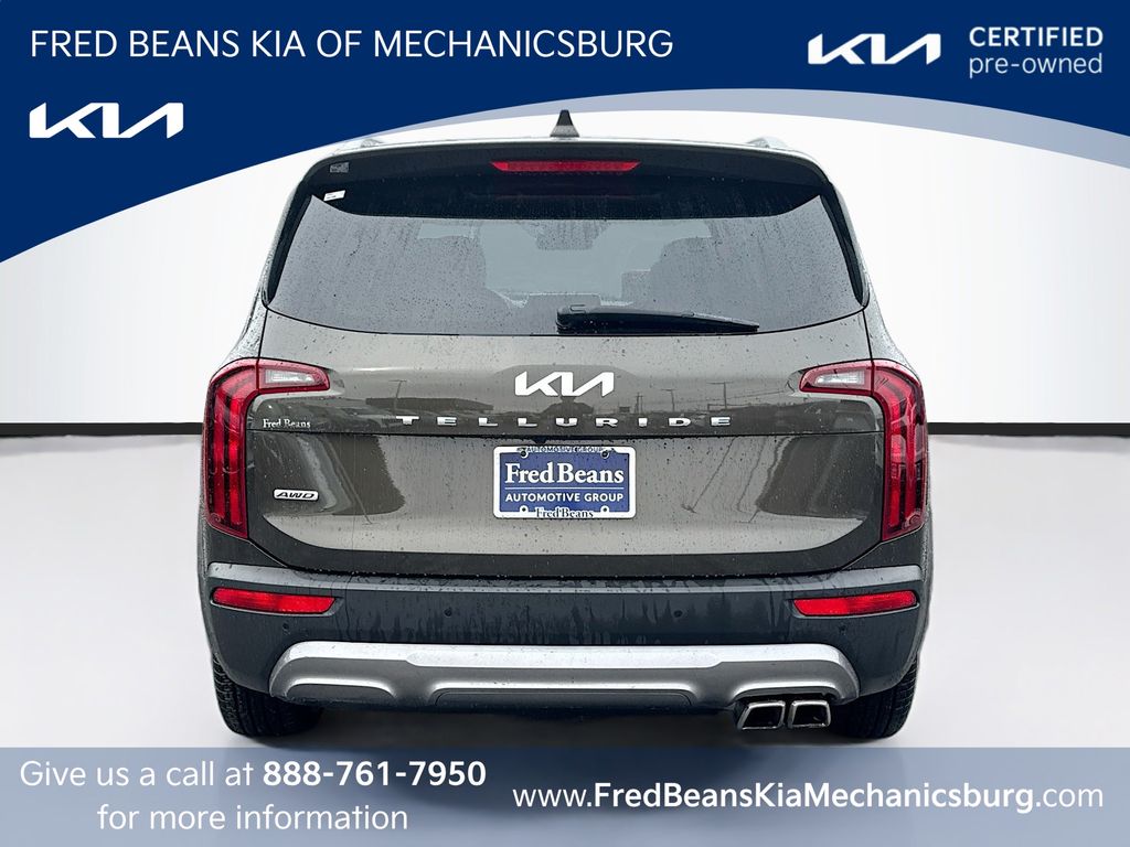 Discover the perfect blend of style, capability, and technology in this 2022 Kia Telluride S. With its sleek green exterior, this all-wheel-drive SUV is a head-turner that's ready to take on any adventure.- Visit our Website for a Complimentary CarFax Report!!!- Great Service History- KIA Certified Pre-Owned- 10 Year / 100,000 Mile Powertrain Coverage- 5 Year / 60,000 Mile Comprehensive Coverage- 12 Month / 12,000 Mile Platinum Coverage- 10 Year Unlimited Mile Roadside Assistance- Auto Reward ProgramPowered by a robust 3.8L V6 DOHC engine paired with an 8-speed automatic transmission, this Telluride delivers an impressive 19 MPG in the city and 24 MPG on the highway, making it both capable and efficient.Step inside and you'll be greeted by a host of premium features, including automatic temperature control, front dual-zone air conditioning, a power driver's seat, a smart key with push-button start and remote start, a power moonroof, and fully automatic headlights. Stay connected with Apple CarPlay and Android Auto, while the leather-wrapped steering wheel and heated front seats provide a touch of luxury.With seating for up to eight, the Telluride offers ample space for your family and friends. The reclining third-row seat and synthetic leather seat trim add to the overall comfort and convenience.Kia Certified Pre-Owned vehicles undergo a rigorous 165-point inspection and come with a wealth of benefits, including a 12-month/12,000-mile Platinum Coverage warranty, a 120-month/100,000-mile powertrain warranty, roadside assistance, and more. You can drive with confidence knowing this Telluride has been meticulously maintained and is ready to provide years of reliable service.Fred Beans Kia of Mechanicsburg offers one of Central PA’s largest selections of new Kia models, certified pre-owned Kias, and quality used vehicles from all major brands—including access to inventory from our nearby Ford, Buick/GMC, Mazda, and Hyundai dealerships. Whether you're shopping for a car, truck, or SUV, we deliver unbeatable variety, trusted service, and fast, flexible financing. Proudly serving Harrisburg, Carlisle, Camp Hill, and beyond—discover why more drivers choose Fred Beans.