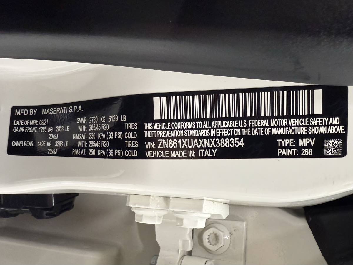 Like a force of nature, our Accident Free, One Owner 2021 Maserati Levante GT AWD is a relentless driving machine with legendary performance in Bianco Alpi! Powered by a Twin-TurboCharged 3.0 Liter V6 generating 345hp paired to an 8 Speed Automatic transmission with Sport and Off-Road modes for dynamic thrills well beyond the beaten path. This All Wheel Drive SUV also features a Skyhook suspension for carving through corners or canyons, and it sees nearly 22mpg on the highway. Our Levante can leave a lasting impression with an iconic Trident on its grille, signature fender vents, LED lighting, a panoramic sunroof, and bold alloy wheels. Our GT cabin supports athletic adventures without sacrificing comfort. It boasts heated leather power front seats, a heated-leather steering wheel, dual-zone automatic climate control, and a cold box to help you stay hydrated with cool refreshments during long journeys. An 8.4-inch touchscreen is command central for your infotainment. It works with full-color navigation, Apple CarPlay/Android Auto, Bluetooth, voice recognition, and an eight-speaker sound system to help you stay connected to your world. Maserati's distinctive Italian approach to driving complements smart safety measures such as a surround-view system, blind-spot monitoring, lane-keeping assistance, adaptive cruise control, automatic braking, and more. With all that, our Levante GT embodies the brand's intrepid and progressive spirit! Save this Page and Call for Availability. We Know You Will Enjoy Your Test Drive Towards Ownership!