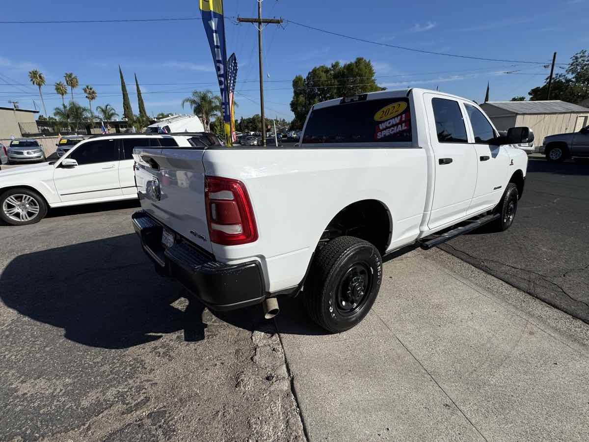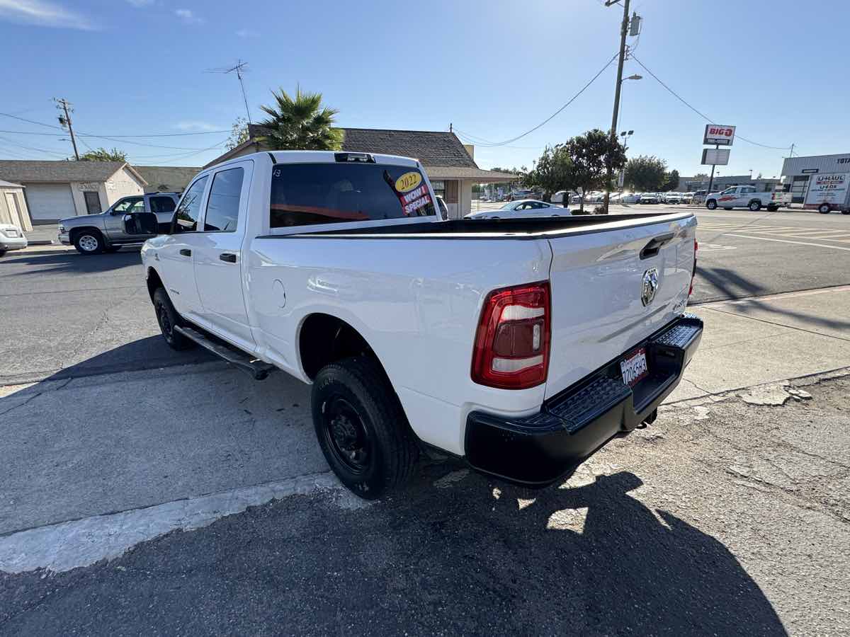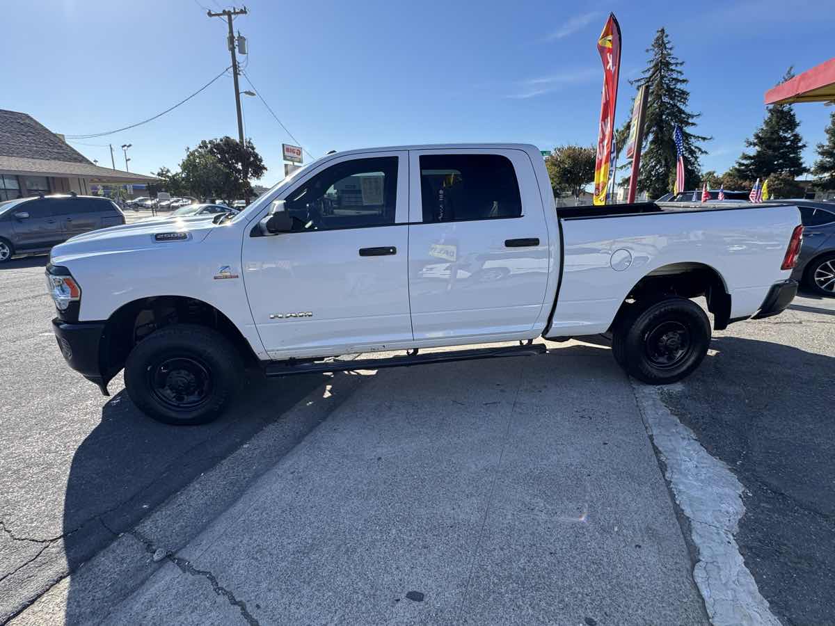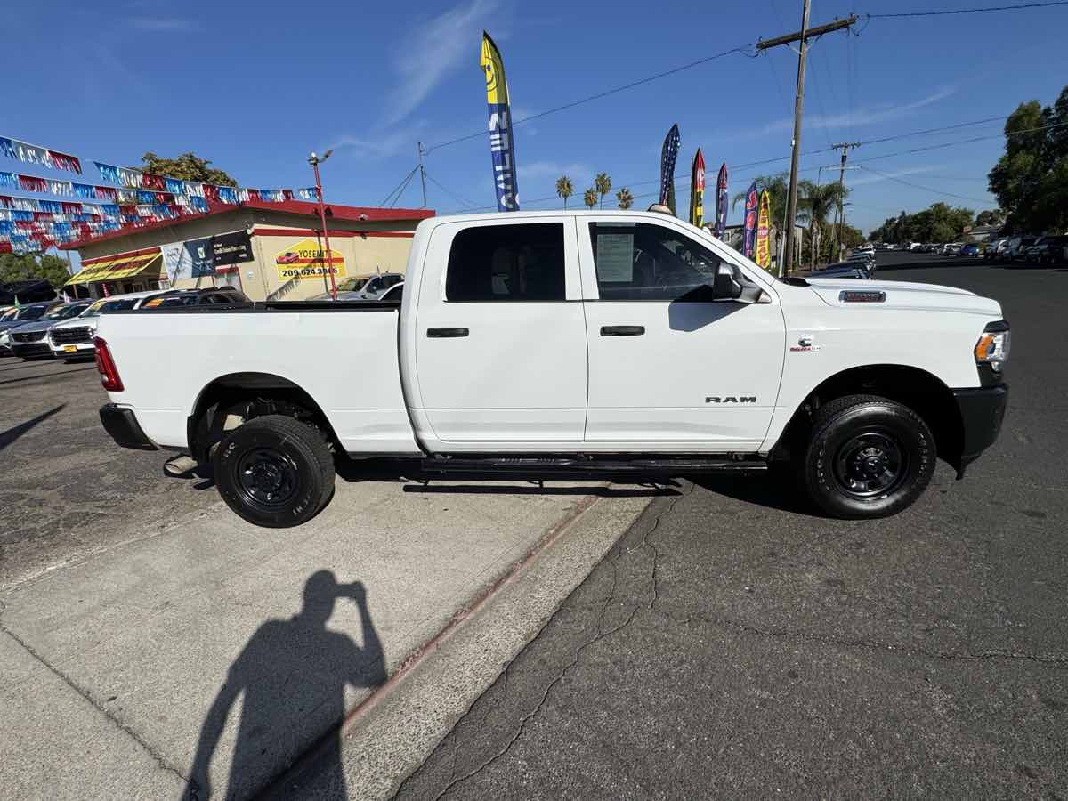 Our One Owner, Diesel powered 2022 RAM 2500 Tradesman Crew Cab 4X4 is an excellent addition to your toolkit in Bright White! Motivated by a TurboCharged 6.7 Liter Cummins Diesel 6 Cylinder delivering 370hp and 850lb-ft of torque to a 6 Speed Automatic transmission for superior strength. A heavy-duty suspension helps this Four Wheel Drive truck move with calm confidence even when hard at work, and it has a bold design with distinctive details. Check out our RAM 2500's matte-black mesh grille, black bumpers, quad headlamps, heated power mirrors, bedliner, running boards, and an LED lamp for its Class V receiver hitch. Engineers crafted our Tradesman cabin to meet your daily needs and then some. As a result, it has smart features like comfortable work-grade seats, air conditioning, power accessories, an overhead console cruise control, a 12V power outlet, a 3.5-inch driver display, and Uconnect 3 technology for staying in touch on the go with a 5-inch touchscreen, Bluetooth, voice recognition, and a six-speaker sound system. Keeping organized on the job is a breeze with our truck's clever cargo solutions. RAM helps you stay out of harm's way with a high-strength steel frame, a backup camera, ABS, stability/traction control, hill-start assistance, tire-pressure monitoring, trailer sway control, and advanced airbags. Our 2500 Tradesman is a mighty machine for getting more done! Save this Page and Call for Availability. We Know You Will Enjoy Your Yosemite Motors Test Drive Towards Ownership!