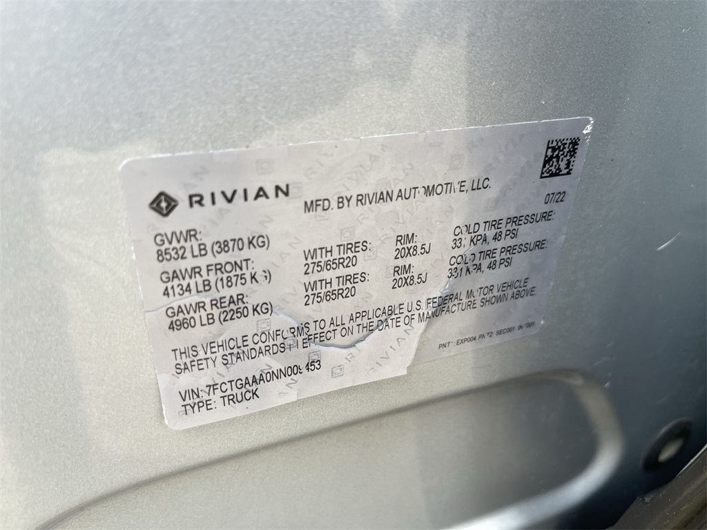 2022 Rivian R1T Adventure AWD All-Electric Truck Built for AdventureExperience the future of off-road travel with this 2022 Rivian R1T Adventure AWD. This electric crew-cab pickup fuses rugged capability, cutting-edge tech, and eco-friendly performance into a versatile package that shines whether you're towing gear, charging ahead on trails, or cruising city roads.Performance & PowertrainThis R1T comes with Rivians quad-motor all-wheel drive system, delivering strong torque, excellent traction, and confident handling in all conditions. Thanks to its large battery pack, it offers an EPA-rated range of approximately 314 miles on a single charge, making it a top choice among electric trucks for both daily driving and longer journeys. It can haul up to 11,000 lbs of towing weight while still offering electric-powered strength and whisper-quiet operation.Design & UtilityThe Adventure trim brings premium touches throughout: a well-appointed interior, thoughtful storage solutions like Rivians Gear Tunnel, a cavernous front frunk, and durable materials made for life outdoors and in. The bed is capable, and the overall size is crew-cab friendlyroom for people, gear, and ambition.Comfort & FeaturesInside, youll find modern conveniences that elevate the drive: heated front seats, advanced infotainment, strong connections (USB and wireless), and interior styling that blends toughness with sophistication. The cabin is built to atmosphere-shiftfrom getting muddy to going upscale.Off-Road & VersatilityWith robust suspension, high ground clearance, and multiple drive modes tailored for off-road trails, this R1T is built to go places many trucks cant. Whether its sand, snow, mud, or gravel, it delivers. And thanks to its electric drivetrain, you get instant torque for climbing, smooth regenerative braking on descents, and fewer moving parts than a gas-powered truck.Why This Rivian R1T Adventure Stands OutAll-electric, adventure capable with impressive electric range.High towing capacity makes it functional for serious work.Packed with tech and thoughtful storage for outdoor gear.Rugged enough for trails, refined enough for daily driving.