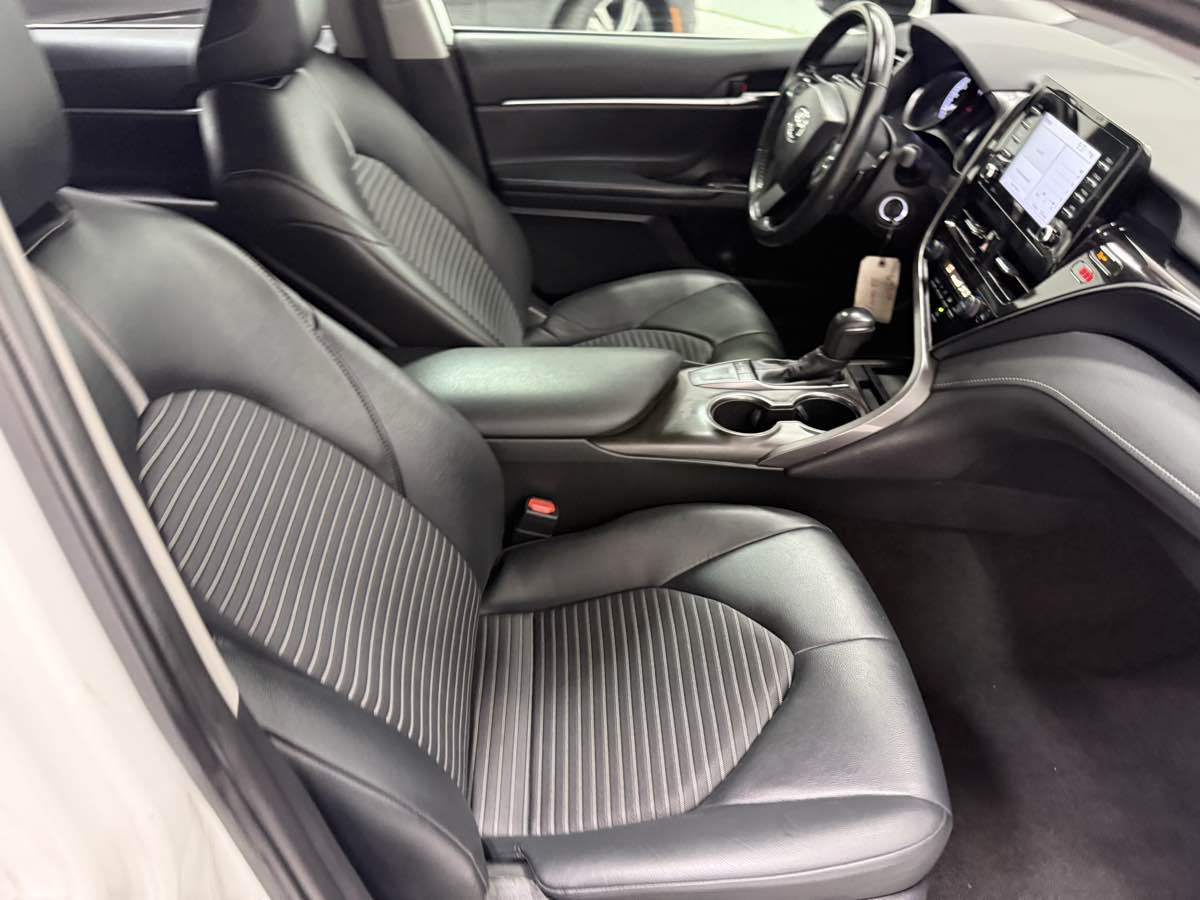 Our Accident Free, One Owner 2022 Toyota Camry SE Sedan is here to spice up your driving with athletic reflexes and a bold Super White design! Powered by a 2.5 Liter Dynamic Force 4 Cylinder generating 203hp paired to a paddle-shifted 8 Speed Automatic transmission. This Front Wheel Drive sedan is ready to carve the corners with its sport-tuned suspension, and it cruises at nearly 39mpg on the highway. You'll also love the aggressive design of our Camry, which shows off a black grille, prominent rocker panels, a rear spoiler, chrome-tipped exhaust outlets, LED lighting, and 18-inch black alloy wheels. Thoughtfully engineered for comfort and convenience, our SE cabin inspires you to have fun driving with supportive SofTex seats, eight-way power for the driver, a leather-wrapped steering wheel, dual-zone automatic climate control, and smart technology to tie it all together. Highlights include a 7-inch touchscreen, Android Auto/Apple CarPlay, Bluetooth, WiFi/Amazon Alexa compatibility, and a six-speaker sound system. There's plenty of space to stretch out, too! Drive with an extra measure of confidence knowing Toyota Safety Sense 2.5 technology is onboard with a backup camera, automatic braking, adaptive cruise control, lane-keeping assistance, and more. Hard to resist, our Camry SE sedan is easy to own! Save this Page and Call for Availability. We Know You Will Enjoy Your Test Drive Towards Ownership!