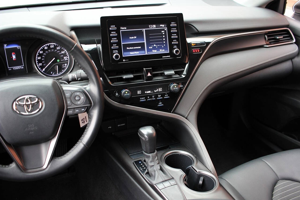 Introducing the 2022 Toyota Camry, the ultimate combination of style, power, and reliability. This sleek sedan is equipped with a 2.5L I4 engine, delivering an impressive 203 horsepower and 184 ft. lbs. of torque. With an 8-speed automatic transmission featuring sequential shift mode, you'll experience smooth and responsive driving every time you hit the road.<br /><br />But the 2022 Toyota Camry isn't just about performance, it's also packed with advanced technology and luxurious features. The spacious interior boasts comfortable seating for up to five passengers, along with premium materials and a modern design. Stay connected and entertained with the latest infotainment system, including a large touchscreen display, Bluetooth connectivity, and compatibility with both Apple CarPlay and Android Auto.<br /><br />Safety is a top priority in the 2022 Toyota Camry, with a suite of advanced driver-assist features such as lane departure warning, automatic emergency braking, and adaptive cruise control. You can drive with confidence knowing that your Camry is equipped to help prevent accidents and protect you and your passengers.<br /><br />Don't miss your chance to own the 2022 Toyota Camry, the perfect blend of style, performance, and technology. Visit our dealership today and experience the smooth and powerful ride for yourself. Upgrade your driving experience with the 2022 Toyota Camry.