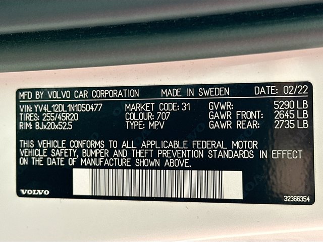 Crystal White 2022Volvo XC60 B5 Inscription FWD Automatic with Geartronic 2.0L I4 TurbochargedWell Equipped with, 14 Speakers, 4-Wheel Disc Brakes, ABS brakes, Air Conditioning, Alloy wheels, Anti-whiplash front head restraints, Auto High-beam Headlights, Auto-dimming door mirrors, Auto-dimming Rear-View mirror, Automatic temperature control, Brake assist, Bumper Cover, Bumpers: body-color, Cargo Tray, Delay-off headlights, Driver door bin, Driver vanity mirror, Dual front impact airbags, Dual front side impact airbags, Electronic Stability Control, Emergency communication system: Volvo Cars App w/4 Year Subscription, Exterior Parking Camera Rear, Four wheel independent suspension, Front anti-roll bar, Front Bucket Seats, Front Center Armrest, Front dual zone A/C, Front fog lights, Front reading lights, Fully automatic headlights, Garage door transmitter: HomeLink, Genuine wood console insert, Genuine wood dashboard insert, harman/kardon Speakers, Heated & Ventilated Front Bucket Seats, Heated door mirrors, Heated front seats, Illuminated entry, Illuminated Tailgate Plate, Knee airbag, Leather Shift Knob, License Plate Frame, Low tire pressure warning, Luggage Cover, Memory seat, Navigation system: Sensus Navigation, Occupant sensing airbag, Outside temperature display, Overhead airbag, Panic alarm, Passenger door bin, Passenger vanity mirror, Perforated Nappa Leather Upholstery, Power door mirrors, Power driver seat, Power moonroof, Power Operated Tailgate, Power passenger seat, Power steering, Power windows, Protection Package Premier, Radio data system, Radio: harman/kardon Premium Audio System, Rain sensing wipers, Rear air conditioning, Rear anti-roll bar, Rear dual zone A/C, Rear fog lights, Rear reading lights, Rear seat center armrest, Rear window defroster, Rear window wiper, Remote keyless entry, Rubber Floor Mats, Security system, Speed control, Split folding rear seat, Spoiler, Steering wheel mounted audio controls, Tachometer, Telescoping steering wheel, Tilt steering wheel, Traction control, Trip computer, Turn signal indicator mirrors, Variably intermittent wipers, Ventilated front seats, Wheel Locks, Wheels: 19 5-Multi Spoke Black Diamond Cut Alloy, Wheels: 20 5-Multi Spoke Black Diamond Cut Alloy.23/30 City/Highway MPGDealer shall in no way be held liable for any errors or omissions to be found on this website. Price(s) include(s) all costs to be paid by a consumer, except for licensing costs, registration fees, filing fees, transportation fees and taxes. Price does not include dealers documentary fee of $799 at NJ dealerships or $490 at PA dealerships. Price does not include the documentary fee of $895 or the electronic filing system fee of $150 at FL dealerships. Prices are subject to change without notice. Any purchaser or prospective purchaser should independently verify with a salesperson the accuracy of all information listed on this website. Actual equipment of this vehicle may differ. Contact store for more details.