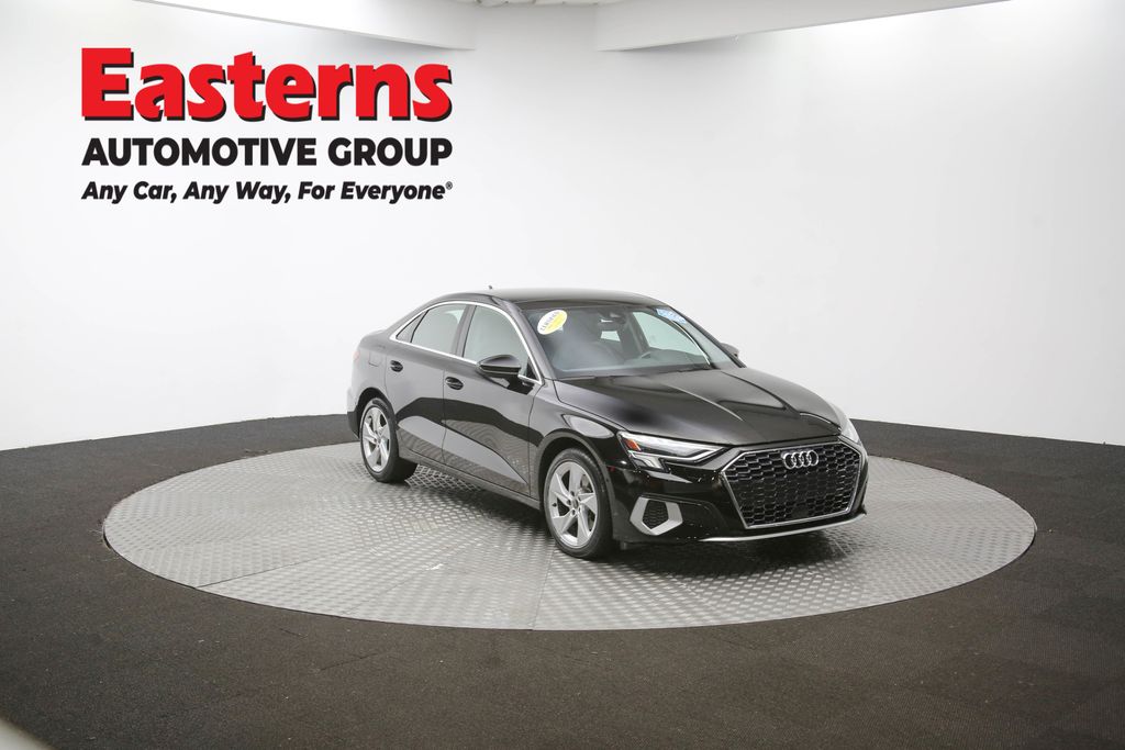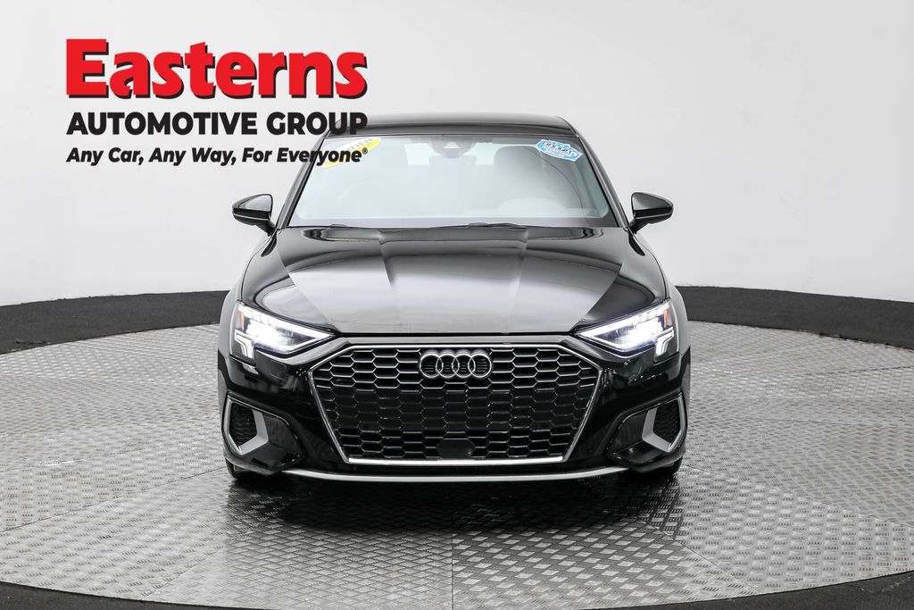 2023 Audi A3 40 Premium FrontTrak Black FrontTrak 7-Speed Automatic S tronic Leather, ABS brakes, Audi Sound System, Auto High-beam Headlights, Automatic temperature control, Brake assist, Emergency communication system, Exterior Parking Camera Rear, Front dual zone A/C, Heated door mirrors, Heated Front Bucket Seats, Illuminated entry, Leather Seating Surfaces, Low tire pressure warning, Power door mirrors, Power driver seat, Power moonroof, Power passenger seat, Radio: Audi Sound System, Rain sensing wipers, Rear air conditioning, Rear window defroster, Remote keyless entry, Speed control, Split folding rear seat, Traction control, Wheels: 17 5-Arm Design.Clean CARFAX. CARFAX One-Owner. 28/38 City/Highway MPGEasterns Automotive Group has 11 locations that has sold thousands of used cars in the Maryland, DC, and Virginia communities for over the past 35 years. Every Easterns vehicle has passed a rigorous Multi-Point Quality Certification, so you can buy with confidence. Start your purchase online to save time by visiting Easterns.com... Any Car, Any Way, For Everyone.