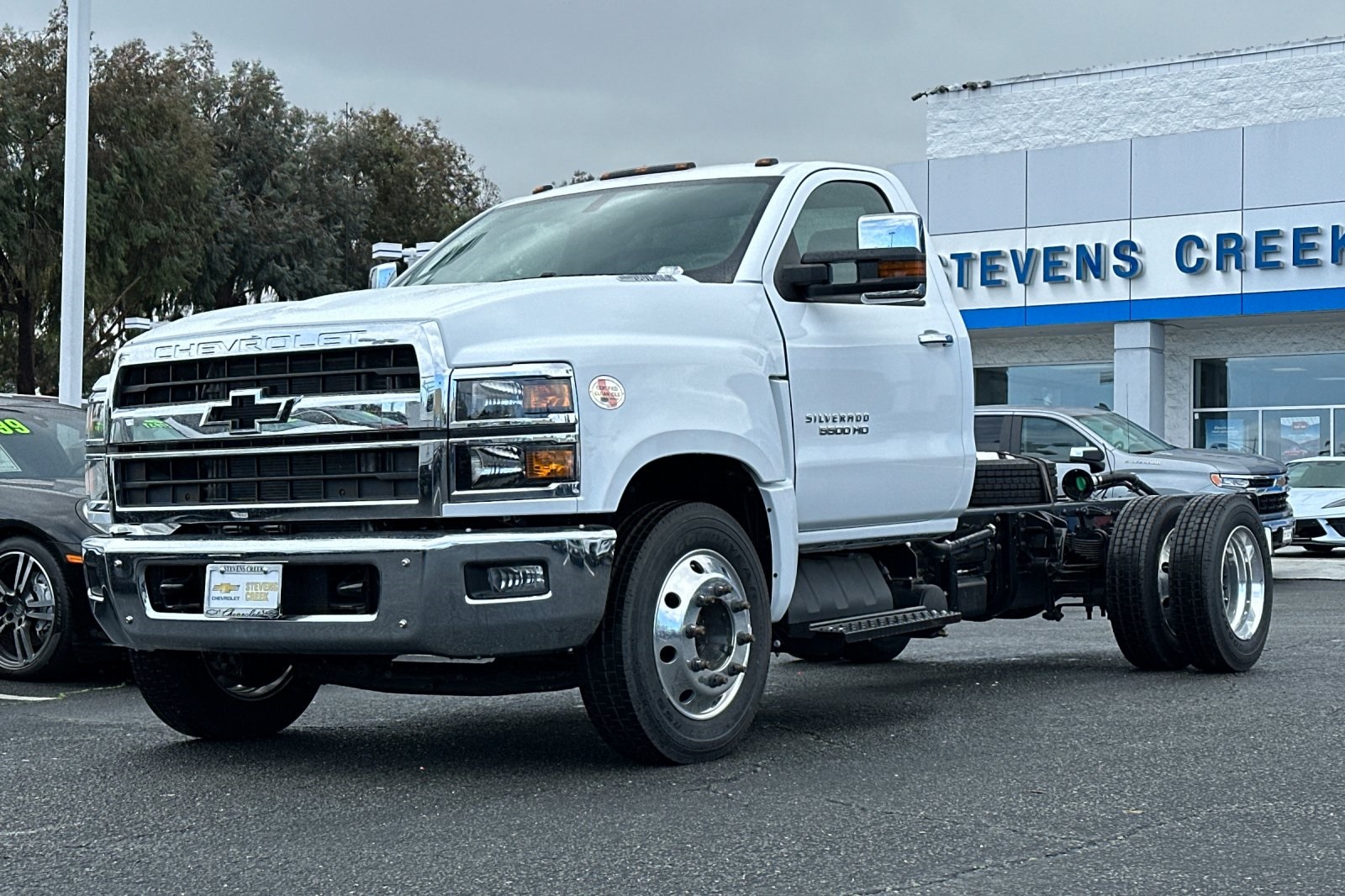 Factory MSRP: $73,175 $4,440 off MSRP! 2023 Summit White Chevrolet Silverado 4500HD Work Truck RWD Duramax 6.6L V8 Turbodiesel 10-Way Power Driver's Seat Adjuster, 110-Volt AC Power Outlet, 2 Spare Keys Key System, 20 Gallons Additional Fuel, 34,000 lbs. GCWR (15,422 kg), 40/20/40 Front 3-Passenger Split Bench Seat, 6-Speaker Audio System, 63 Axle To End Of Frame, ABS brakes, Air Compressor Accessory Drive, Air Conditioning, Assist Steps, Black Frame-Mounted Front Recovery Hooks, Black Seat Belts, Chevrolet Connected Access Capable, Chrome Front Bumper, Chrome Grille, Chrome Mirror Caps, Chrome Outside Door Handles, Cloth Seat Trim, Deep-Tinted Glass, Delay-off headlights, Driver door bin, Dual front impact airbags, Dual front side impact airbags, Dual rear wheels, Electronic Stability Control, Exterior Parking Camera Rear, Front Center Armrest w/Storage, Front Halogen Fog Lamps, Front License Plate Kit, Front reading lights, Frontal Passenger-Side Airbag Deactivation Switch, Fuel Sense Performance Transmission Shift Control Calibration, Fully automatic headlights, Limited-Slip Axle, Manual Regeneration Diesel Particulate Filter DPF, Occupant sensing airbag, OnStar & Chevrolet Connected Services Capable, Overhead airbag, Overhead console, Passenger cancellable airbag, Passenger door bin, Power steering, Power Take-Off Engine Control Provisions, Power Windows w/Driver Express Up & Down, Premium audio system: Chevrolet MyLink, Rear Shock Absorbers, Rear-Window Electric Defogger, Remote Keyless Entry, Single-Note Horn, Single-Slot CD/MP3 Player, Single-Zone Air Conditioning, SiriusXM Radio, Speed control, Stone Protection Grille Guard Screen, Tachometer, Tilt steering wheel, Tool Kit w/Rim Wrench & Handle Only, Top Post Threaded Battery Jump Start Stud, Traction control, Trip computer, Variably intermittent wipers, Voltmeter, Wheels: 19.5 x 6.75 Black Painted Hub Piloted Steel w/8-Holes, Wheels: 19.5 x 6.75 Hub Piloted 6-Alum w/8-Holes.Find New Roads that lead to Stevens Creek Chevrolet! Prices do not include government fees and taxes, any finance charges, any dealer document processing charge, any electronic filing charge, and any emission testing charge.