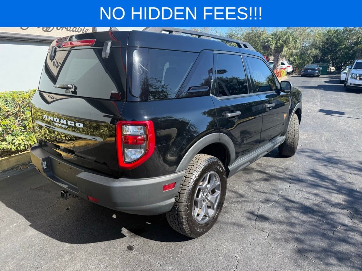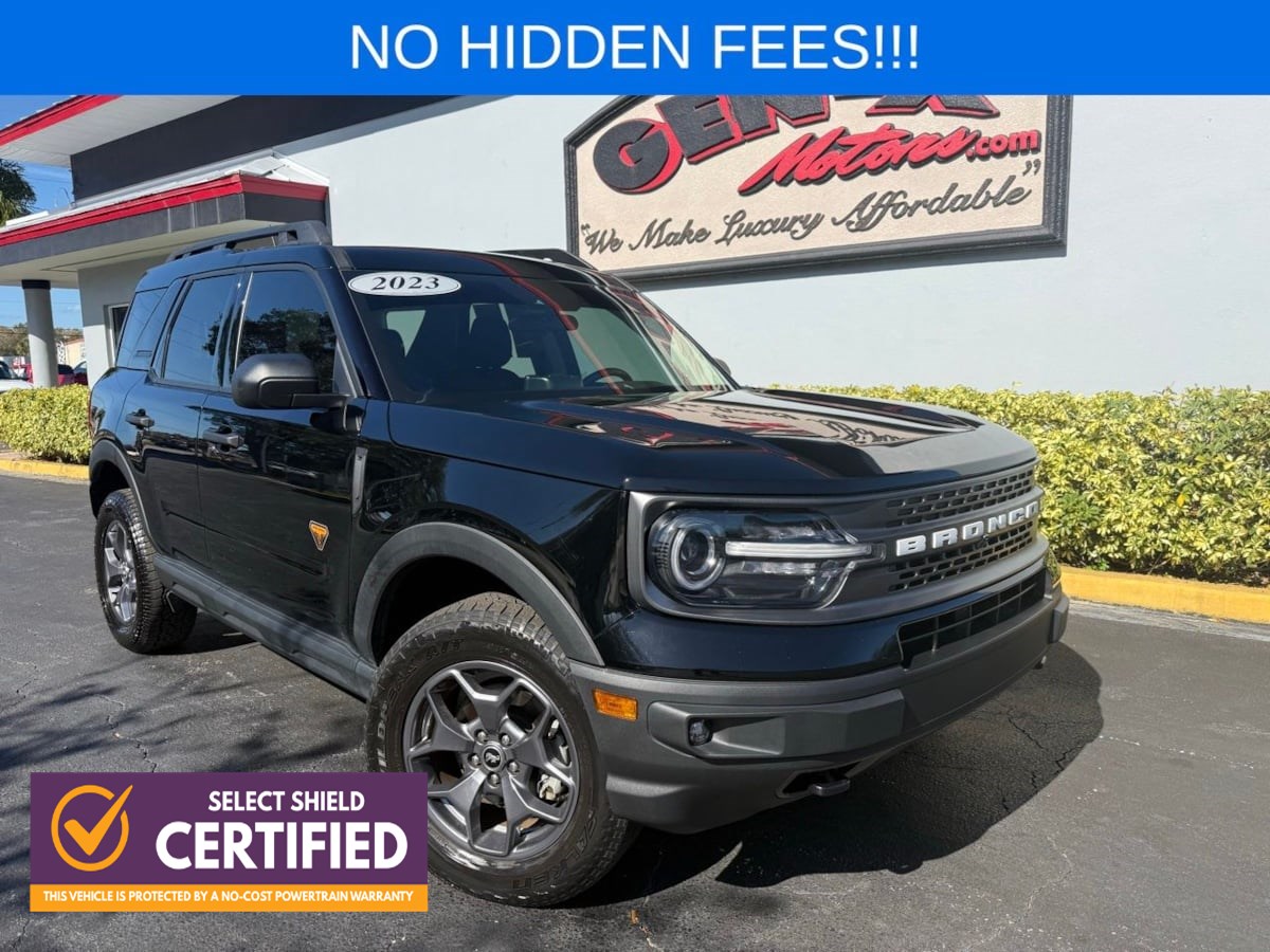 You can conquer the road with our powerful 2023 Ford Bronco Sport Badlands 4X4 that puts you on the fast track to extreme adventure in Shadow Black! Motivated by a TurboCharged 2.0 Liter EcoBoost 4 Cylinder providing 250hp to an 8 Speed Automatic transmission for rewarding strength. This Four Wheel Drive SUV is a fierce performer with Trail Control, an off-road suspension system, and enhanced terrain management, and it scores nearly 26mpg on the highway with a head-turning design. Daring and dynamic, our Bronco Sport features LED lighting, fog lamps, a Shadow Black safari-style roof, flip-up rear glass, white grille lettering, hatch-mounted flood lamps, and alloy wheels. Ready for adventure, our Badlands cabin brings bold comfort into the picture with heated cloth sport-contour front seats, eight-way power for the driver, a leather-wrapped steering wheel, automatic climate control, keyless access, and pushbutton ignition. An 8-inch touchscreen, Android Auto, Apple CarPlay, Bluetooth, enhanced voice recognition, a six-speaker sound system, and WiFi compatibility help you connect even in harsh conditions. Versatile cargo space adds welcome functionality! For a more intelligent approach to safety, Ford supplies a rearview camera, blind-spot monitoring, forward collision warning, automatic emergency braking, lane-keeping assistance, and more. Now gear up and get out there in our Bronco Sport Badlands today! Save this Page and Call for Availability. We Know You Will Enjoy Your Gen-X Motors Test Drive Towards Ownership! Good credit, bad credit, or even no credit - NO problem! Whether you have good credit or bad credit, we offer financing options for everyone with rates as low as 4.99%. Rest assured with our 7-day exchange policy, designed to give you peace of mind. If your new vehicle isnt the perfect fit, simply exchange it within seven days. Weve been in business since 1994 and are A+ rated with the Better Business Bureau and a Certified CarFax Dealer. All vehicles are Gen-X Motors certified. Select vehicles include a 3-month / 3,000-mile warranty. See dealer for more details. Gen-X Motors, (321)255-7800, 2075 N Wickham Rd, Melbourne, FL 32935. Coming from out of town? Turn your trip into a two-day beach getaway while picking up your new car! We offer free delivery within 250 miles and worldwide shipping. At Gen-X Motors, we make luxury affordable - come experience the new way to buy a pre-owned car.