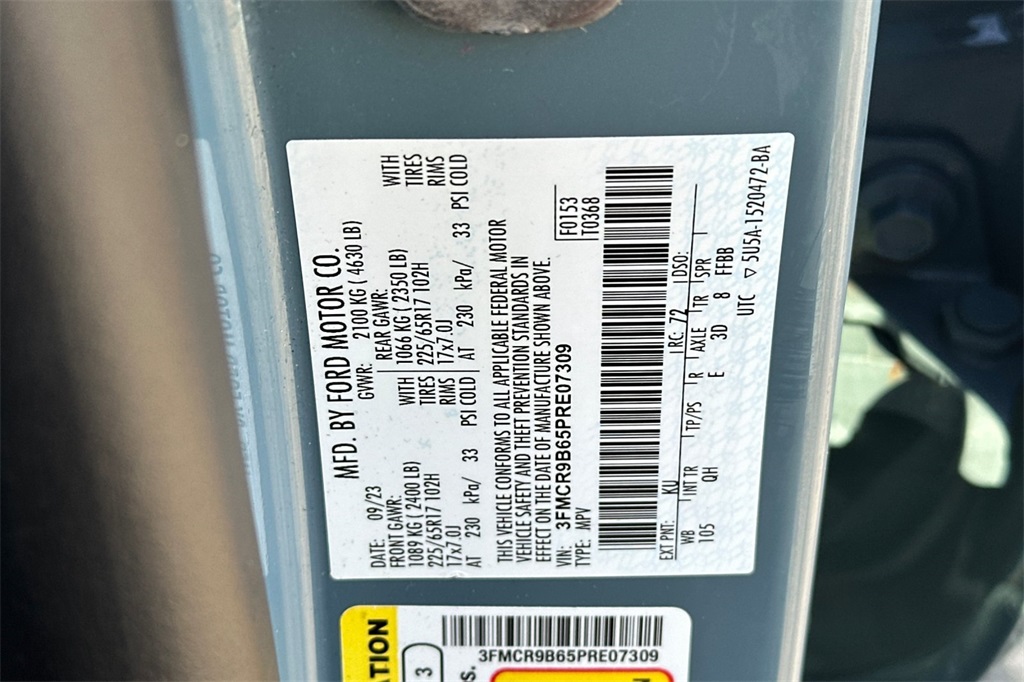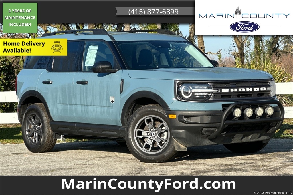 Take a look at this, recently traded in by a local customer, 2023 Ford Bronco Sport Big Bend 4x4. She is simply stunning as her Area 51 exterior perfectly compliments her ebony cloth trimmed interior. This gorgeous girl has had and passed an extensive 182 Multi-Point Inspection conducted by our factory certified technicians. All necessary services have been done for the appropriate mileage interval including:Completed vehicle service changing engine oil and filterReplacing the windshield wiper bladesReplacing the cabin air filterIn addition, this stunning vehicle comes equipped with two sets of keys, and is in great condition.Unique features to this vehicle include the optional convenience package which includes several features including heated front seats, a wireless charging pad, eight way power adjustable driver's seat, rear parking sensors and more!!!Buy with confidence as each of our Pre-Owned Vehicles come equipped with a 90-Day/3000 Mile warranty as well as Car Doc, our exclusive maintenance and membership program. The included Car Doc Program comes with 6 Complimentary Oil Changes and 6 Complimentary Tire Rotations for the first TWO years of car ownership. Also, this vehicle is available to upgrade to a 3 Year or 5 Year Car Doc along with other perks to give you peace of mind when it comes to your driving experience. It's just what the doctor ordered!Whether you have good credit, bad credit or no credit get pre-approved today at: https://www.marincountyford.com/financin g/get-pre-approved.htmThis vehicle WON'T last long at this price! We are a large used car super store serving North Bay Area, Santa Rosa, Petaluma, San Rafael and San Francisco. Located at 6995 Redwood Blvd, Novato, CA. Don't waste any time, call us NOW at (888)-556-8775. Please chat, email, text or call to verify any information in question and to schedule your product preview!All used vehicles have the following dealer installed accessories in addition to the advertised sales price.*CarDoc Connect GPS-6 year plan ($1,495)*Clear Shield Door Edge and Handle Protection ($795)*Wheel Locks ($299)*These Pre-Installed Items are OptionaL.
