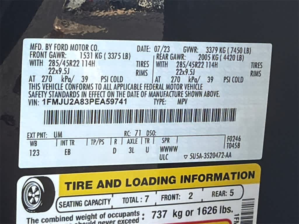 2023 Ford Expedition Limited<br><br>4WD.<br><br><br>Clean CARFAX.<br><br><br>Expedition Limited is nicely equipped with Equipment Group 302A High Package (Ebony Black Mesh Grille, Heavy-Duty Independent Suspension, Magnetic-Painted Power Deployable Running Boards, Panoramic Vista Roof, Power-Folding Sideview Mirrors w/Autofold, and Wheels: 22 12-Spoke Polished Aluminum), Heavy-Duty Trailer Tow Package (26mm Engine Radiator, 360-Degree Camera w/Trailer Reverse Guidance, Integrated Trailer Brake Controller, and Pro Trailer Backup Assist), 4WD, 12 Speakers, 360-Degree Camera w/Split View, 3rd row seats: split-bench, 4-Wheel Disc Brakes, ABS brakes, Adjustable pedals, Advanced Cargo Manager, Air Conditioning, Alloy wheels, AM/FM radio: SiriusXM with 360L, Auto High-beam Headlights, Auto-dimming door mirrors, Auto-dimming Rear-View mirror, Automatic temperature control, Brake assist, Bumpers: body-color, Compass, Connected Built-In Navigation, Delay-off headlights, Driver door bin, Driver vanity mirror, Dual front impact airbags, Dual front side impact airbags, Electronic Stability Control, Emergency communication system: SYNC 4 911 Assist, Exterior Parking Camera Rear, Four wheel independent suspension, Front anti-roll bar, Front Bucket Seats, Front Center Armrest, Front dual zone A/C, Front fog lights, Front License Plate Bracket, Front reading lights, Fully automatic headlights, Garage door transmitter, Heated & Ventilated Leather Front Captains Chairs, Heated door mirrors, Heated front seats, Heated rear seats, Heated steering wheel, Illuminated entry, Leather steering wheel, Low tire pressure warning, Memory seat, Navigation system: Connected Navigation, Occupant sensing airbag, Outside temperature display, Overhead airbag, Overhead console, Panic alarm, Passenger door bin, Passenger vanity mirror, Pedal memory, Power door mirrors, Power driver seat, Power Liftgate, Power moonroof, Power passenger seat, Power steering, Power windows, Radio data system, Radio: B&O Sound System by Bang & Olufsen, Rain sensing wipers, Rear air conditioning, Rear anti-roll bar, Rear reading lights, Rear window defroster, Rear window wiper, Reclining 3rd row seat, Remote keyless entry, Reverse Brake Assist, Second Row Power Windows Removal, Security system, SiriusXM w/360L, Speed control, Speed-sensing steering, Speed-Sensitive Wipers, Split folding rear seat, Spoiler, Steering wheel memory, Steering wheel mounted audio controls, SYNC 4 w/Enhanced Voice Recognition, Tachometer, Telescoping steering wheel, Tilt steering wheel, Traction control, Trip computer, Turn signal indicator mirrors, Variably intermittent wipers, Ventilated front seats, Voltmeter, and Wheels: 20 Bright Machined Aluminum.