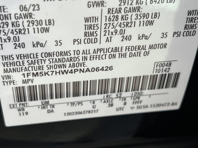 RECALL NOTICE: Some vehicles offered for sale may be subject to unrepaired manufacturer safety recalls. To determine the recall status of a vehicle, visit https://www.nhtsa.gov/recalls.CARFAX One-Owner. Clean CARFAX. Black Metallic 2023 Ford Explorer Platinum RWD 10-Speed Automatic 3.3L Hybrid Explorer Platinum, 4D Sport Utility, 3.3L Hybrid, 10-Speed Automatic, RWD, Black Metallic, Light Sandstone Leather, 10.1 LCD Capacitive Portrait Touchscreen, 12 Speakers, 2 Additional Speakers, 2nd Row 35/30/35 Bench w/E-Z Entry & Armrest, 3.58 Non-Limited-Slip Rear Axle Ratio, 3rd row seats: bench, 4-Wheel Disc Brakes, 4G LTE Wi-Fi Hotspot Credit, ABS brakes, Air Conditioning, Alloy wheels, AM/FM radio: SiriusXM, Auto High-beam Headlights, Auto-dimming door mirrors, Auto-dimming Rear-View mirror, Automatic temperature control, Brake assist, Bumpers: body-color, Compass, Delay-off headlights, Driver door bin, Driver vanity mirror, Dual front impact airbags, Dual front side impact airbags, Electronic Stability Control, Emergency communication system: SYNC 3 911 Assist, Exterior Parking Camera Rear, FordPass Connect, Four wheel independent suspension, Front anti-roll bar, Front Bucket Seats, Front Center Armrest, Front dual zone A/C, Front fog lights, Front License Plate Bracket, Front reading lights, Fully automatic headlights, Garage door transmitter, Genuine wood dashboard insert, Heated door mirrors, Heated front seats, Heated rear seats, Heated steering wheel, Hybrid Equipment Group 600A, Illuminated entry, Knee airbag, Leather Htd/Ventilated Sport Captain's Chairs, Leather steering wheel, Low tire pressure warning, Memory seat, Navigation System, Occupant sensing airbag, Outside temperature display, Overhead airbag, Overhead console, Panic alarm, Passenger door bin, Passenger vanity mirror, Power door mirrors, Power driver seat, Power Liftgate, Power passenger seat, Power steering, Power windows, Radio data system, Radio: B&O Sound System by Bang & Olufsen, Rain sensing wipers, Rear air conditioning, Rear anti-roll bar, Rear reading lights, Rear window defroster, Rear window wiper, Remote keyless entry, Roof rack: rails only, Security system, Speed control, Speed-sensing steering, Speed-Sensitive Wipers, Split folding rear seat, Spoiler, Steering wheel memory, Steering wheel mounted audio controls, SYNC 3 Communications & Entertainment System, SYNC 3/Apple CarPlay/Android Auto, Tachometer, Technology Package, Telescoping steering wheel, Tilt steering wheel, Traction control, Trip computer, Turn signal indicator mirrors, Variably intermittent wipers, Ventilated front seats, Voice-Activated Touchscreen Navigation System, Wheels: 21 Bright Machined-Face Aluminum.25/26 City/Highway MPG