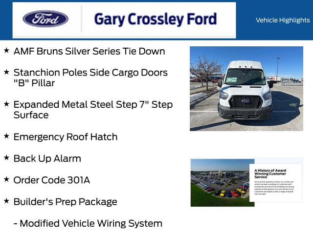 Ford Transit-350 2023 Oxford White $10,340 off MSRP Driverge Vehicle Innovations Smartfloor Base Package, 8 Rail Smartfloor, (2) Smartfloor Seats with 156mm Spacer, (5) Shoulder Mounts, Altro Floor Covering, 5lb. Fire Extinguisher, Certification Labels, Braun Century Rear Door Lift, AMF Bruns Silver Series Tie Down, Stanchion Poles Side Cargo Doors B Pillar, Expanded Metal Steel Step 7 Step Surface, Emergency Roof Hatch, Back Up Alarm, 2-Passenger Seats w/Add. Rear Seat Attachment Points, 4-Wheel Disc Brakes, 4.10 Limited-Slip Axle Ratio, 8 Speakers (4 Front/4 Rear), Air Conditioning, AM/FM Stereo, Auto High-beam Headlights, Back Up Alarm, Builder's Prep Package, Driver door bin, Driver vanity mirror, Dual AGM Batteries (70 Amp-hr Each), Modified Vehicle Wiring System, Order Code 301A, Panic alarm, Power windows, Tachometer, Tilt steering wheel, Wheels: 16 Heavy Duty Silver Steel, Wi-Fi 4G LTE Hotspot Delete. 3.5L V6 Flex Fuel RWD 10-Speed Automatic with Overdrive Passenger Van XLOnline price is competitive in the market but not always our best deal! New Fords have a 3 year 36,000-mile bumper to bumper warranty, 5-year 60,000 powertrain warranty, and a 5-year 60,000 roadside assistance. Call 816-781-4844! We are located at the intersection of I-35 and 152 hwy in Liberty Missouri.Come Experience the Crossley Difference! Although every reasonable effort has been made to ensure the accuracy of the information contained on this site, absolute accuracy cannot be guaranteed. Specifications, features, safety and warranty data are based on what is available as standard specs/features per trim level, for the designated model-year, and may not apply to vehicles with added packages or options. See dealer for written warranty information. Dealer makes no guarantees or warranties, either expressly or implied, with respect to the accuracy of any data listed on this page which was obtained from third party sources. All vehicles are subject to prior sale. Prices include all eligible factory rebates to dealer. Prices do not include upfits, plows, or other accessories. Price does not include applicable tax, title, license, processing and/or documentation fees, and any emissions testing charges. Documetations fees of $565.38 will be applied to purchase. Price and availability subject to change. Manufacturer's Suggested Retail Price (MSRP) is listed for customer information and customer comparison purposes only, and the actual sales price may vary depending on changing market conditions and other factors. Any information contained on this page should be used for informational purposes only. All vehicles may not be physically located at this dealership but may be available for delivery through this location. Please contact the dealership for more specific information.