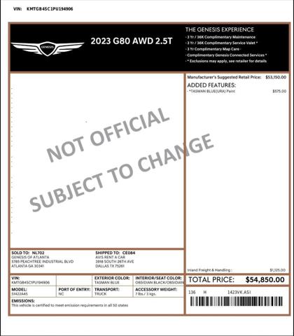 2023 Genesis G80 2.5T