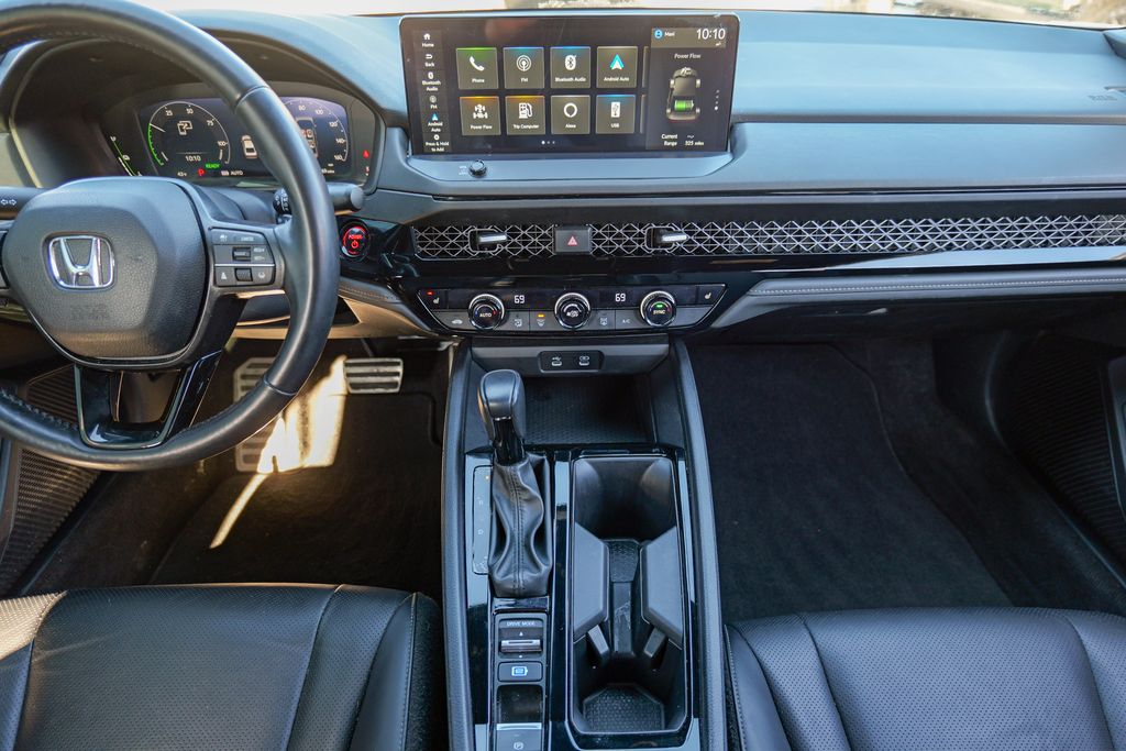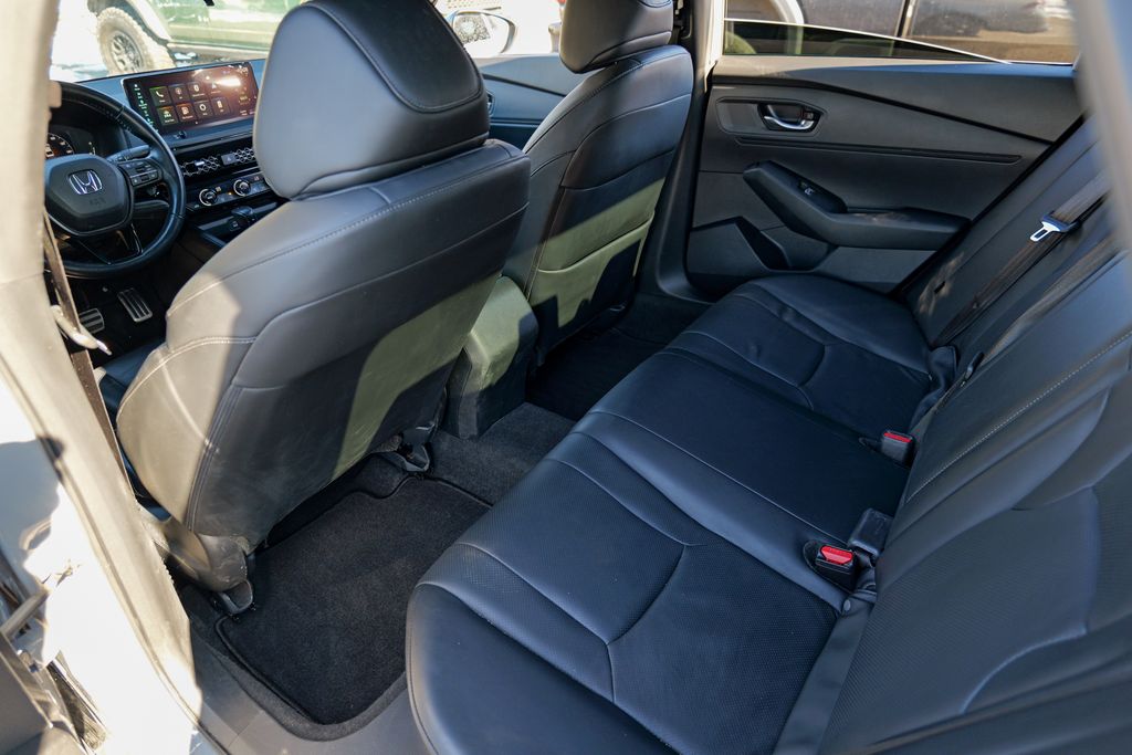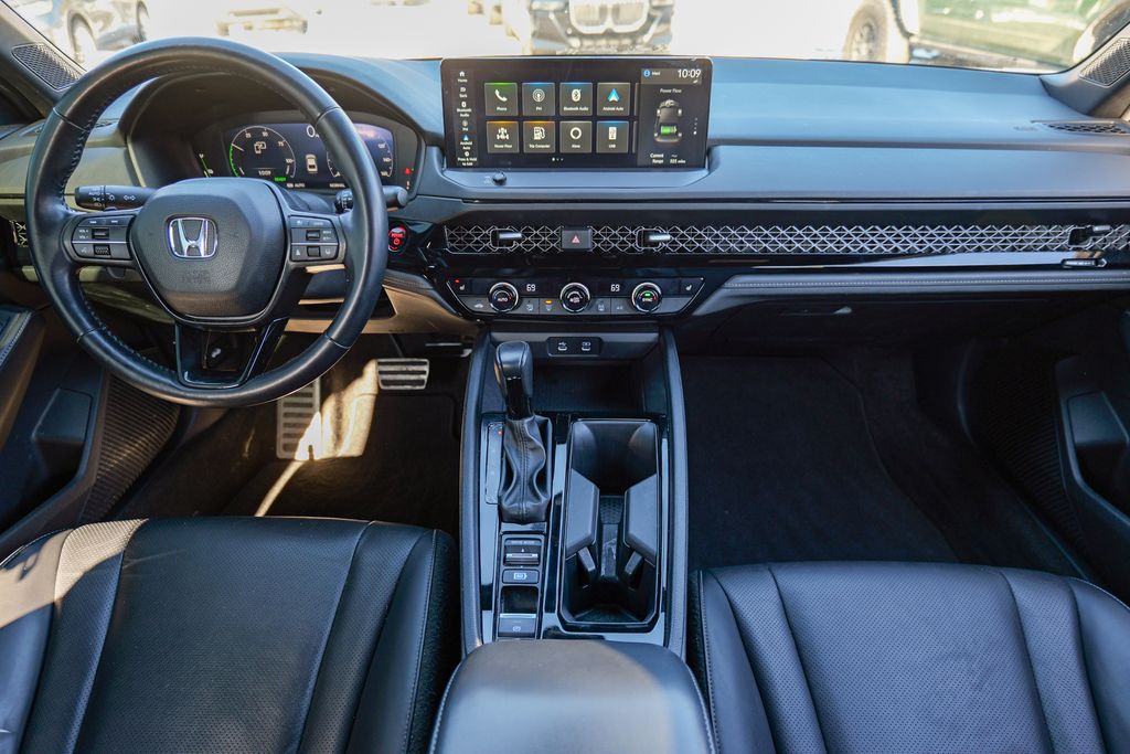 2023 Honda Accord Hybrid Sport-L Crystal Black Pearl Accord Hybrid Sport-L, 4D Sedan, 2.0L 16V DOHC, eCVT, FWD, Crystal Black Pearl, Gray Leather, 8 Speakers, Adaptive Cruise Control: Adaptive Cruise Control (ACC) with Low-Speed Follow, AM/FM radio, Apple CarPlay/Android Auto, Auto High-beam Headlights, Automatic temperature control, Brake assist, Electronic Stability Control, Exterior Parking Camera Rear, Four wheel independent suspension, Front dual zone A/C, Fully automatic headlights, Heated Front Bucket Seats, Lane departure: Lane Keeping Assist System (LKAS) active, Leather-Trimmed Seat Trim, Memory seat, Power door mirrors, Power moonroof, Power passenger seat, Radio data system, Radio: 180-Watt Audio System, Remote keyless entry, Speed-Sensitive Wipers, Steering wheel mounted audio controls, Wheels: 19 x 8.5J Matte Berlina Black.Preowned vehicle pricing includes a dealer trade-in rebate of $2495. Customer must trade-in a 2015 or newer vehicle in order to qualify. See dealer for details.