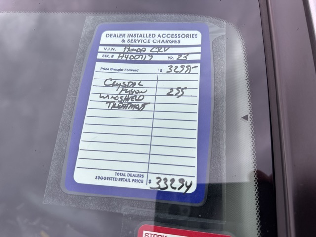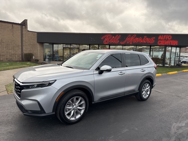 2023 Honda CR-V EX-L 1.5L I4 DOHC 16V AWD CVTOdometer is 17960 miles below market average!ONE OWNER, LOCAL TRADE, FACTORY WARRANTY REMAINING, CARFAX ACCIDENT FREE, CR-V EX-L, 4D Sport Utility, 1.5L I4 DOHC 16V, CVT, AWD, Lunar Silver Metallic, Black w/Leather Seat Trim.**AT BILL MARINE AUTO CENTER - WE ONLY ADVERTISE PRICES THAT EVERYONE QUALIFIES FOR!! - IT'S A BETTER WAY TO BUY YOUR VEHICLE - IT'S THE BILL MARINE WAY!! ** **PLEASE SEE DEALER FOR DETAILS. CR-V EX-L, 4D Sport Utility, 1.5L I4 DOHC 16V, CVT, AWD, Lunar Silver Metallic, Black w/Leather Seat Trim, 4-Wheel Disc Brakes, 5.64 Axle Ratio, 8 Speakers, ABS brakes, Adaptive Cruise Control: Adaptive Cruise Control (ACC) with Low-Speed Follow, Air Conditioning, Alloy wheels, AM/FM radio: SiriusXM, Auto High-beam Headlights, Auto-dimming Rear-View mirror, Automatic temperature control, Brake assist, Bumpers: body-color, Compass, Delay-off headlights, Driver door bin, Driver vanity mirror, Dual front impact airbags, Dual front side impact airbags, Electronic Stability Control, Exterior Parking Camera Rear, Four wheel independent suspension, Front anti-roll bar, Front Bucket Seats, Front Center Armrest, Front dual zone A/C, Front reading lights, Fully automatic headlights, Heated door mirrors, Heated Front Bucket Seats, Heated front seats, Illuminated entry, Knee airbag, Leather Seat Trim, Leather Shift Knob, Leather steering wheel, Low tire pressure warning, Memory seat, Occupant sensing airbag, Outside temperature display, Overhead airbag, Overhead console, Panic alarm, Passenger door bin, Passenger vanity mirror, Power door mirrors, Power driver seat, Power Liftgate, Power moonroof, Power passenger seat, Power steering, Power windows, Radio data system, Radio: 320-Watt AM/FM/HD/SiriusXM Audio System, Rear anti-roll bar, Rear reading lights, Rear seat center armrest, Rear side impact airbag, Rear window defroster, Rear window wiper, Remote keyless entry, Security system, Speed control, Speed-sensing steering, Speed-Sensitive Wipers, Split folding rear seat, Spoiler, Steering wheel mounted audio controls, Tachometer, Telescoping steering wheel, Tilt steering wheel, Traction control, Trip computer, Turn signal indicator mirrors, Variably intermittent wipers, Wheels: 18 Sparkle Silver Metallic, and Wireless Apple CarPlay/Wireless Android Auto.