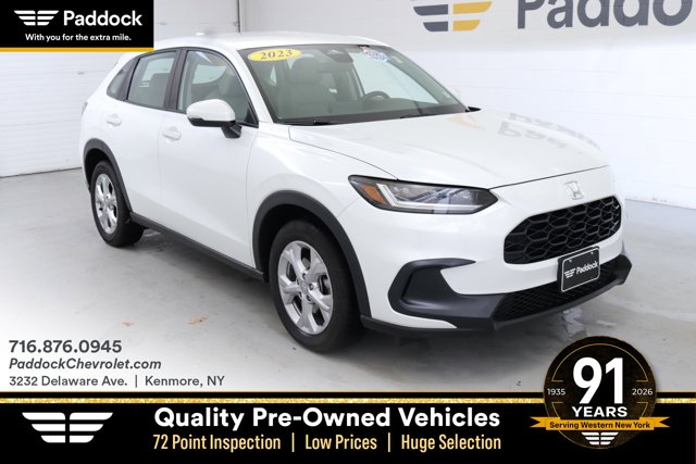 CARFAX One-Owner. Paddock Chevrolet pays top dollar for any vehicle in our market. We need your car! 4 Speakers, 4-Wheel Disc Brakes, 5.436 Axle Ratio, ABS brakes, Adaptive Cruise Control: Adaptive Cruise Control (ACC) with Low-Speed Follow, Air Conditioning, Alloy wheels, AM/FM radio, Apple CarPlay/Android Auto, Auto High-beam Headlights, Automatic temperature control, Back Up Camera, Brake assist, Bumpers: body-color, Cloth Seat Trim, Delay-off headlights, Driver door bin, Driver vanity mirror, Dual front impact airbags, Dual front side impact airbags, Electronic Stability Control, Emergency communication system: HondaLink, Four wheel independent suspension, Front anti-roll bar, Front Bucket Seats, Front Center Armrest, Front reading lights, Fully automatic headlights, Illuminated entry, Knee airbag, Low tire pressure warning, Occupant sensing airbag, Outside temperature display, Overhead airbag, Panic alarm, Passenger door bin, Passenger vanity mirror, Power door mirrors, Power steering, Power windows, Radio data system, Radio: 180-Watt Audio System w/4 Speakers, Rear anti-roll bar, Rear reading lights, Rear side impact airbag, Rear window defroster, Rear window wiper, Remote keyless entry, Security system, Speed control, Speed-sensing steering, Split folding rear seat, Spoiler, Steering wheel mounted audio controls, Tachometer, Telescoping steering wheel, Tilt steering wheel, Traction control, Trip computer, Variably intermittent wipers, and Wheels: 17 Silver Painted Alloy. 2023 Honda HR-V LXProudly Serving Western New York for 90 Years. Paddock Chevrolet thanks you for giving us the opportunity to show you this vehicle.