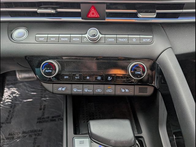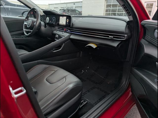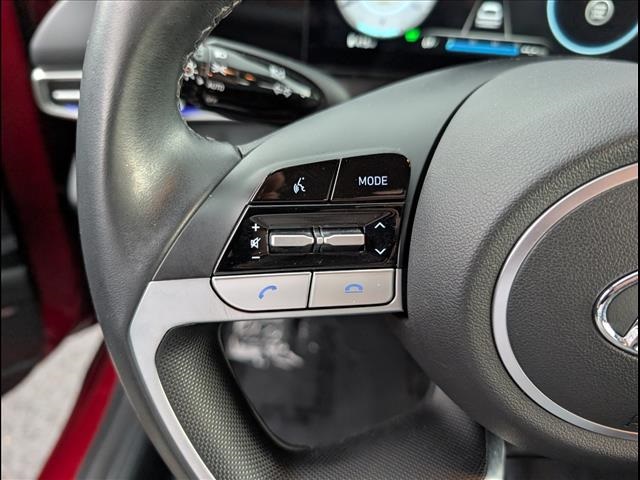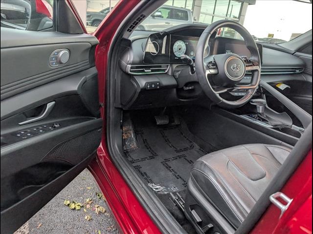 CARFAX One-Owner. Odometer is 27131 miles below market average!Scarlet Red Pearl 2023 Hyundai Elantra Hybrid 4D Sedan Limited FWD 6-Speed Dual Clutch I4I4, 17 x 7.0J Alloy Wheels, 4-Wheel Disc Brakes, 8 Speakers, ABS brakes, Air Conditioning, Alloy wheels, AM/FM radio: SiriusXM, Apple CarPlay & Android Auto, Auto High-beam Headlights, Auto-dimming Rear-View mirror, Automatic temperature control, Brake assist, Bumpers: body-color, Cargo Block, Cargo Net, Cargo Package, Carpeted Floor Mats, Delay-off headlights, Driver door bin, Driver vanity mirror, Dual front impact airbags, Dual front side impact airbags, Electronic Stability Control, Emergency communication system: Blue Link Connected Car Service (3-year complimentary subscription), Exterior Parking Camera Rear, Front anti-roll bar, Front Bucket Seats, Front Center Armrest, Front dual zone A/C, Front reading lights, Front wheel independent suspension, Fully automatic headlights, Heated & Ventilated Front Bucket Seats, Heated door mirrors, Heated front seats, Illuminated entry, Leather Seat Trim, Leather Shift Knob, Low tire pressure warning, Memory seat, Navigation System, Occupant sensing airbag, Option Group 01, Outside temperature display, Overhead airbag, Overhead console, Panic alarm, Passenger door bin, Passenger vanity mirror, Power door mirrors, Power driver seat, Power moonroof, Power steering, Power windows, Radio: AM/FM/HD/SiriusXM Display Audio, Rear seat center armrest, Rear window defroster, Remote keyless entry, Reversible Cargo Tray, Security system, Speed control, Speed-sensing steering, Split folding rear seat, Steering wheel mounted audio controls, Tachometer, Telescoping steering wheel, Tilt steering wheel, Traction control, Trip computer, Turn signal indicator mirrors, Variably intermittent wipers, Ventilated front seats, I4.49/52 City/Highway MPG