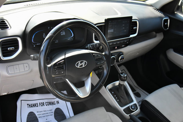 Scores 33 Highway MPG and 29 City MPG! This Hyundai Venue delivers a Regular Unleaded I-4 1.6 L/98 engine powering this Variable transmission. WHEEL LOCKS, SHIMMERING SILVER, REAR BUMPER APPLIQUE.*This Hyundai Venue Comes Equipped with These Options *OPTION GROUP 01 -inc: standard equipment, MUDGUARDS, GRAY, CLOTH SEAT TRIM, FIRST AID KIT, CARPETED FLOOR MATS, Wheels: 6.5J x 17 Alloy, Variable Intermittent Wipers, Trip Computer, Transmission: Intelligent Variable (IVT) -inc: SHIFTRONIC, drive mode select (normal, sport, snow), hill start assist control and ignition key interlock system, Transmission w/Driver Selectable Mode and SHIFTRONIC Sequential Shift Control.