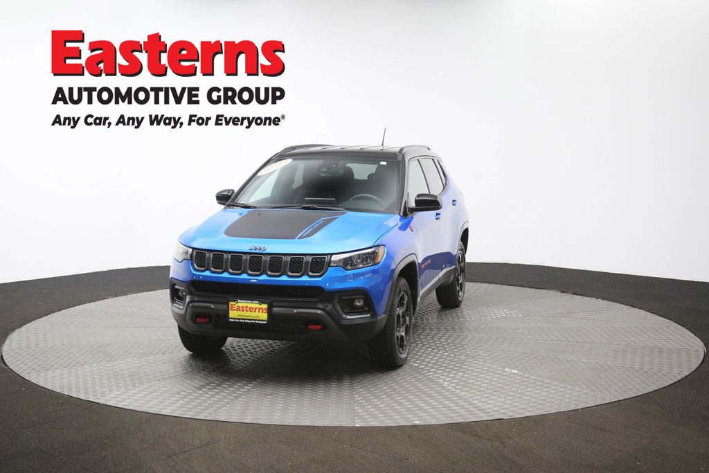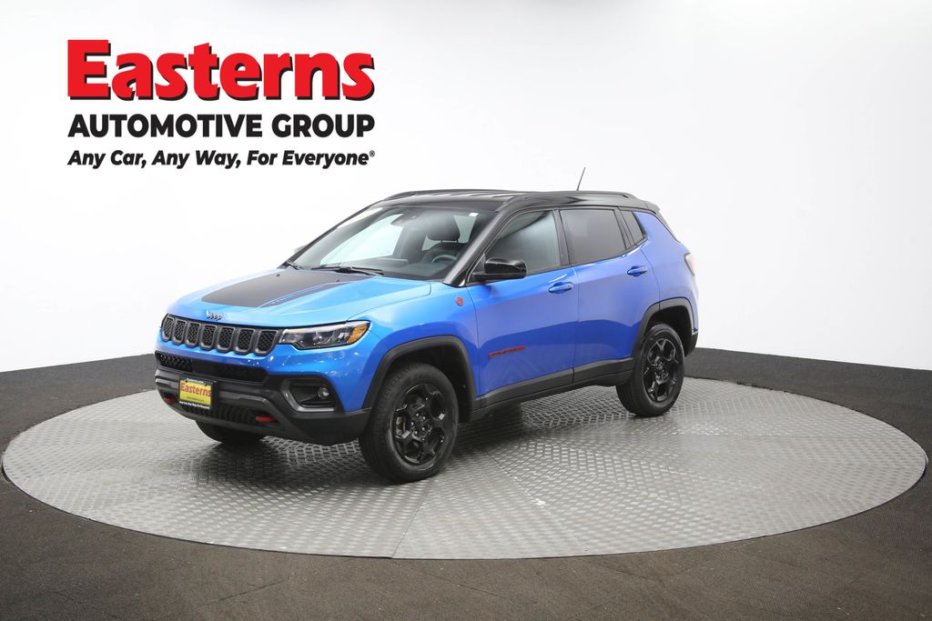 2023 Jeep Compass Trailhawk Laser Blue Pearlcoat 4WD 8-Speed Automatic 4WD, Auto-dimming Rear-View mirror, Automatic temperature control, Brake assist, Front dual zone A/C, Front fog lights, Heated door mirrors, ParkView Rear Back-Up Camera, Power door mirrors, Quick Order Package 29E, Rain sensing wipers, Rear window defroster, Rear window wiper, Remote keyless entry, Speed control, Split folding rear seat, Wheels: 17 x 6.5 Painted Black Aluminum.Odometer is 2811 miles below market average! Clean CARFAX. 24/32 City/Highway MPGEasterns Automotive Group has 11 locations that has sold thousands of used cars in the Maryland, DC, and Virginia communities for over the past 35 years. Every Easterns vehicle has passed a rigorous Multi-Point Quality Certification, so you can buy with confidence. Start your purchase online to save time by visiting Easterns.com... Any Car, Any Way, For Everyone.