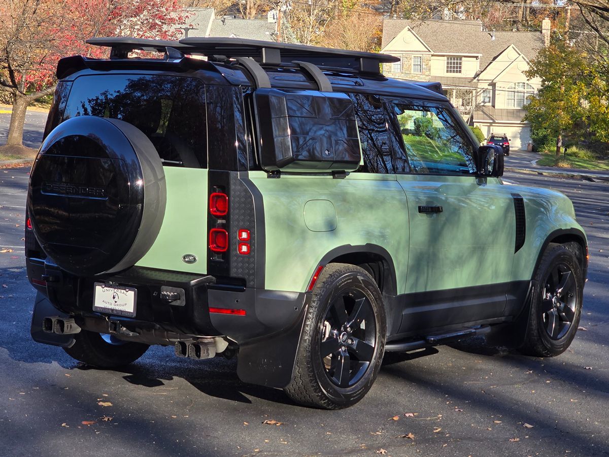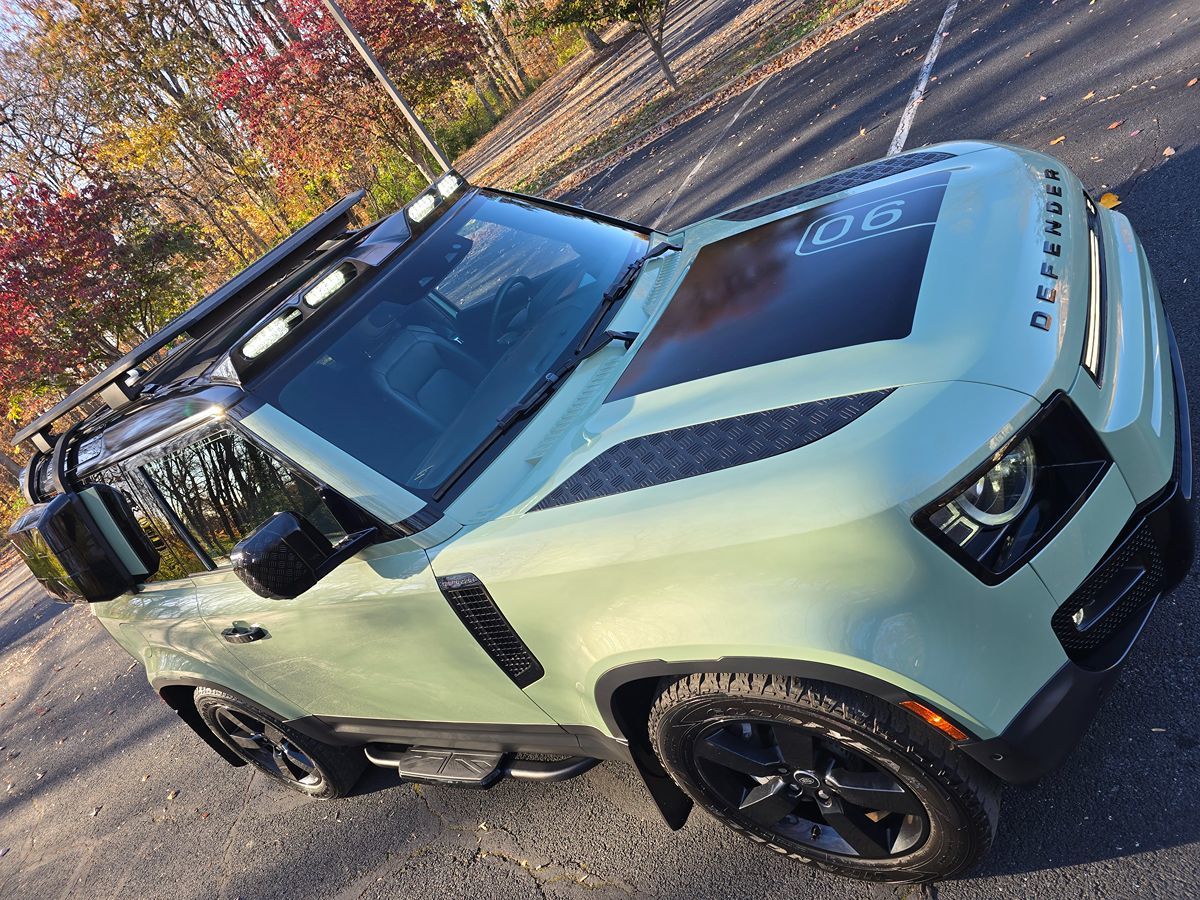 Exclusive Grasmere Green paintwork sets our rare One Owner 2023 Land Rover Defender 75th Limited Edition 2 Door 4WD apart from standard models. Motivated by a mild-Hybrid Turbo & SuperCharged 3.0 Liter 6 Cylinder generating 395hp tethered to an 8 Speed Automatic transmission. Tackling your day is a joy in this two-door, Four Wheel Drive SUV as you attain up to 22mpg on the highway and show off its distinctive styling highlighted by a black roof, a panoramic sunroof, roof rack, ladder, running boards, LED lighting, and bold gloss black wheels. Step inside our Defender 75th Limited Edition and find yourself in a haven of tranquility and comfort. Relax in heated/cooled power front seats, grip the heated multi-function steering wheel, and get ready to be pampered by niceties such as keyless entry/ignition, heated rear seats, an inductive charging pad, a center console refrigerator, and three-zone automatic climate control. Wherever you go, our Land Rover keeps you seamlessly connected and entertained with a full-color infotainment system providing navigation, Bluetooth, Android Auto, Apple CarPlay, and Meridian surround sound. In addition, Land Rover rewards you with exceptional peace of mind. Technologies such as adaptive cruise control, blind-spot monitoring with rear cross-traffic alert, lane-keeping assist, traffic sign recognition, a backup camera with surround view, and a heads-up display are a few elements designed to help keep you safe. Our Defender 75th Limited Edition celebrates the company's 75th anniversary in style! Save this Page and Call for Availability. We Know You Will Enjoy Your Test Drive Towards Ownership! VERY RARE 75TH LIMITED EDITION ONE OF A KIND $94,560 ORIGINAL MSRP $2,995 WHEEL AND ROOF PACKAGE $1,995 XYLON X 4 PACK TONS OF EXTRAS 1-OWNER CLEAN CARFAX FACTORY WARRANTY REMAINING PROFESSIONALLY DETAILED 105 POINT MARYLAND STATE INSPECTION