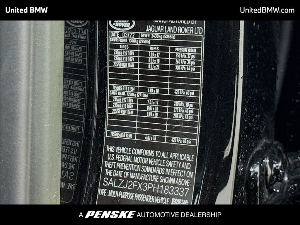 Priced below KBB Fair Purchase Price! CARFAX One-Owner.Santorini Black 2023 Land Rover Range Rover Evoque S AWD 9-Speed Automatic 2.0L TurbochargedThis Range Rover Evoque S is nicely equipped with Blind Spot Assist Package (Blind Spot Assist and Rear Traffic Monitor), Convenience Pack (Activity Key, Power Adjustable Steering Column, and Powered Gesture Tailgate), 12-Way Heated Front Driver Bucket Seats, 4-Wheel Disc Brakes, 4.544 Axle Ratio, 6 Speakers, ABS brakes, Air Conditioning, Alloy wheels, AM/FM radio: SiriusXM, Apple CarPlay & Android Auto, Auto-dimming door mirrors, Auto-dimming Rear-View mirror, Automatic temperature control, Black Exterior Pack, Brake assist, Bumpers: body-color, Compass, Delay-off headlights, Driver door bin, Driver vanity mirror, Dual front impact airbags, Dual front side impact airbags, DuoLeather Seat Trim, Electronic Stability Control, Emergency communication system: InControl Protect, Exterior Parking Camera Rear, Fixed Panoramic Roof, Four wheel independent suspension, Front anti-roll bar, Front Bucket Seats, Front Center Armrest, Front dual zone A/C, Front Fog Lights, Front reading lights, Fully automatic headlights, Heated door mirrors, Heated front seats, Illuminated entry, Leather Shift Knob, Low tire pressure warning, Navigation system: InControl Navigation Pro, Occupant sensing airbag, Outside temperature display, Overhead airbag, Overhead console, Panic alarm, Passenger door bin, Passenger vanity mirror, Power door mirrors, Power driver seat, Power Liftgate, Power passenger seat, Power steering, Power windows, Radio data system, Radio: PIVI Pro w/10 Touchscreen, Rain sensing wipers, Rear anti-roll bar, Rear fog lights, Rear reading lights, Rear seat center armrest, Rear window defroster, Rear window wiper, Remote keyless entry, Security system, Speed control, Speed-sensing steering, Speed-Sensitive Wipers, Split folding rear seat, Spoiler, Steering wheel mounted audio controls, Tachometer, Telescoping steering wheel, Tilt steering wheel, Traction control, Trip computer, Turn signal indicator mirrors, Variably intermittent wipers, and Wheels: 18 Gloss Sparkle Silver (Style 5075)... Odometer is 758 miles below market average! 20/27 City/Highway MPGWHY BUY FROM US United BMW is proud to be the #1 volume BMW dealer in the Nation as well as the largest retailer in Penske Automotive Group. BMW of North America has awarded United BMW with it's SIXTH consecutive Center of Excellence Award! United BMW is the only BMW dealership in Georgia to win this prestigious award! It is the customer's sole responsibility to verify the existence and condition of any equipment listed. United BMW of Roswell is not responsible for misprints on prices or equipment. It is the customer's sole responsibility to verify features and options.