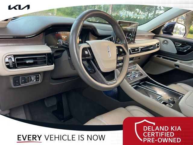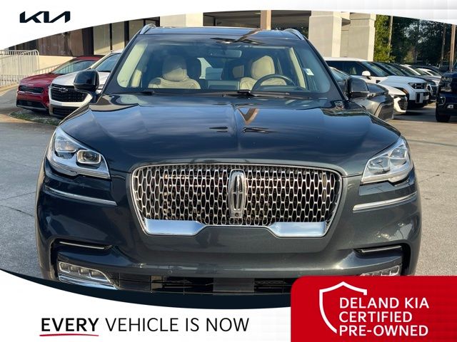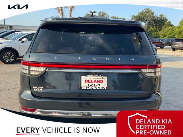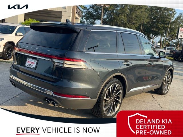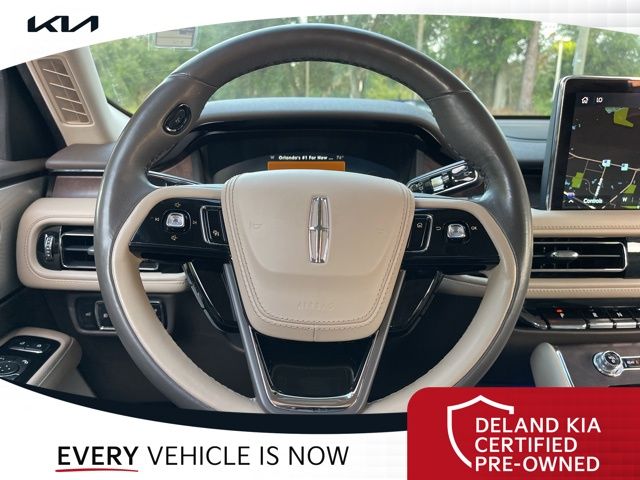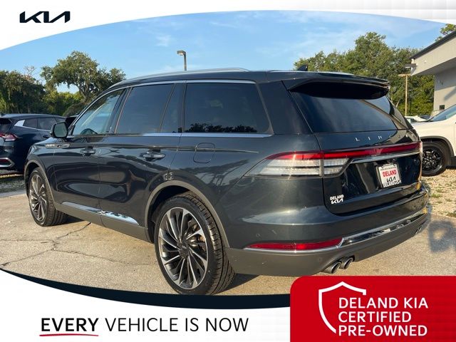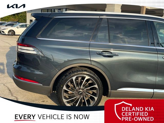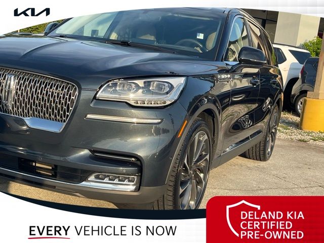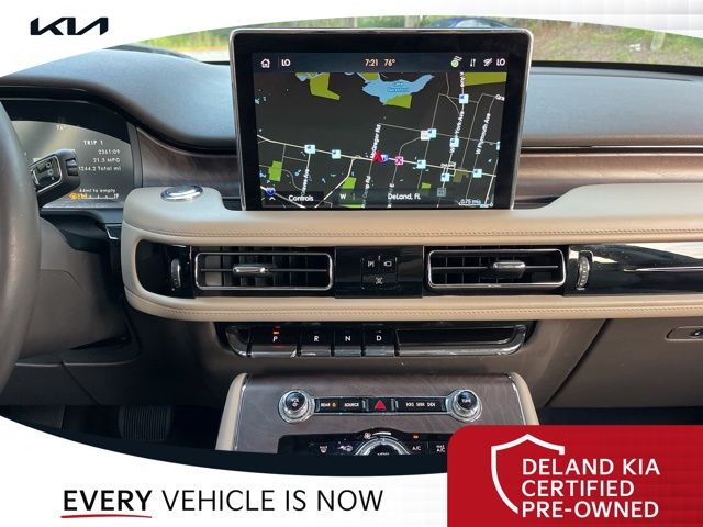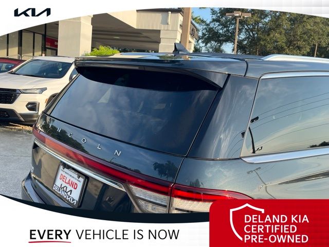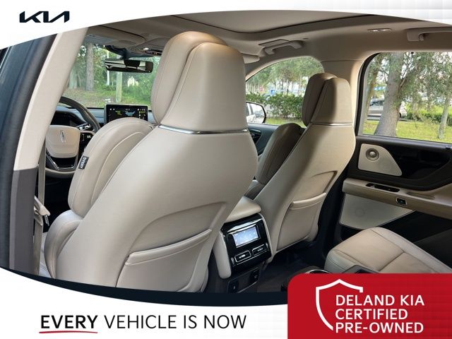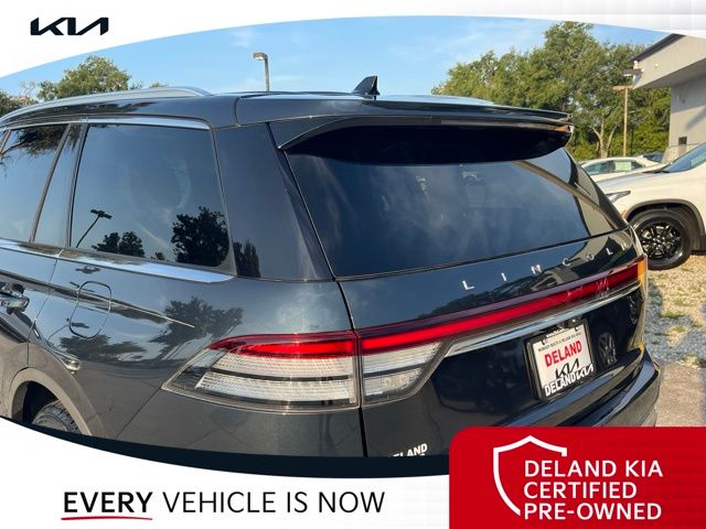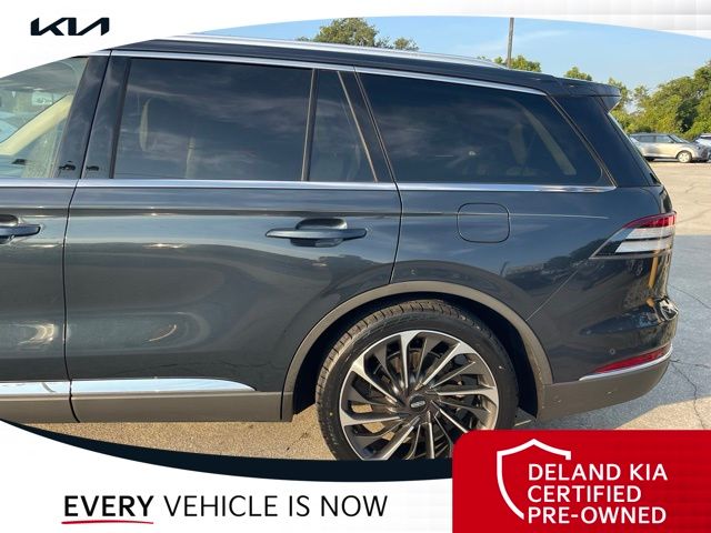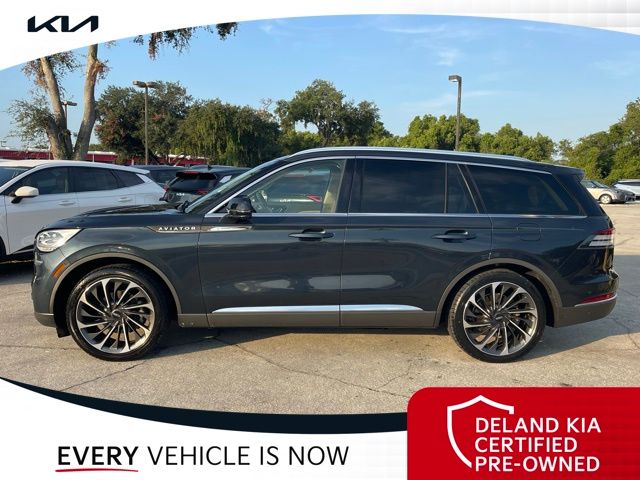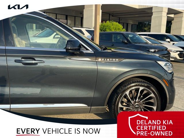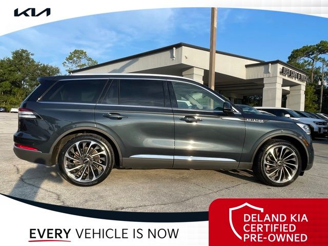 CARFAX One-Owner. Flight Blue Metallic Clearcoat 2023 Lincoln Aviator Reserve V60 MONEY DOWN AVAILABLE***, LIFETIME OIL CHANGES, CARFAX ACCIDENT FREE, NAVIGATION, Florida Driven, Backup Camera, Heated/Cooled Seats, Keyless Access w/Push Button Start, 3rd row seats: split-bench, Front dual zone A/C, Head-Up Display, Heated Steering Wheel, Memory seat, Power Liftgate, Power moonroof: Panoramic Vista Roof, Power passenger seat, Rain sensing wipers, Rear dual zone A/C.18/26 City/Highway MPGDeland Kia, We're Closer Than You Think!!!! Se habla Espanol!!Equipped with Elements Package Plus (Heated Steering Wheel, Auto Air Refresh, Auto Heated/Ventilated Driver & Passenger Seats, Heated VisioBlade Wipers, and Heated/Ventilated 2nd Row Outboard Seats), Equipment Group 201A (Head-Up Display and Phone As A Key), Illumination Package (Adaptive Pixel LED Headlamps, Illuminated Lincoln Star in Grille, and LED Fog Lamps), Lincoln Co-Pilot360 1.5 Plus (Active Park Assist 2.0, Evasive Steering Assist, Intelligent Adaptive Cruise Control, and Reverse Brake Assist), Luxury Package (30-Way Perfect Position Seats w/Active Motion, Radio: Revel Ultima 3D Audio System w/28 Speakers, and Rear Door Sunshades), 3rd row seats: split-bench, Front dual zone A/C, Memory seat, Power Liftgate, Power moonroof: Panoramic Vista Roof, Power passenger seat, Rain sensing wipers, Rear dual zone A/C, 14 Speakers, 3.58 Axle Ratio, 4-Wheel Disc Brakes, ABS brakes, Air Conditioning, Alloy wheels, AM/FM radio: SiriusXM, Audio memory, Auto High-beam Headlights, Auto-dimming door mirrors, Auto-dimming Rear-View mirror, Automatic temperature control, Brake assist, Bumpers: body-color, Compass, Delay-off headlights, Driver door bin, Driver vanity mirror, Dual front impact airbags, Dual front side impact airbags, Electronic Stability Control, Emergency communication system, Enhanced Security System Lite, Four wheel independent suspension, Front anti-roll bar, Front Bucket Seats, Front Center Armrest, Front reading lights, Full Rear Console, Fully automatic headlights, Garage door transmitter, Hands-Free Liftgate Delete, Heated door mirrors, Heated front seats, HVAC memory, Illuminated entry, Knee airbag, Leather steering wheel, Low tire pressure warning, Navigation System, Occupant sensing airbag, Outside temperature display, Overhead airbag, Overhead console, Panic alarm, Passenger door bin, Passenger vanity mirror, Power door mirrors, Power driver seat, Power steering, Power windows, Premium Lthr Heated/Ventilated Fnt Captain's Chairs, Radio data system, Radio: Revel AM/FM Audio System w/14 Speakers, Rear air conditioning, Rear anti-roll bar, Rear audio controls, Rear reading lights, Rear window defroster, Rear window wiper, Remote keyless entry, Security system, SiriusXM Radio, Speed control, Speed-Sensitive Wipers, Split folding rear seat, Spoiler, Steering wheel memory, Steering wheel mounted A/C controls, Steering wheel mounted audio controls, SYNC 3 Communication & Entertainment System, Tachometer, Telescoping steering wheel, Tilt steering wheel, Traction control, Trip computer, Turn signal indicator mirrors, Variably intermittent wipers, Wheels: 20 Bright-Machined Aluminum, and Wheels: 22 Bright-Machined Aluminum.