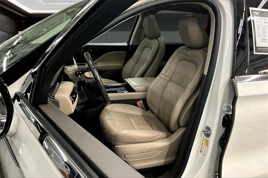 2023 Lincoln Aviator Reserve AWD CARFAX One-Owner Luxury 3-Row SUVExperience refined power and exceptional craftsmanship in this Pristine White Metallic Tri-Coat 2023 Lincoln Aviator Reserve. Equipped with All-Wheel Drive and a 10-Speed Automatic transmission, this luxury SUV is powered by a responsive 3.0L Twin-Turbocharged V6 engine, delivering confident performance and a smooth, quiet ride.Key FeaturesPremium Revel 14-Speaker Audio SystemSYNC 3 Communication & Entertainment System with SiriusXM RadioPanoramic Vista Roof with Power SunshadeHeated & Ventilated Front and Second-Row SeatsHeated Steering Wheel and Heated VisioBlade WipersAdaptive Pixel LED Headlamps and LED Fog Lamps22 Bright-Machined Aluminum WheelsAuto Air Refresh and Automatic 3-Zone Climate ControlLeather-Wrapped Steering Wheel and Premium Interior Finishes3rd Row Split-Bench Seating for up to seven passengersFull Rear Console for added comfort and storageTechnology & SafetyLincoln Co-Pilot360 1.5 Plus Driver Assistance SuiteIntelligent Adaptive Cruise ControlActive Park Assist 2.0Evasive Steering AssistHead-Up DisplayEnhanced Security System LitePhone As A Key convenience featureElectronic Stability Control and 4-Wheel Disc ABS BrakesRain-Sensing Wipers and Auto High-Beam HeadlightsHighlightsCARFAX One-OwnerMeticulously Maintained Clean Inside and OutLuxury Comfort, Innovative Technology, and Powerful V6 PerformanceWith its elegant design, advanced features, and premium craftsmanship, the 2023 Lincoln Aviator Reserve delivers a first-class driving experience every time youre behind the wheel.Fully serviced with a multi point inspection process ! Home of Live Market Pricing ! See why our Pre-Owned vehicles have the most competitive prices on the Internet. We offer a streamlined sales process, factory trained sales and service personnel, body shop and parts department. A good car, a great value and an outstanding dealership. That's the Crestmont Difference!www.crestmontcadillac.com***Please check vehicle to ensure accuracy of listed equipment***