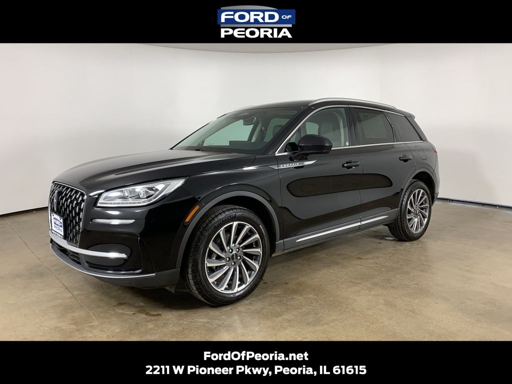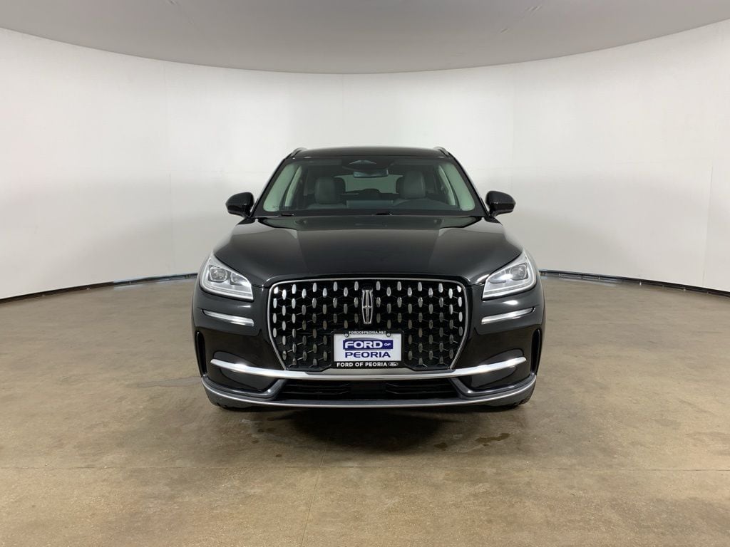 Infinite Black Metallic 2023 Lincoln Corsair Reserve AWD with Ebony/Truffle premium leather interior - available now at Ford of Peoria in Peoria, IL. This clean AutoCheck one-owner Lincoln Corsair Reserve delivers refined luxury, confident all-wheel-drive capability, and advanced technology, making it an excellent choice for drivers who want comfort, performance, and sophisticated design in a compact luxury SUV. Under the hood is a responsive 2.0-liter turbocharged GTDI 4-cylinder engine paired with an 8-speed automatic transmission, providing smooth acceleration and composed highway performance. Lincoln Drive Modes allow you to tailor the driving experience, while the intelligent AWD system enhances traction and stability in rain, snow, and changing Illinois road conditions. Performance and capability ? 2.0-liter turbocharged GTDI 4-cylinder engine delivers smooth, efficient power ? 8-speed automatic transmission for refined shifting ? Intelligent All-Wheel Drive enhances traction and confidence ? Lincoln Drive Modes adapt performance to road conditions ? Active grille shutters improve efficiency ? Quiet, composed ride with Active Noise Control Safety and driver assistance ? Lincoln Co-Pilot360 2.1 suite ? Pre-Collision Assist with Automatic Emergency Braking ? Blind Spot Information System with Cross-Traffic Alert ? Lane-Keeping System ? Adaptive Cruise Control with Stop-and-Go ? Rearview camera with reverse sensing system ? AdvanceTrac with Roll Stability Control Exterior features ? Infinite Black Metallic exterior with elegant Reserve styling ? LED headlamps and LED taillamps ? Dual chrome exhaust tips ? Power liftgate ? Heated, power-folding exterior mirrors ? Roof rack side rails ? Privacy glass Interior comfort and technology ? Ebony/Truffle premium leather-trimmed seating ? Heated power-adjustable front seats with lumbar support ? Ambient interior lighting ? Dual-zone automatic climate control ? SYNC 4 infotainment system ? 13.2-inch touchscreen display ? Voice-activated navigation ? Wireless Apple CarPlay and Android Auto ? Lincoln Connect with Wi-Fi hotspot capability ? Leather-wrapped steering wheel with audio and cruise controls Condition and ownership This Corsair Reserve is a clean AutoCheck one-owner vehicle and presents in excellent overall condition, offering a premium blend of luxury comfort, modern technology, and Lincoln craftsmanship. Why buy from Ford of Peoria ? Part of the Bob Loquercio Auto Group ? Transparent, no-pressure buying experience ? Knowledgeable sales and finance professionals ? Full-service sales, service, and parts facility Call Ford of Peoria today at 309-693-2525 or visit us at 2211 W Pioneer Parkway, Peoria, IL. Schedule your test drive and experience the refinement and confidence of this 2023 Lincoln Corsair Reserve AWD today.