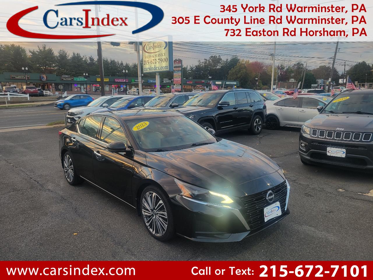 Get ready to turn heads in this sleek and stylish black 2023 Nissan Altima! This car is not just a mode of transportation, it's a statement - perfect for those who want to stand out on the road. With a carfax report available for your peace of mind, you can hit the streets with confidence knowing the history of this beauty.Equipped with {featureList}, this Nissan Altima is more than just looks - it's packed with functionality and convenience to make every drive a breeze. Whether you're cruising down the highway or navigating through city streets, this car handles like a dream. The spacious interior provides ample room for passengers and cargo, making it perfect for road trips or daily errands.Experience the joy of driving with this 2023 Nissan Altima - where style meets performance. Don't miss out on the opportunity to own this fantastic vehicle, complete with a detailed carfax report to ensure your peace of mind. Drive away in confidence and style today! We take pride in the quality of our cars. Every last one of our vehicles are guaranteed to pass state inspection and each are meticulously maintained during the short time they remain on the lot. Because we boast some of the lowest prices in the tri-state area our vehicles truly sell fast. Call us today to speak with a member of our experienced team of sales and finance specialists or click Apply For Credit to get started on the pre-approval process!To learn more about a specific vehicle or schedule a test drive at our County Line Rd location call (215) 672-7101 or visit us online at carsindex.com!Thank you for including CarsIndex in your purchasing process. We look forward to the opportunity to assist you with your next vehicle purchase!