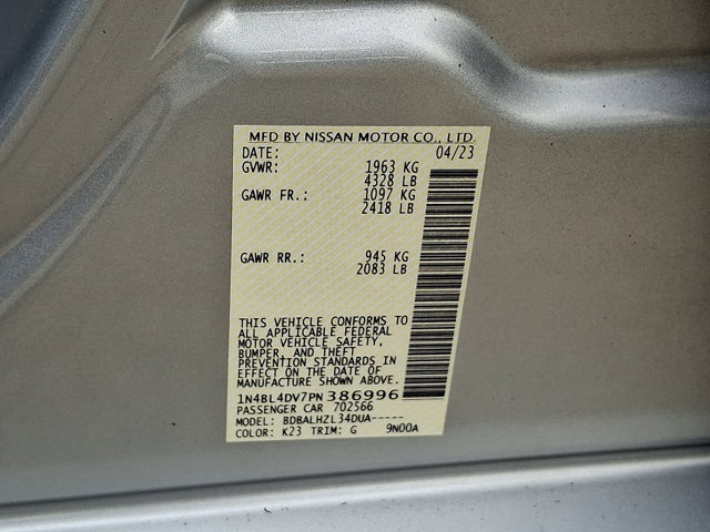 CARFAX 1-Owner! Value priced below the market average! This 2023 Nissan Altima 2.5 SV, has a great Brilliant Silver Metallic exterior, and a clean Charcoal interior! This model has many valuable options -Backup Camera -Bluetooth -Satellite Radio -Aux. Audio Input -High Intensity Headlights -Automatic Headlights -Front Wheel Drive -Remote Start -Security System -Parking Sensors -Parking Assist -Power Locks -Keyless Entry -Power Windows -Steering Wheel Controls -Cruise Control ContinuouslyVariable Transmission -Rear Bench Seats -Tire Pressure Monitors On top of that, it has many safety features -Brake Assist -Traction Control -Stability Control Save money at the pump, knowing this Nissan Altima gets 39.0/27.0 MPG! Call to confirm availability and schedule a no-obligation test drive! We are located at 550 Ridge Pike, Conshohocken, PA 19428.