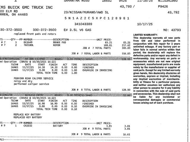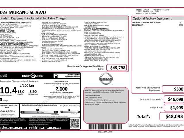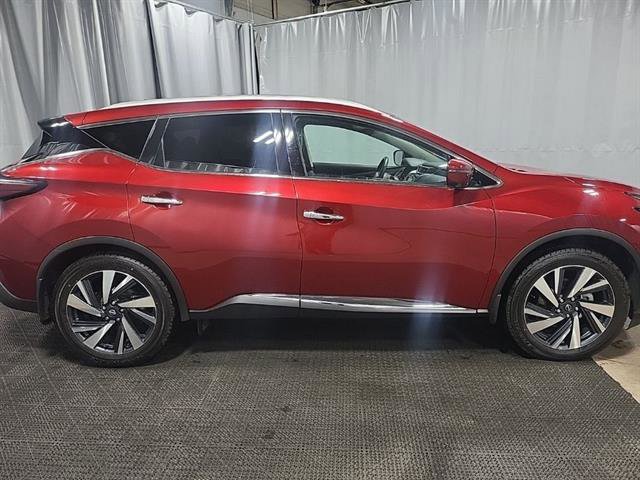 2023 Nissan Murano SL AWD - Scarlett Ember Premium SUV43k Miles Clean CARFAXExperience a higher level of driving in this Scarlett Ember 2023 Nissan Murano SL. Powered by Nissan's dependable 3.5L V6 engine and equipped with Intelligent All-Wheel Drive, this Murano provides a confident and smooth ride through every Ohio season. With its spacious leather-appointed interior and dual-panel panoramic moonroof, this SL trim delivers a near-luxury experience at an incredible value.Performance Mechanical3.5L DOHC 24-Valve V6 Engine: Delivers smooth, responsive acceleration for highway merging. Intelligent All-Wheel Drive (AWD): Constantly monitors road conditions to provide optimal grip in rain or snow. Xtronic CVT : Provides a seamless driving experience and optimized fuel economy. 20-Inch Alloy Wheels: Enhances the Murano's sleek, aggressive profile.Premium SL Interior TechnologyLeather-Appointed Seating: Featuring heated front and rear outboard seats for year-round comfort. Dual-Panel Panoramic Moonroof: Provides an open, airy feel for all passengers. Bose Premium Audio System: 11 speakers and a dual subwoofer for an immersive sound experience. NissanConnect with Navigation: Featuring an 8-inch color touchscreen, Apple CarPlay , and Android AutoT. Motion Activated Power Liftgate: Hands-free access to the cargo area when your hands are full. Remote Engine Start with Intelligent Climate Control: Get the cabin to the perfect temperature before you even get in.Safety Driver AssistanceIntelligent Around View Monitor: A 360-degree camera system that makes parking in tight spots effortless. Intelligent Cruise Control Traffic Sign Recognition: Helps manage your speed and awareness on long highway drives. Safety Shield 360: Includes Blind Spot Warning, Rear Cross Traffic Alert, Lane Departure Warning, and Automatic Emergency Braking. Front and Rear Parking Sensors: Added confidence for navigating busy driveways and parking lots.Why Buy This Murano at Sims Auto Park?Serving Warren, Austintown, and Hermitage PA, Sims Auto Park specializes in high-quality pre-owned vehicles. This 2023 Murano SL has been thoroughly inspected by our expert team to ensure it's ready for its next owner.Don't miss out on this high-feature SUV! Call 330-372-3500 or visit us at 3100 Elm Rd NE, Warren, OH 44483 or https://www.simsautopark.com/ to schedule your test drive today.