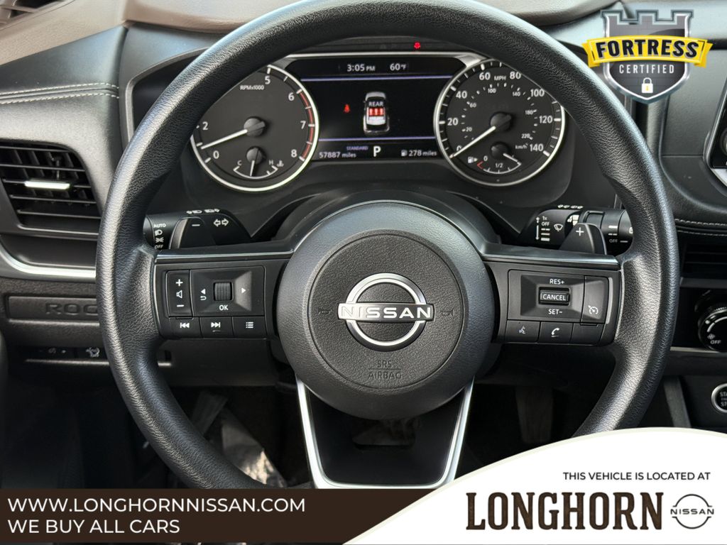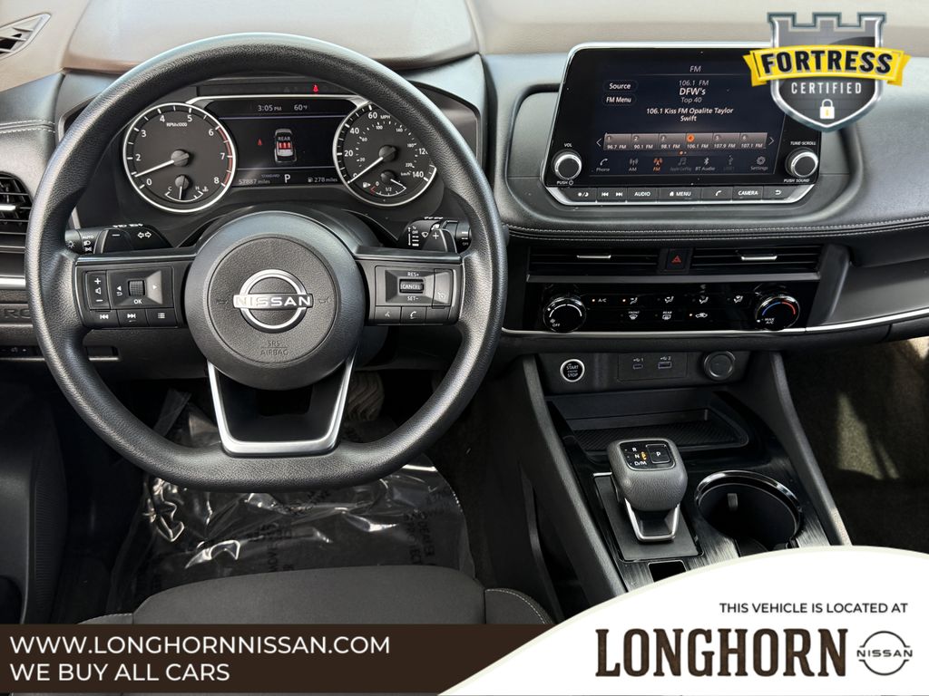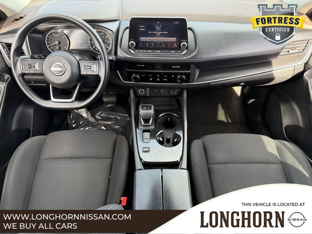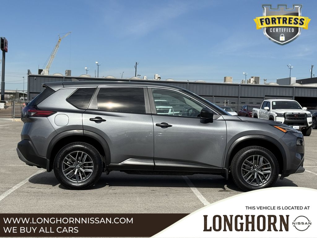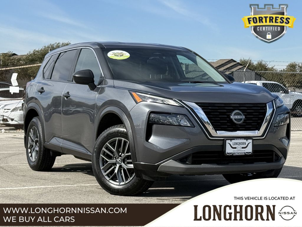 Rogue S, 4D Sport Utility, 1.5L I3 Turbocharged DOHC 12V LEV3-ULEV50 201hp, CVT with Xtronic, FWD, Gun Metallic, Charcoal Cloth.Gun Metallic 2023 Nissan Rogue S 4D Sport Utility FWD CVT with Xtronic 1.5L I3 Turbocharged DOHC 12V LEV3-ULEV50 201hpCARFAX One-Owner. Clean CARFAX.Longhorn Nissan is proud to present you with this 2023 Nissan Rogue S that is loaded with the following Factory Options:Rogue S, 4D Sport Utility, 1.5L I3 Turbocharged DOHC 12V LEV3-ULEV50 201hp, CVT with Xtronic, FWD, Gun Metallic, Charcoal Cloth, 17 Aluminum Alloy Wheels, 4 Speakers, 4-Wheel Disc Brakes, 5.604 Axle Ratio, ABS brakes, Air Conditioning, Alloy wheels, AM/FM Radio, AM/FM radio: SiriusXM, Auto High-beam Headlights, Black Splash Guards (Set of 4), Blind Spot Warning, Brake assist, Bumpers: body-color, Cloth Seat Trim, Delay-off headlights, Driver door bin, Driver vanity mirror, Dual front impact airbags, Dual front side impact airbags, Electronic Stability Control, First Aid Kit, Floor Mats w/1-Piece Cargo Area Protector, Four wheel independent suspension, Front anti-roll bar, Front Bucket Seats, Front Center Armrest, Front reading lights, Fully automatic headlights, Illuminated entry, Knee airbag, Low tire pressure warning, NissanConnect featuring Apple CarPlay and Android Auto, Occupant sensing airbag, Outside temperature display, Overhead airbag, Overhead console, Panic alarm, Passenger door bin, Passenger vanity mirror, Power door mirrors, Power steering, Power windows, Radio data system, Rear anti-roll bar, Rear Parking Sensors, Rear seat center armrest, Rear side impact airbag, Rear window defroster, Rear window wiper, Remote keyless entry, Speed control, Speed-Sensitive Wipers, Split folding rear seat, Spoiler, Steering wheel mounted audio controls, Tachometer, Telescoping steering wheel, Tilt steering wheel, Traction control, Trip computer, and Variably intermittent wipers.30/37 City/Highway MPGLongHorn Nissan is a Dallas Fort Worth Used Car Superstore located in the Mid-Cities region of North Texas.Luxury Vehicles, 4WD / 4X4 Jeeps & SUVs, Sports Cars, Certified Vehicles, & NEW Nissans.If you do not see what you are looking for. Please contact our acquisition specialist and we will find the ride of your dreams..