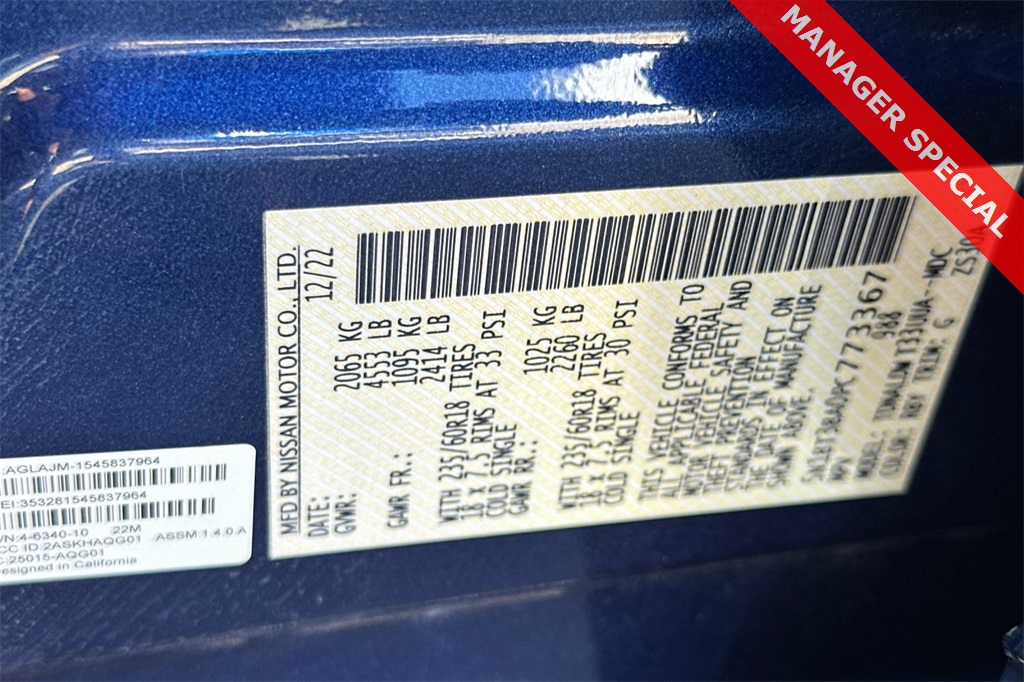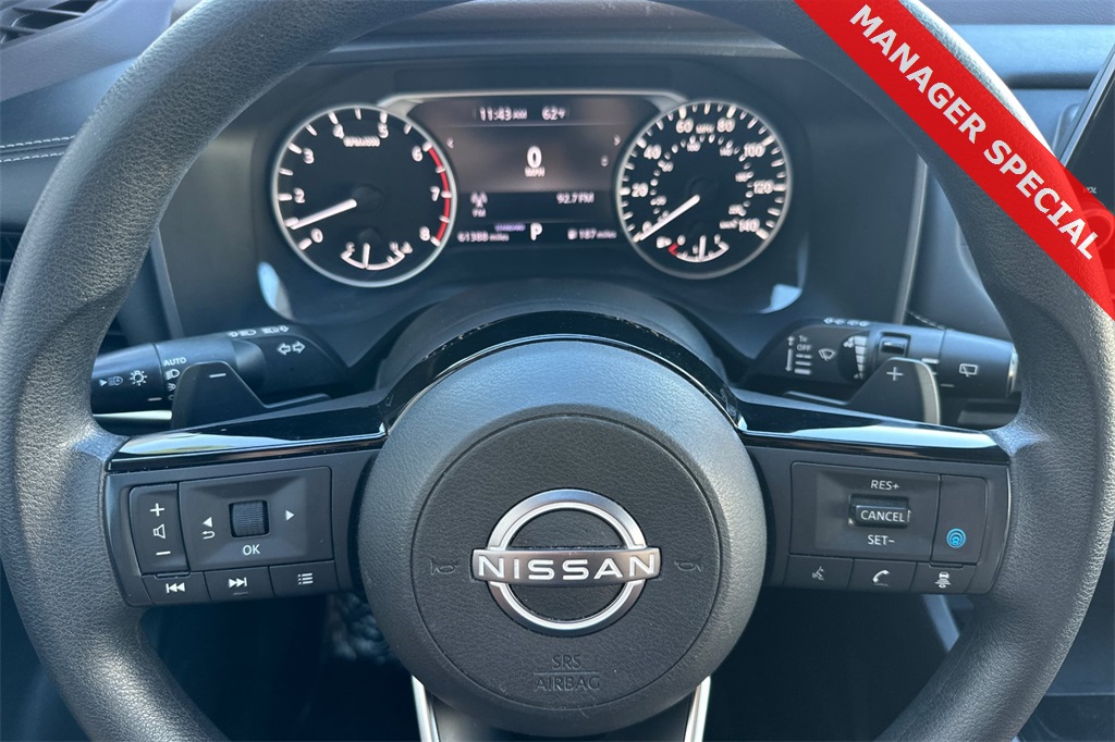 18 Aluminum Alloy Wheels, 4-Wheel Disc Brakes, 5.604 Axle Ratio, 6 Speakers, ABS brakes, Air Conditioning, Alloy wheels, AM/FM Radio, AM/FM radio: SiriusXM, Auto High-beam Headlights, Automatic temperature control, Black Splash Guards (Set of 4), Brake assist, Bumpers: body-color, Chrome Rear Bumper Protector, Cloth Seat Trim, Delay-off headlights, Driver door bin, Driver vanity mirror, Dual front impact airbags, Dual front side impact airbags, Electronic Stability Control, Emergency communication system: NissanConnect Services, Floor Mats w/1-Piece Cargo Area Protector, Four wheel independent suspension, Front anti-roll bar, Front Bucket Seats, Front Center Armrest, Front dual zone A/C, Front reading lights, Fully automatic headlights, Heated door mirrors, Illuminated entry, Knee airbag, Low tire pressure warning, NissanConnect featuring Apple CarPlay and Android Auto, Occupant sensing airbag, Outside temperature display, Overhead airbag, Overhead console, Panic alarm, Passenger door bin, Passenger vanity mirror, Power door mirrors, Power driver seat, Power steering, Power windows, Radio data system, Rear anti-roll bar, Rear Parking Sensors, Rear seat center armrest, Rear side impact airbag, Rear window defroster, Rear window wiper, Remote keyless entry, Speed control, Speed-Sensitive Wipers, Split folding rear seat, Spoiler, Steering wheel mounted audio controls, Tachometer, Telescoping steering wheel, Tilt steering wheel, Traction control, Trip computer, and Variably intermittent wipers.CARFAX One-Owner.30/37 City/Highway MPG