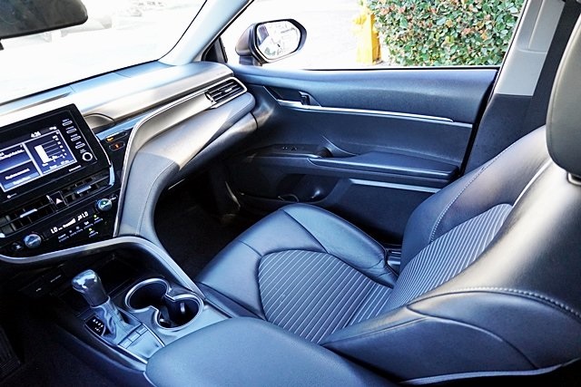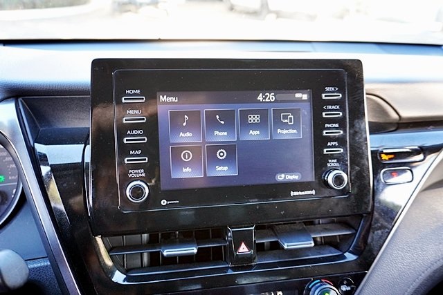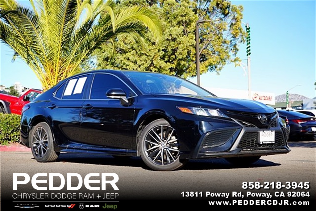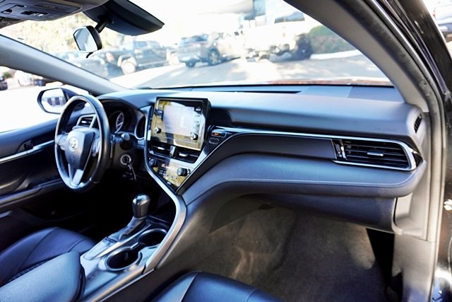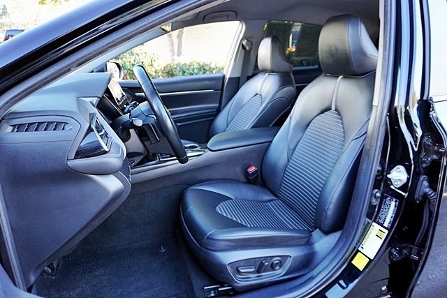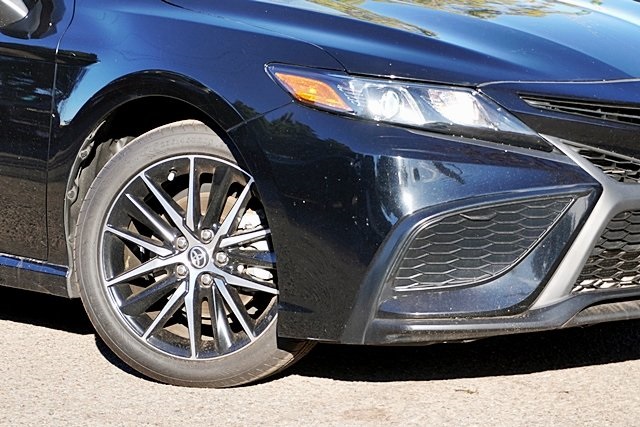 This 2023 Midnight Black Metallic Toyota Camry SE FWD is well equipped and includes these features and benefits: Black Artificial Leather, 4-Wheel Disc Brakes, 6 Speakers, 8.0J x 18 Alloy Wheels, ABS brakes, Air Conditioning, Alloy wheels, AM/FM radio: SiriusXM, Apple CarPlay/Android Auto, Auto High-beam Headlights, Automatic temperature control, Brake assist, Bumpers: body-color, Delay-off headlights, Driver door bin, Driver vanity mirror, Dual front impact airbags, Dual front side impact airbags, Electronic Stability Control, Emergency communication system: Safety Connect (1-year trial), Exterior Parking Camera Rear, Four wheel independent suspension, Front anti-roll bar, Front Bucket Seats, Front Center Armrest, Front dual zone A/C, Front reading lights, Fully automatic headlights, Heated door mirrors, Illuminated entry, Knee airbag, Leather steering wheel, Low tire pressure warning, Occupant sensing airbag, Outside temperature display, Overhead airbag, Overhead console, Panic alarm, Passenger door bin, Passenger vanity mirror, Power door mirrors, Power driver seat, Power steering, Power windows, Radio data system, Radio: Audio, Rear anti-roll bar, Rear seat center armrest, Rear side impact airbag, Rear window defroster, Remote keyless entry, Security system, Speed control, Speed-sensing steering, Split folding rear seat, Spoiler, Sport SofTex Seat Trim w/Fabric Inserts, Steering wheel mounted audio controls, Tachometer, Telescoping steering wheel, Tilt steering wheel, Traction control, Trip computer, Turn signal indicator mirrors, and Variably intermittent wipers Prices shown are manufacturer suggested retail price only and do not include taxes, license, documentation fee, smog fee, dealer installed options and other applicable charges. Vehicles are subject to prior sale. Vehicle information is based on standard equipment and may vary from vehicle to vehicle. Not responsible for typographical errors. Priced below KBB Fair Purchase Price!28/39 City/Highway MPG