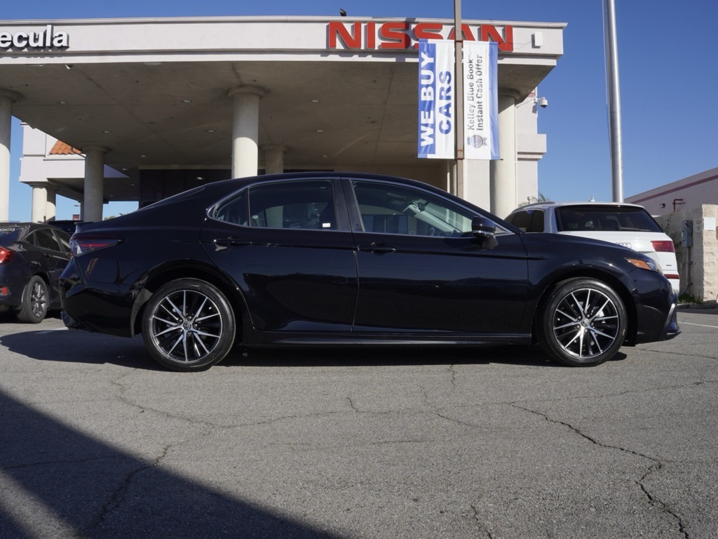 CARFAX One-Owner.Certified. 2023 Midnight Black Metallic Clean CARFAX. Toyota Camry 4D Sedan SE Global Positioning Tracking System (S.W.A.T.) Guaranteed Protection & Recovery Program, Finishing Touch Complete (Synthetic Paint Sealant Application & Protection Program), NitroFill Advantage (Nitrogen Filled Tires & Protection Program), Genuine Nissan Wheel Locks (Anti-Theft Vehicle Wheel Protection), ParkView / Park Assist Rear BackUp Camera, BlindSpot and CrossPath Detection, Bluetooth Car Audio Receiver, SiriusXM Satelite Radio, Apple Car Play/Android Auto, Automatic Climate Control, Backup Camera, 18Inch Aluminum Painted/Polished Wheels, Camry SE Sedan 4D, 4D Sedan, 2.5L I4 DOHC 16V, 8-Speed Automatic, FWD, Midnight Black Metallic, Black w/Sport SofTex Seat Trim w/Fabric Inserts, 4-Wheel Disc Brakes, 6 Speakers, 8.0J x 18 Alloy Wheels, ABS brakes, Accessory Appearance Package (TMS), Air Conditioning, Alloy wheels, AM/FM radio: SiriusXM, Apple CarPlay/Android Auto, Auto High-beam Headlights, Automatic temperature control, Brake assist, Bumpers: body-color, Delay-off headlights, Driver door bin, Driver vanity mirror, Dual front impact airbags, Dual front side impact airbags, Electronic Stability Control, Emergency communication system: Safety Connect (1-year trial), Exterior Parking Camera Rear, Four wheel independent suspension, Front anti-roll bar, Front Bucket Seats, Front Center Armrest, Front dual zone A/C, Front reading lights, Fully automatic headlights, Heated door mirrors, Illuminated entry, Knee airbag, Leather steering wheel, Low tire pressure warning, Occupant sensing airbag, Outside temperature display, Overhead airbag, Overhead console, Panic alarm, Passenger door bin, Passenger vanity mirror, Power door mirrors, Power driver seat, Power steering, Power windows, Preferred Accessory Package (TMS), Preferred Accessory Package w/All Weather Liners (TMS), Protection Package (Q1) (TMS), Protection Package (Q2) (TMS), Radio data system, Radio: Audio, Rear anti-roll bar, Rear seat center armrest, Rear side impact airbag, Rear window defroster, Remote keyless entry, Security system, Speed control, Speed-sensing steering, Split folding rear seat, Spoiler, Sport SofTex Seat Trim w/Fabric Inserts, Steering wheel mounted audio controls, Tachometer, Telescoping steering wheel, Tilt steering wheel, Traction control, Trip computer, Turn signal indicator mirrors, Variably intermittent wipers.Certification Program Details: 3 Month/3,000 Mile Powertrain Limited Warranty (whichever comes first) Covers repair or replacement of most major powertrain components, including transmission, engine and driveline. Multi-Point Vehicle Inspection. CarFax Vehicle History Report. A deductible applies per covered repair visit.Searching for an affordable, dependable car for your family? Temecula Nissan has you covered with the lowest prices in California and the biggest selectionover 300 used, certified pre-owned, nearly new, and low-mileage vehicles ready for you! Our no-haggle, limited-time sale prices make it easy to save big, but hurryour inventory is flying off the lot, and when a car is gone, so is the deal. Dont let credit worries hold you back; we approve everyone, whether you have bad credit, bankruptcy, or are a first-time buyer. We believe everyone deserves a quality car! Hablamos Espanol y negociamos en su idiomaserving all families in our community. Imagine driving home today with zero to little money down and payments as low as $199 a month on an extensive selection of vehicles. Your dream car fits your budget and exceeds your expectations. Dont miss this chanceschedule your test drive now and take advantage of these exclusive savings before they disappear! Call us at (951) 972-8441 or start online at TemeculaNissan.Com. All prices plus government fees and taxes, any finance charges, $85 documentary fee, $33 electronic vehicle registration fee, emission testing charges, and