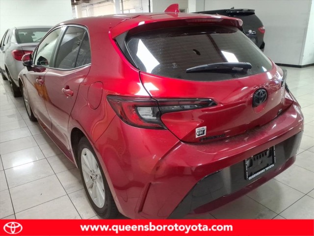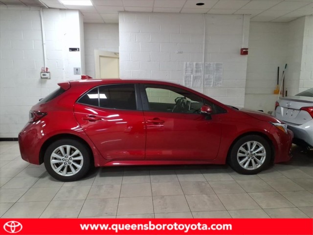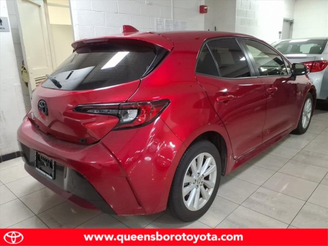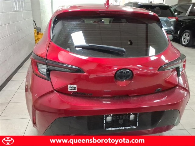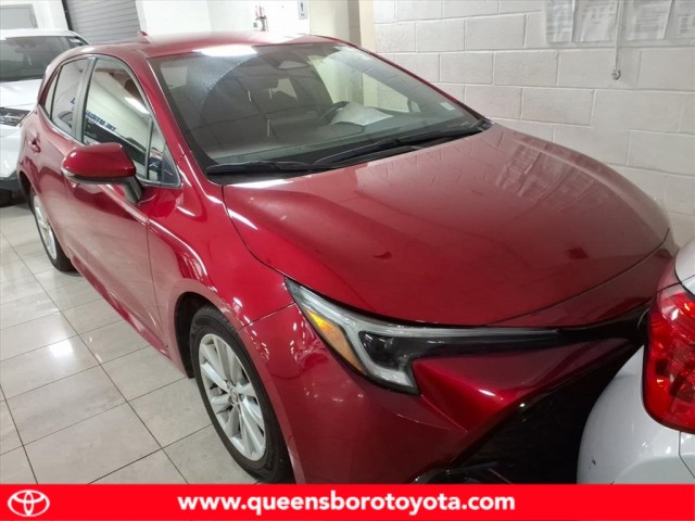 This vehicle is a 2023 Toyota Corolla Hatchback SE, with a 2.0 liter 4 cylinder engine and fuel injection. It has driven 43,208 miles and has a crash test rating of 5 out of 5 stars. It is equipped with features such as hill start assist, making it an ideal choice for those looking for a reliable and safe motorcar. The car's exterior is a vibrant red, while its interior is finished in black leather. This car is sure to turn heads wherever it goes! Contact Details: Queensboro Toyota, 62-10 Northern Blvd, Woodside, NY, 11377, jlichtman@queensborotoyota.com, 7183358600.