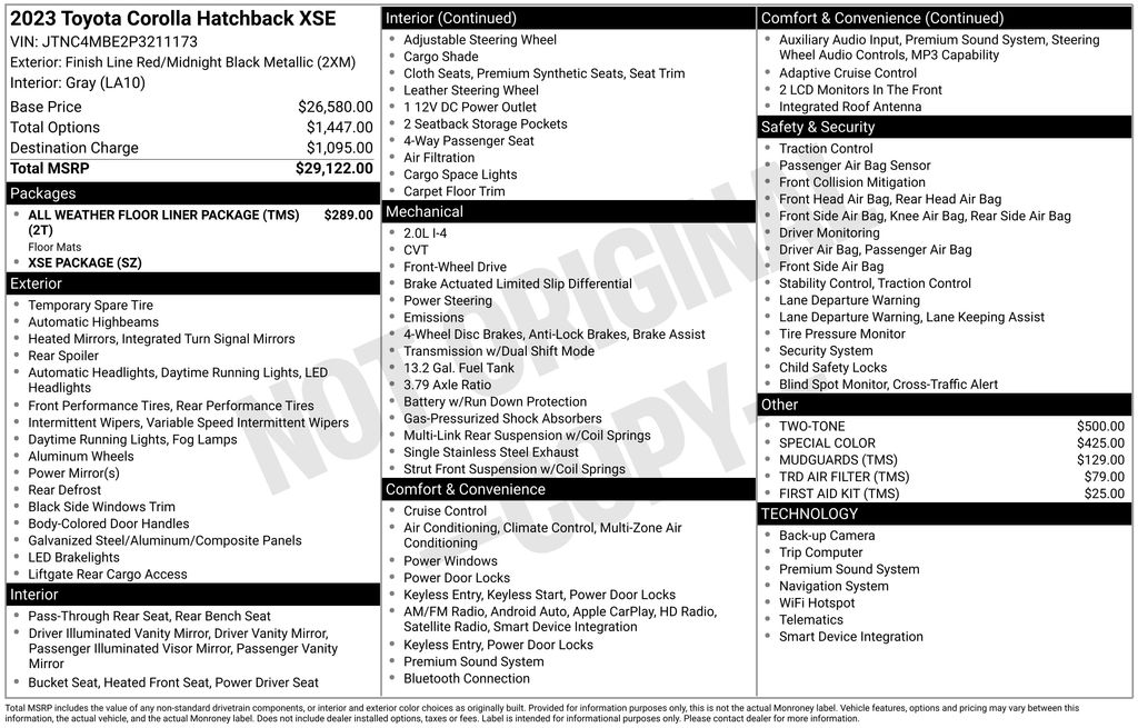 2023 Toyota Corolla Hatchback XSE Red FWD CVT Black Out Package, Black Roof, All Weather Floor Liner Package (TMS), Automatic temperature control, Blind Spot Monitor (BSM) w/Rr Cross-Traffic Alert, Brake assist, Dual Mode Air Conditioner, Exterior Parking Camera Rear, Fabric/SofTex Seat Trim, Front fog lights, Heated Sport Front Seats, Htd Power Outside Mirrors w/Turn Signal Indicators, LED Daytime Running Lights w/Integrated LED Fog Lts, Low tire pressure warning, Mudguards (TMS), Power driver seat, Rear window defroster, Rear window wiper, Remote keyless entry, Speed control, Split folding rear seat, Traction control, TRD Air Filter (TMS), Wheels: 18 Gloss Graphite Aluminum, XSE Package.Clean CARFAX. 30/38 City/Highway MPGEasterns Automotive Group has 11 locations that has sold thousands of used cars in the Maryland, DC, and Virginia communities for over the past 35 years. Every Easterns vehicle has passed a rigorous Multi-Point Quality Certification, so you can buy with confidence. Start your purchase online to save time by visiting Easterns.com... Any Car, Any Way, For Everyone.